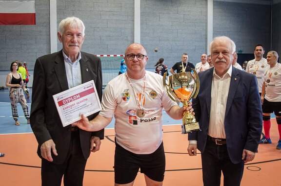 "Wracamy z podniesionymi głowami". Oldboje po mistrzostwach Łukasz Darowski, jeden z oldbojów piłkarzy ręcznych Chrobrego Głogów, relacjonuje Wam udział teamu w mistrzostwach Polski w Bartoszycach. Zachęcamy do tej lektury. 12-06-2023 10:48 autor: ŁJ W dniach 10-11.06.2023 w Bartoszycach odbyły się kolejne Mistrzostwa Polski Masters w piłce ręcznej kobiet i mężczyzn. Oldboje Chrobrego Głogów wystawili do rywalizacji dwie męskie ekipy: w kategorii + 35 i +45. Na daleką północ jechaliśmy bojowo nastawieni z wielkimi nadziejami na dwa medale. Wprawdzie wiekowo większość z nas jest już w górnych limitach danej kategorii, jednak liczyliśmy na swoje doświadczenie i szeroki skład. Trzeba przyznać, że nasza grupa jest liczna, co nas niezwykle cieszy. To również zasługa naszych przyjaciół z Nowej Soli, Poznania, Wągrowca, Lubina i Gorzowa (dzięki chłopaki). Rozgrywki grupowe były bardzo zacięte i emocjonujące. W wielu spotkaniach losy pojedynku ważyły się do ostatnich sekund. Ostatecznie obie nasze ekipy wyszły z grupy i zameldowały się w półfinałach zawodów. Niestety „młodzież” musiała uznać wyższość zespołu z Ostrowa Wielkopolskiego (ubiegłoroczny mistrz Polski). Z kolei „panowie w sile wieku +45” przegrali bój o awans do finału z Pabianicami (mistrz świata i Polski Masters). W sobotnie popołudnie rehabilitacja, odnowa biologiczna, Polaków rozmowy o wszystkim i taktyka przed kolejnym dniem. W niedziele mecze o 3 miejsce. Pierwsza zaczęła grupa młodsza. Stoczyliśmy heroiczny bój z Pogonią Zabrze. Kości trzeszczały (śląskie chłopaki to twarde pierony). Daliśmy z siebie naprawdę wszystko, jednak to nasi koledzy z Zabrza triumfowali dwiema bramkami. Czwarte, najgorsze dla sportowca miejsce, ale jak powiedział do nas wszystkich po meczu Grzesiek Piotrowski: nie mamy sobie nic do zarzucenia. Cały pot z naszych organizmów zostawiliśmy na parkiecie. Chwilę po tym spotkaniu przyszła kolej na team +45. I tutaj panowie dali pokaz fenomenalnego handballa. Od początku zdominowali zespół z Opola. Przemek Pitoń jak wino, im starszy tym lepszy. Niemiłosiernie „leczył” przeciwnika. Koledzy z parkietu nie pozostawali dłużni i raz za razem dziurawili siatkę przeciwnika. Skończyło się wysokim zwycięstwem. Na szyjach zagościły piękne medale z brązu, a w górę powędrował okazały puchar. To już kolejny sukces tej EKIPY. BRAWO PANOWIE. Wracamy do Głogowa z podniesionymi głowami. Przede wszystkim cieszy nas fakt, że udaje się zorganizować wyjazd tak licznej grupy z prawdziwymi legendami Chrobrego. Piękne czasy gry w hali wojskowej pamiętają przecież nasi trenerzy: Marek Wojciechowski i Józef Kaminiarz. Z Niemiec przyjechał do nas Mariusz Bartoszewicz i mógł po raz kolejny zagrać z Krzysiem Przybyszem, Marcinem Gośko, Andrzejem Sową, Mariuszem Kwiatkowskim, Piotrkiem Kaczmarkiem. Wielkie brawa należą się również naszym sponsorom. Bez nich taki wyjazd nie byłby możliwy. Chrobry Głogów S.A (szczególne podziękowania dla pana Adama, który bezpiecznie przemierzył z nami ponad 1200 km. Czapki z głów Panie Adamie – za styl jazdy, poczucie humoru i szerokie muzyczne horyzonty) Budrem Passa Okna Top-Poligrafia Fundacja KGHM Kończymy sezon i myślimy już o kolejnym. Przed nami wielkie wyzwanie. Organizacja turnieju kobiet i mężczyzn w Głogowie. Styczniowy termin zbliża się wielkimi krokami. Po cichu liczymy również na wyjazd na przyszłoroczne mistrzostwa Świata w Chorwacji. Trzymajcie z nas kciuki. Drużyna w składzie: Marcin Krotla, Sebastian Szymański, Przemek Pitoń, Mariusz Kwiatkowki, Daniel Szudzichowski, Krzysztof Przybysz, Piotr Kaczmarek, Piotr Szabelski, Rafał Walczak, Mariusz Terlikowski, Andrzej Sowa, Marcin Gośko, Sławomir Faustman, Krzysztof Sobkowski, Michał Liske, Mariusz Bartoszewicz, Łukasz Nowak, Marcin Okrasiński, Michał Wolny, Mariusz Witczak, Marcin Burda (3 bramki), Bartłomiej Holubek, Tomasz Chmiel, Paweł Kalinowski, Tomasz Kalinowski, Dominik Jastrzębski, Grzegorz Piotrowski, Przemysław Darowski, Łukasz Darowski, Tomasz Rzewiński. Trenerzy: Marek Wojciechowski, Józef Kaminiarz. Sponsorem wyjazdu