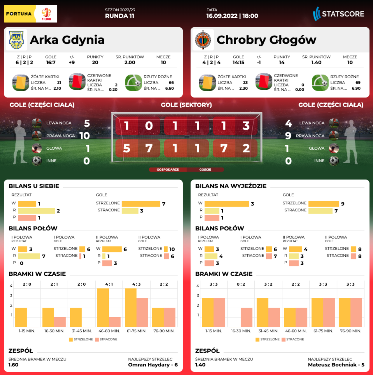 PT. 18.00: Arka Gdynia - Chrobry Głogów O godz. 18.00 w Gdyni początek meczu 11 kolejki Fortuna 1 Ligi z Arką. 16-09-2022 07:13 autor: ŁJ Chrobry jest niepokonany w lidze od czterech kolejek, Arka od trzech. Ciekawym tłem są trzy emocjonujące mecze ubiegłego sezonu, zwłaszcza baraże, i Marcel Ziemann oraz Przemysław Stolc po stronie Arki, którzy jeszcze niedawno reprezentowali pomarańczowo-czarne barwy. Zanosi się na interesujący pojedynek. Dla Chrobrego to już kolejny mecz z zespołem utrzymującym się w ścisłej czołówce. Za głogowianami spotkania z Ruchem Chorzów (1), ŁKS-em Łódź (4), Stalą Rzeszów (5) czy Bruk-Betem Termaliką Nieciecza. Trzy pojedynki zakończyły się porażką, a jeden remisem, więc Chrobremu nie jest łatwo rywalizować z drużynami mierzącymi wysoko, a trzeba teraz przeciwstawić się wiceliderowi. Arka będzie faworytem meczu ze względu na wysokie miejsce, ale też aktualną dyspozycję. Za gdynianami trzy ligowe zwycięstwa z rzędu. Przed tygodniem zespół prowadzony przez trenera Ryszarda Tarasiewicza pokonał Skrę Częstochowa 2:1. Robotę w Gdyni robi Omran Haydary, który strzelał w każdej ze wspomnianych trzech ostatnich, zwycięskich kolejek. W tym okresie zdobył cztery bramki, wcześniej dwie i z sześcioma jest najlepszym strzelcem ligi. 15-09-2022 Oni 7, my 7. Równy bilans meczów z Arką Trzema zwycięstwami w ubiegłym sezonie Chrobry wyrównał bilans starć z Arką Gdynia. Przed 20. pojedynkiem przyglądamy się piątkowemu rywalowi Pod względem strzeleckim Chrobry jednak nie odstaje, bo przy 16 golach Arki ma ich 14. A w klasyfikacji strzelców tuż za Haydarym jest Mateusz Bochnak z pięcioma trafieniami. M.in. po jego bramce Pomarańczowo-Czarni pokonali gdynian na ich stadionie 2:0 w rundzie jesiennej ubiegłego sezonu. Wygrali też w rewanżu w Głogowie i następnie półfinał barażów. Choć to tylko statystyki z przeszłości, mogą pozwolić poczuć się pewniej, zwłaszcza tym piłkarzom, którzy w tych pojedynkach uczestniczyli. W Chrobrym zabraknie kontuzjowanych Michała Ilkowa-Gołąba i Pawła Tupaja. Reszta zawodników w czwartek rano wyruszyła w trasę, by odpowiednio dobrze przygotować się do meczu i powalczyć o kontynuowanie serii bez porażek. Transmisja z meczu w Polsat Box Go. Możesz też aktywować jednorazowy dostęp do meczu - PRZEJDŹ DO STRONY TRANSMISJI O KLUBIE Pełna nazwa: Arka Gdynia Sportowa Spółka Akcyjna (Morski Związkowy Klub Sportowy Arka Gdynia) Rok powstania: 1929 Adres: Olimpijska 5, 81-538 Gdynia Internet: www.arka.gdynia.pl (oficj.) Barwy: żółto-niebieskie Sukcesy: - 7. miejsce w I lidze - 1977/78 - Puchar Polski - (2x) - 1978/79, 2016/17 - 1/2 finału Pucharu Ekstraklasy - 2008/09 - Superpuchar - (2x) - 2017, 2018 Stadion: - nazwa - Stadion Miejski - pojemność - 15 139 miejsc - oświetlenie - 2000lx - boisko - 110x70m Bramkarze: Daniel Kajzer (92), Kacper Krzepisz (99), Michał Molenda (01). Obrońcy: Martin Dobrotka (85), Michał Marcjanik (94), Haris Memic (95), Mateusz Mikulski (04), Bartosz Rymaniak (89), Przemysław Stolc (94), Jerzy Tomal (03), Marcel Ziemann (95). Pomocnicy: Hubert Adamczyk (98), Christian Aleman (96), Michał Bednarski (00), Janusz Gol (85), Marcus Vinicius (84), Sebastian Milewski (98), Marcel Predenkiewicz (04), Kornel Przyborowski (02), Adrian Purzycki (97), Jakub Staniszewski (05), Mateusz Stępień (02). Napastnicy: Karol Czubak (00), Omran Haydary (98), Mateusz Kuzimski (91), Kacper Skóra (03), Mateusz Żebrowski (95). Trener: Ryszard Tarasiewicz.