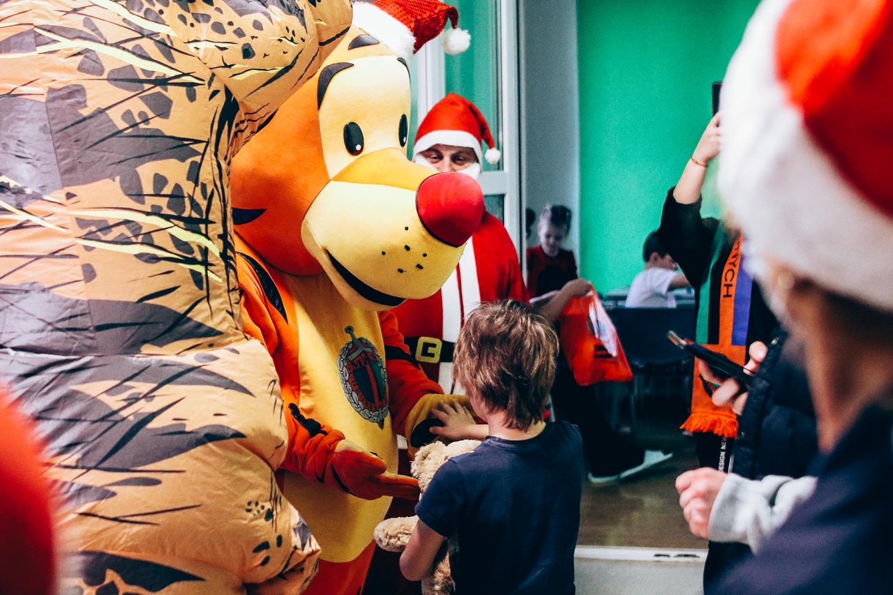 Świąteczny prezent od kibiców z KKN Chrobrego To, co tygryski lubią najbardziej. Skoro 6 grudnia, to dzieciaki i paczki. Razem z Klubem Kibiców Niepełnosprawnych byliśmy w głogowskim szpitalu. 06-12-2022 06:07 autor: ŁJ Klub Kibiców Niepełnosprawnych Chrobrego Głogów w przyszłym roku obchodzi dziesięciolecie istnienia. Z tej okazji ma dużo planów, ale nawet w kończącym się roku nie przestaje realizować innych. We wtorek z okazji 6 grudnia mieliśmy przyjemność wraz z członkami KKN udać się do głogowskiego szpitala. Przebywające w nim dzieci otrzymały od naszych fanów mikołajkowe paczki. Kibice Chrobrego z KKN nie po raz pierwszy udowadniają, że choć niektórzy z nich sami zmagają się z ograniczeniami, jeśli chodzi o dobroć dla innych – nie ma żadnych ograniczeń. Sami zebrali środki finansowe, za które przygotowali kilkadziesiąt paczek. Wcześniej jednak robili niezbędne zakupy i pakowali prezenty. A na finał akcji udali się do szpitala. Rok temu w identycznej akcji obdarowali potrzebujące rodziny, tym razem postanowili umilić czas spędzany w szpitalu przez dzieci. W taki dzień i przy okazji takiej akcji nie mogło zabraknąć czerwono-białych elementów, ale skoro to Chrobry i jego kibice – także pomarańczowych. Stąd obecność klubowej maskotki, która jak zawsze wywołuje uśmiech na twarzach najmłodszych.