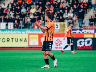 ChG II: Pomarańczowo-Czarni z golem w doliczonym czasie i remisem Bramka Kamila Grzelaka w doliczonym czasie gry daje Chrobremu II punkt w meczu z Piastem Nowa Ruda w Koleje Dolnośląskie 4 Lidze. 06-04-2024 04:15 autor: ŁJ W Nowej Rudzie bardzo długo utrzymywał się bezbramkowy remis, a brak goli wynagrodziła końcówka. W 87 minucie gospodarze wyszli na prowadzenie, a Marcela Gawłowskiego pokonał Dominik Krukowski. Chrobry jednak powalczył do samego końca i w trzeciej minucie doliczonego czasu zdołał wyrównać. Na listę strzelców w tak trudnych okolicznościach wpisał się Olaf Zygmunt, który na boisku pojawił się w drugiej połowie. W następnej kolejce Chrobrego II czeka domowy mecz z Łużycami Lubań. Spotkanie odbędzie się w niedzielę 14 kwietnia o godz. 10.00. PIAST NOWA RUDA - CHROBRY II GŁOGÓW 1:1 (0:0) 1:0 Krukowski 87 1:1 Zygmunt 90 CHROBRY II: Gawłowski - Biliński (76 Maćkowiak), Jandziak, Pieczarka (82 Antosik), Antkowiak (66 Witczak), Paz, Wojciechowski (59 Zygmunt), Grzelak, Krawiec (76 Bartecki), Janiszewski, Taira (72 Starostenko). ŻÓŁTE KARTKI (CHROBRY II): Biliński, Paz, Jandziak, Krawiec.