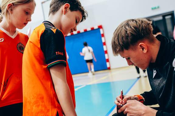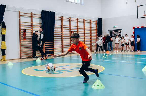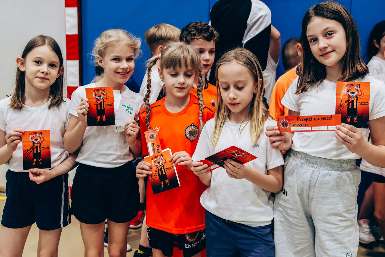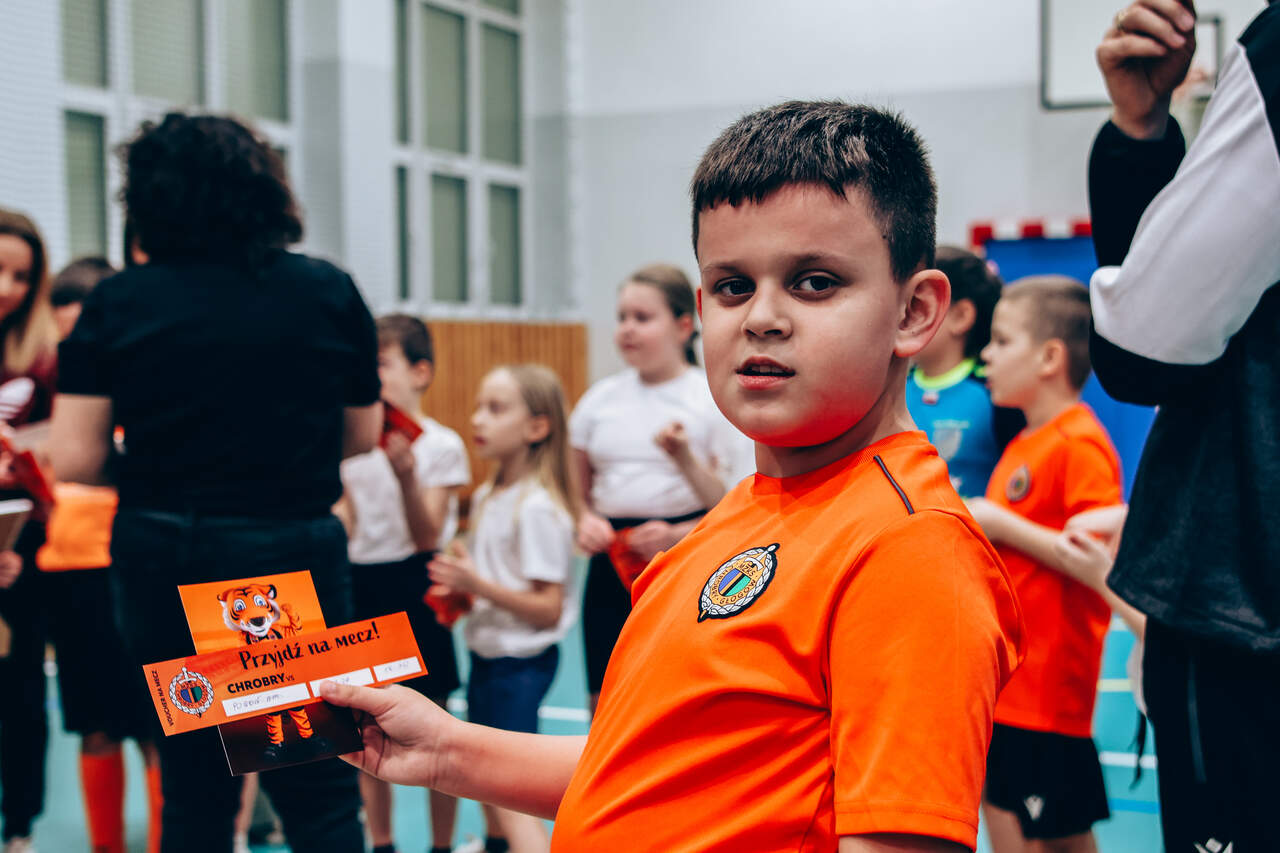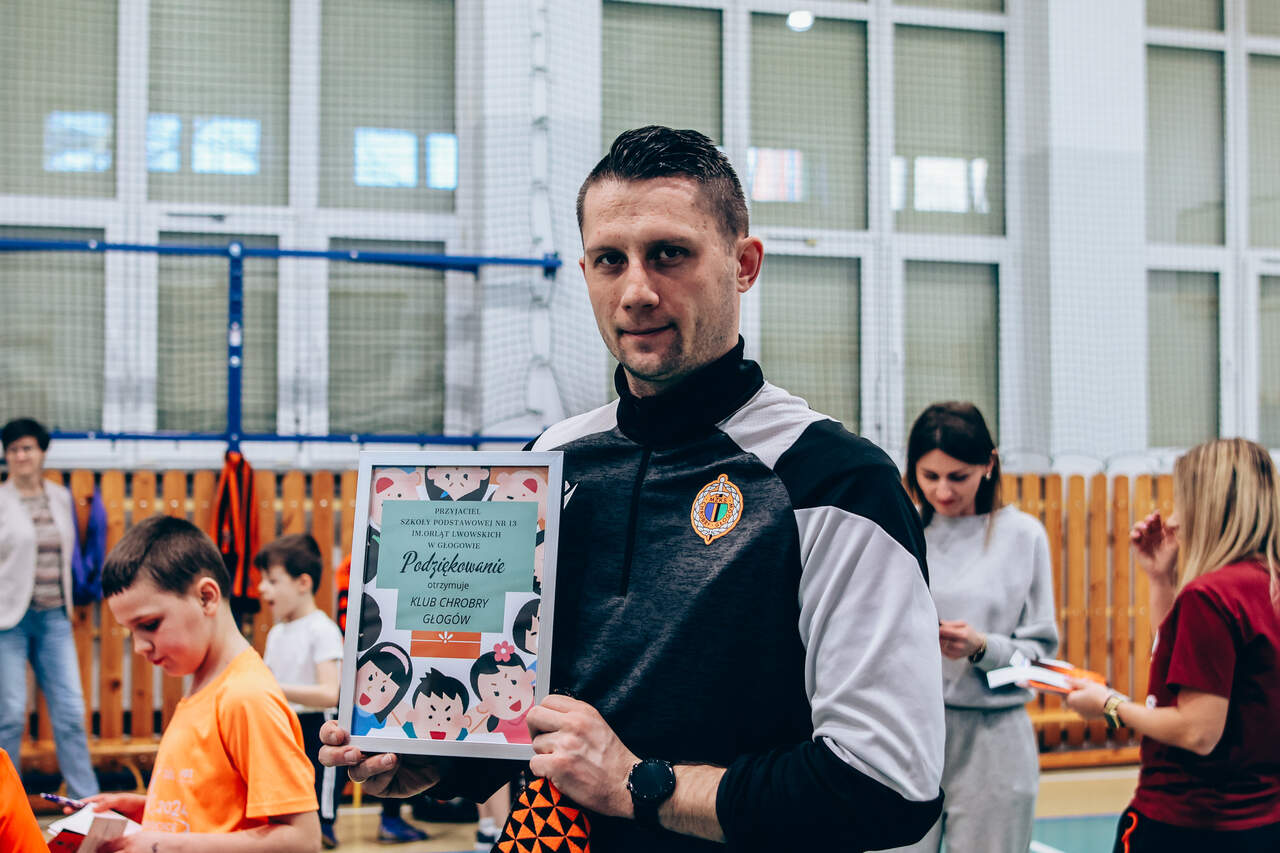 Pierwszy przystanek - "trzynastka" Chrobry Głogów rozpoczął wiosenną część wizyt w szkołach. Pierwszy przystanek – szkoła podstawowa nr 13 w Głogowie. 04-03-2026 12:24 autor: ŁJ Dziś odwiedziliśmy szkołę podstawową nr 13, inaugurując wiosenną część naszej akcji wizyt w szkołach, przedszkolach oraz organizacji zajęć dla najmłodszych na naszych obiektach. Na spotkanie z uczniami udali się zawodnicy szerokiej kadry pierwszej drużyny – Szymon Manijak oraz Wiktor Łaszyński – a także trener Akademii Piłki Nożnej Paweł Marszałek. Podczas wizyty dzieci mogły poznać młodych zawodników rozwijających swoje kariery piłkarskie, zdobyć pamiątkowe autografy, a także wziąć udział w treningu prowadzonym przez trenera Pawła Marszałka. Dzięki temu uczniowie mogli spróbować swoich sił w formie zajęć, jakie prowadzone są w Akademii dla najmłodszych roczników. Być może dla niektórych z nich będzie to pierwszy krok do rozpoczęcia piłkarskiej przygody. Zapraszamy do kolejnych zgłoszeń oraz rezerwacji terminów na najbliższe tygodnie i miesiące. Celem inicjatywy jest promowanie aktywności fizycznej wśród dzieci oraz pokazanie sportu od strony profesjonalnego środowiska piłkarskiego w przyjaznej atmosferze – przy udziale trenerów Akademii Piłki Nożnej, zawodników pierwszej drużyny oraz klubowej maskotki Tygryska. Placówki zainteresowane organizacją spotkania prosimy o kontakt mailowy lub telefoniczny w celu ustalenia dogodnego terminu oraz dopasowania programu wizyty do wieku i liczebności grupy. ZGŁOSZENIA: Barbara Krawczyk - specjalista ds. marketingu tel. służbowy 504 591 769 barbara.krawczyk@chrobry-glogow.pl TAK BYŁO W SP 13: