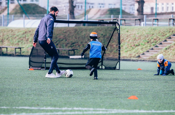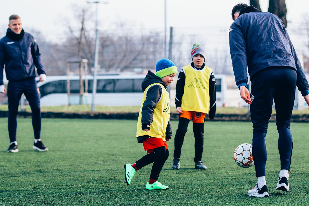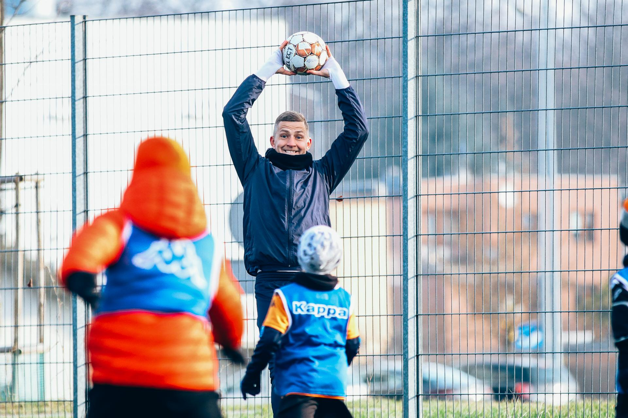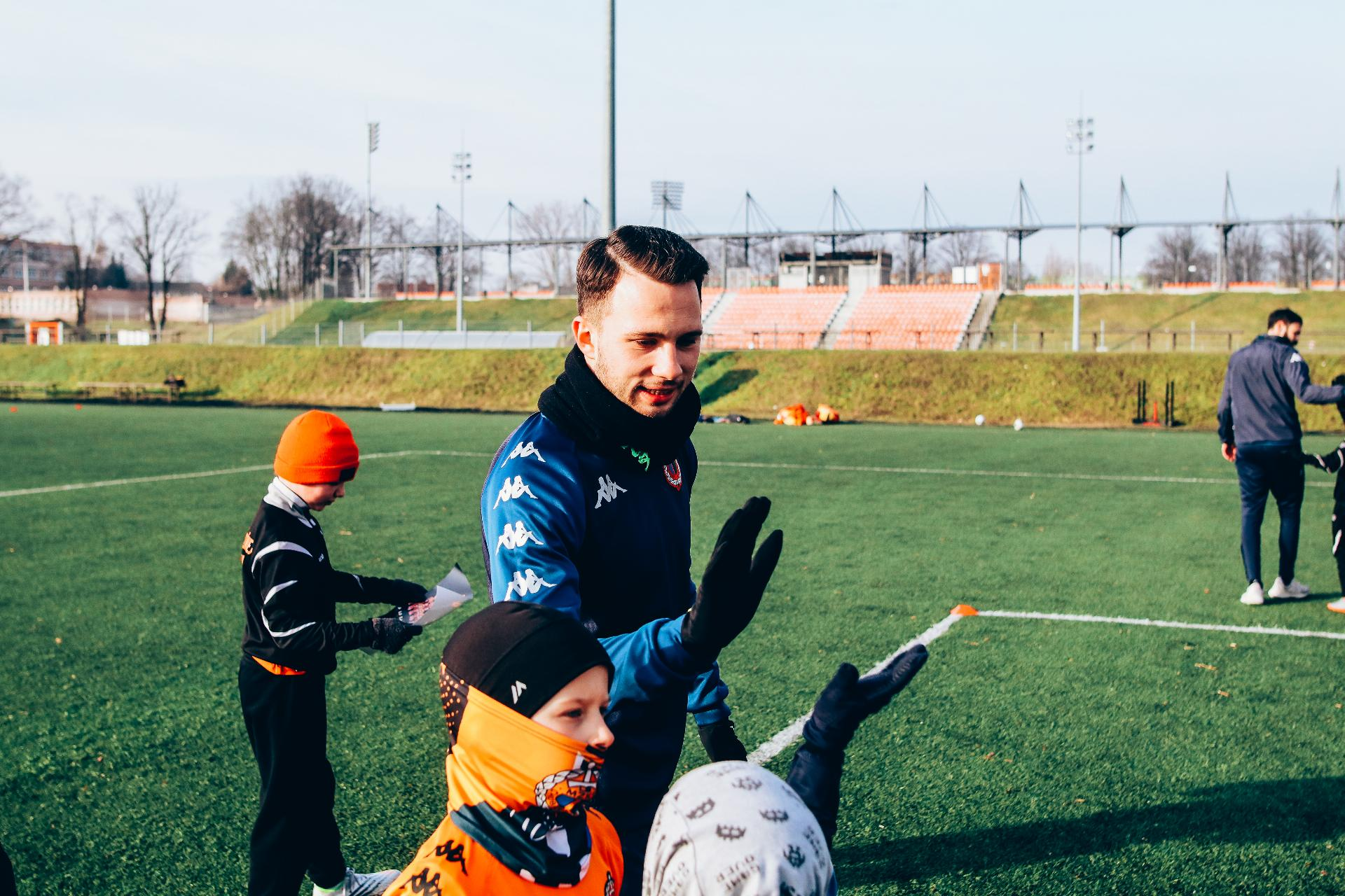 Pierwszoligowcy zagrali z dziećmi 8 rano i meldunek na boisku. Piłkarze pierwszej drużyny trenowali z uczestnikami Piłkarskich Ferii Zimowych Akademii Piłki Nożnej Chrobrego. 23-02-2023 09:55 autor: ŁJ W tym tygodniu – drugim podczas ferii zimowych – trwają Piłkarskie Ferie Zimowe organizowane przez klubową Akademię Piłki Nożnej. Opiekunem grupy jest trener Paweł Kliszka. Codziennie spędza ona czas na obiektach Chrobrego, trenując na boiskach, w hali czy pływalni, ale też poza, bo na przykład w środę wszyscy bawili się w Jump Planet, a dzień wcześniej oglądali piłkarski film podczas seansu w Teatrze im. Andreasa Gryphiusa. Najwięcej jest jednak piłkarskiej aktywności na boisku, która w czwartek z samego rana została urozmaicona odwiedzinami pierwszoligowców Chrobrego. Z dziećmi spotkali się Patryk Mucha, Karol Dybowski, Mavroudis Bougaidis, Sebastian Górski oraz Rafał Wolsztyński.