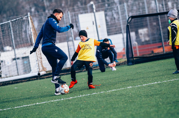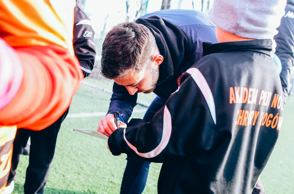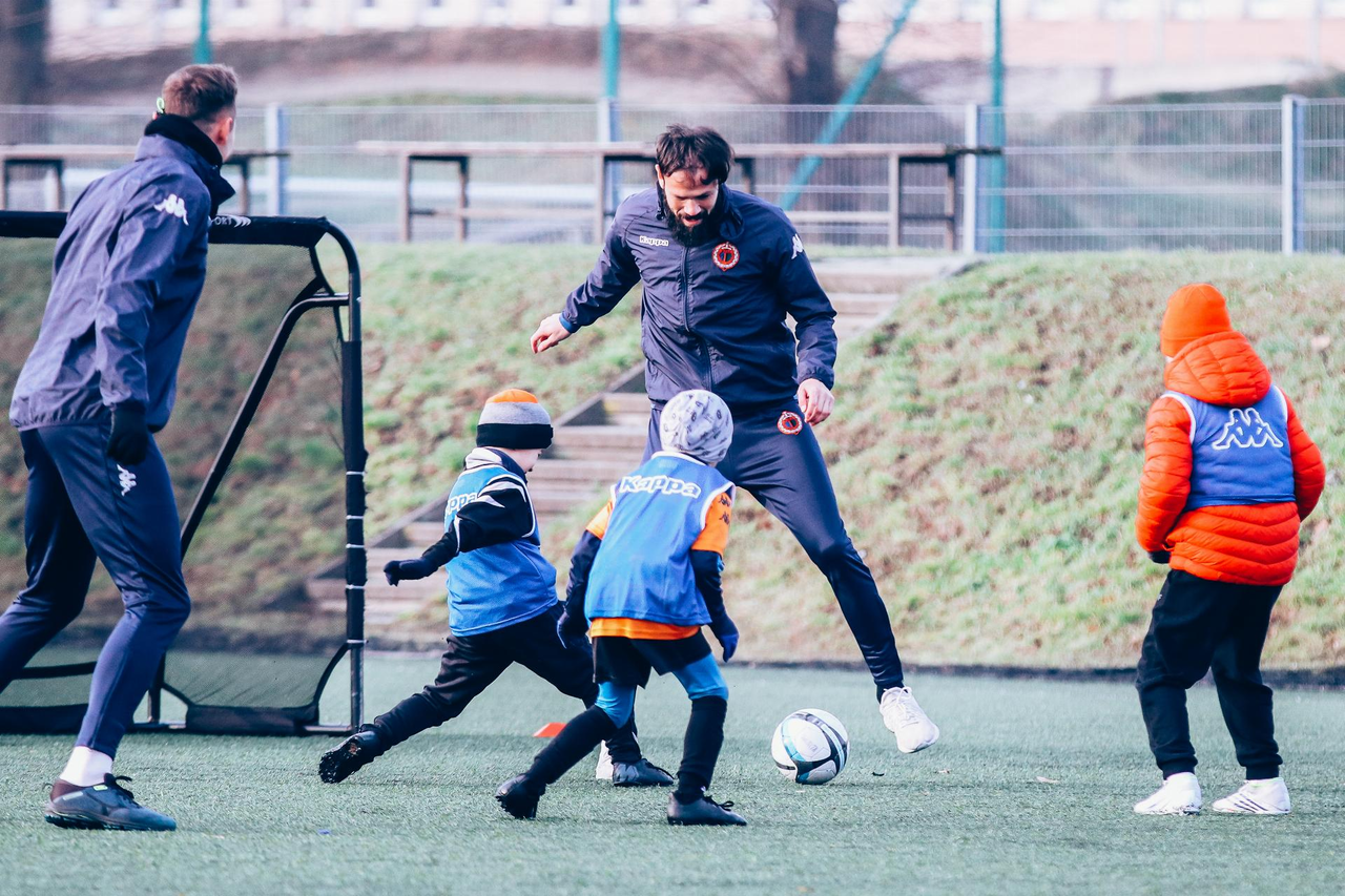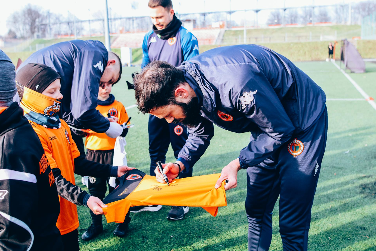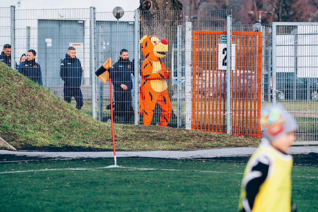 Pierwszoligowcy zagrali z dziećmi 8 rano i meldunek na boisku. Piłkarze pierwszej drużyny trenowali z uczestnikami Piłkarskich Ferii Zimowych Akademii Piłki Nożnej Chrobrego. 23-02-2023 09:55 autor: ŁJ W tym tygodniu – drugim podczas ferii zimowych – trwają Piłkarskie Ferie Zimowe organizowane przez klubową Akademię Piłki Nożnej. Opiekunem grupy jest trener Paweł Kliszka. Codziennie spędza ona czas na obiektach Chrobrego, trenując na boiskach, w hali czy pływalni, ale też poza, bo na przykład w środę wszyscy bawili się w Jump Planet, a dzień wcześniej oglądali piłkarski film podczas seansu w Teatrze im. Andreasa Gryphiusa. Najwięcej jest jednak piłkarskiej aktywności na boisku, która w czwartek z samego rana została urozmaicona odwiedzinami pierwszoligowców Chrobrego. Z dziećmi spotkali się Patryk Mucha, Karol Dybowski, Mavroudis Bougaidis, Sebastian Górski oraz Rafał Wolsztyński.