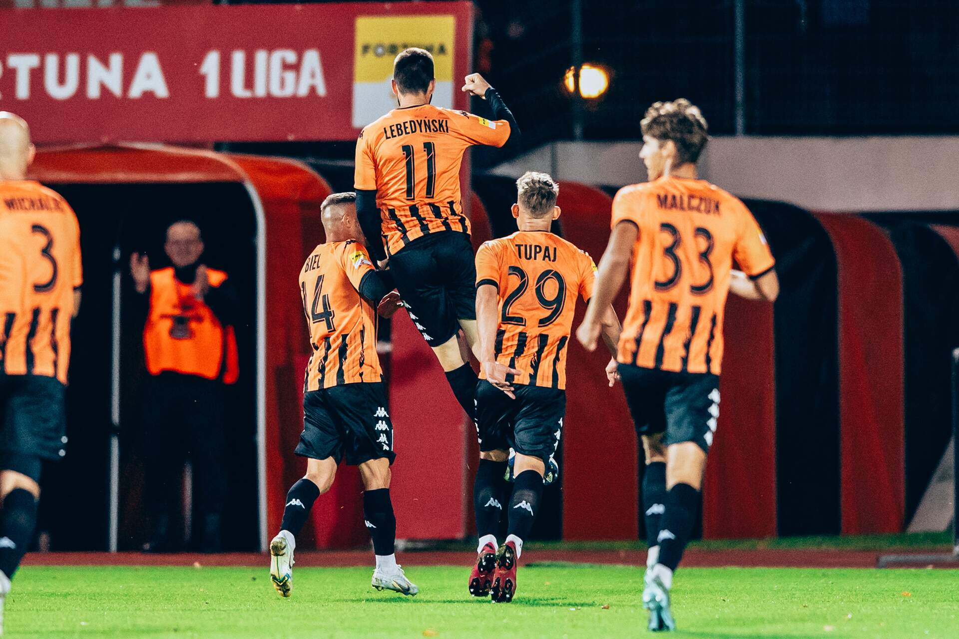 Miejsce bez zmian, różnica już nie Tabela po 9 kolejce. 25-09-2023 05:08 autor: ŁJ Po wygranej z Arką Gdynia Pomarańczowo-Czarni opuścili 18 miejsce tabeli, ale tylko na moment. W niedzielę swój mecz wygrała Stal Rzeszów i to ona nadal jest tuż przed głogowianami, którzy jednak pomimo tego i tak poprawili swoje położenie w tabeli. W 9 serii porażkę poniosło Zagłębie Sosnowiec, a Resovia Rzeszów, Polonia Warszawa i Podbeskidzie Bielsko-Biała swoje występy zakończyły z punktem. W efekcie Chrobry do 13 lokaty traci już tylko dwa punkty, choć jeszcze kilka tygodni wcześniej strata wynosiła całe sześć. 9 kolejka Fortuna 1 Ligi Miedź Legnica - Odra Opole 1:2 Nemanja Mijuskovic 72 (k) - Borja Galan 27, Rafał Niziołek 50 Podbeskidzie Bielsko-Biała - Górnik Łęczna 1:1 Michał Janota 43 - Piotr Starzyński 52 Lechia Gdańsk - GKS Katowice 5:1 Luis Fernandez 9, 55, Tomas Bobcek 65, 84, Elias Olsson 77 - Sebastian Bergier 13 Resovia Rzeszów - Polonia Warszawa 1:1 Rafał Mikulec 45 (k) - Marcin Kluska 19 Motor Lublin - Wisła Kraków 1:4 Arkadiusz Najemski 74 - Arkadiusz Najemski 22 (s), Angel Rodado 29, 63 (k), Joan Roman 90 Chrobry Głogów - Arka Gdynia 1:0 Mikołaj Lebedyński 40 Wisła Płock - GKS Tychy 4:1 Łukasz Sekulski 45 (k), 46, Adam Chrzanowski 61, Jakub Grič 87 - Jakub Budnicki 90 Znicz Pruszków - Stal Rzeszów 1:2 Shuma Nagamatsu 65 - Szymon Łyczko 44, 57 Zagłębie Sosnowiec - Bruk-Bet Termalica Nieciecza 1:3 Kamil Biliński 15 - Kacper Karasek 7, Maciej Ambrosiewicz 62, Jakub Branecki 83 ZOBACZ TABELĘ FORTUNA 1 LIGI fot. 400mm.pl