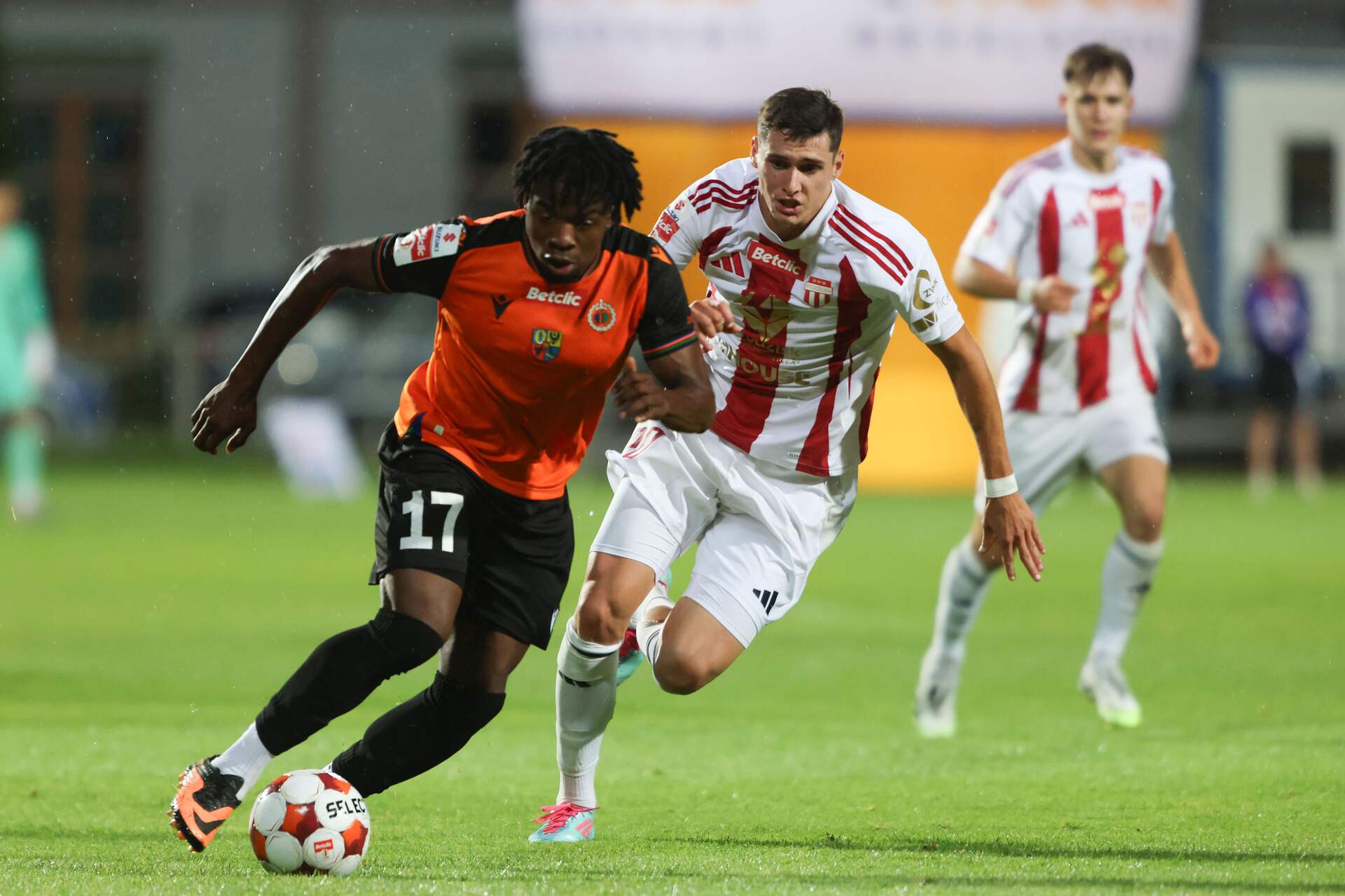Pogoń Grodzisk Mazowiecki - Chrobry Głogów 1:1 Remis Chrobrego z Pogonią Grodzisk Mazowiecki w meczu 7. kolejki Betclic 1 Ligi. 23-08-2025 09:15 autor: ŁJ POGOŃ GRODZISK MAZOWIECKI - CHROBRY GŁOGÓW 1:1 (0:0) 0:1 Kacper Laskowski 54 1:1 Damian Jaroń 83 POGOŃ: 1. Paweł Kieszek - 52. Oliwier Olewiński (46, 11. Kamil Kargulewicz), 21. Kacper Łoś, 99. Karol Noiszewski, 6. Bartosz Farbiszewski, 20. Olivier Wypart (67, 7. Jakub Jędrasik) - 13. Jakub Lis (46, 9. Stanisław Gieroba), 31. Jakub Staniszewski, 77. Jakub Adkonis, 71. Mateusz Szczepaniak (67, 10. Damian Jaroń) - 19. Rafał Adamski. CHROBRY: 99. Dawid Arndt - 29. Paweł Tupaj, 8. Jakub Grič, 18. Myrosław Mazur, 80. Kacper Tabiś (86, 13. Jakub Kuzdra) - 17. Kelechukwu Ibe-Torti (84, 15. Kacper Nowakowski), 7. Sebastian Bonecki (84, 24. Kamil Grzelak), 16. Robert Mandrysz, 30. Szymon Bartlewicz, 27. Kacper Laskowski (68, 9. Mateusz Ozimek) - 11. Sebastian Strózik (68, 10. Piotr Janczukowicz). ŻÓŁTE KARTKI: Kargulewicz - Tabiś, Bonecki. SĘDZIA: Paweł Horożaniecki (Żary). fot. 400mm.pl