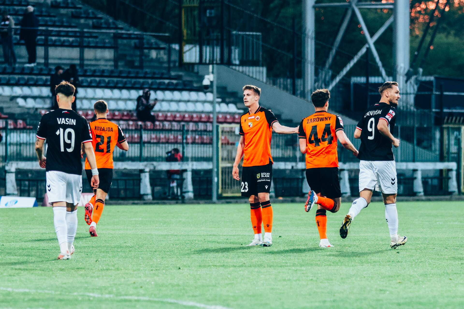 Zabrakło niewiele Kilka minut dzieliło Chrobrego od wywiezienia punktu z bardzo trudnego terenu. Bramka Łukasza Zjawińskiego w 89. minucie dała jednak wygraną Polonii Warszawa. 25-04-2026 09:16 autor: ŁJ Do Warszawy nie mógł udać się podstawowy bramkarz Chrobrego, a zarazem jeden z czołowych golkiperów Betclic 1 Ligi, Dawid Arndt. Biorąc pod uwagę kartkową pauzę Myroslava Mazura, sztab szkoleniowy miał sporo pracy przy przygotowaniu formacji obronnej na ten pojedynek. Chrobry od początku przystąpił do ataku - już w 1. minucie na bramkę uderzał Kacper Laskowski. Chwilę po nim z dystansu spróbował Robert Mandrysz. Polonia jednak odpowiedziała i zrobiła to bardzo wyraźnie. W 10. minucie, po rzucie wolnym, w bardzo dobrej sytuacji znalazł się najlepszy strzelec Polonii, Łukasz Zjawiński, lecz piłkę odbił będący na posterunku Paweł Lenarcik. W 16. minucie ciekawym stałym fragmentem odpowiedzieli głogowianie. Zaskoczyli jego rozegraniem, a całość strzałem kończył Szymon Lewkot, jednak futbolówka musnęła słupek. To zdecydowanie mógł być gol. Z czasem rosła przewaga Polonii, ale obrona Chrobrego pracowała w pełnym skupieniu. W pierwszych 45 minutach nie dopuściła do błędu i ta część meczu zakończyła się bezbramkowym remisem. Choć w samej końcówce z bramki do szatni mogli cieszyć się Pomarańczowo-Czarni, bo piłkę tuż nad poprzeczką posłał strzelający z szesnastki Robert Mandrysz. Po przerwie gospodarze mocno zaatakowali i między 56. a 60. minutą stworzyli trzy świetne okazje. W dwóch pierwszych swojego trafienia szukał Zjawiński, jednak zastępujący Dawida Arndta Paweł Lenarcik spisywał się bardzo dobrze, dwukrotnie kierując zmierzającą w światło bramki futbolówkę poza linię końcową. Zawodnicy Czarnych Koszul napierali. W kolejnej sytuacji interweniować musiał Lenarcik i tylko dzięki temu piłka odbiła się od poprzeczki, zamiast wpaść do siatki. Polonia wychodziła nawet z niebezpieczną kontrą dwóch na dwóch, a w jednej z akcji piłkę sprzed linii bramkowej wybił Michał Kozajda... Wynik wciąż pozostawał bez zmian. Chrobry miał sporo szczęścia, ale szczelną obroną mocno sobie i temu szczęściu pomagał. Dwoił się i troił, mocno pracował, za wszelką cenę starając się utrzymać remis - i był tego bardzo blisko. Wszystko zmienił jednak stały fragment gry w 89. minucie. Po wrzutce z rzutu rożnego mocnym uderzeniem głową golkipera z Głogowa pokonał ten, który w tym meczu stwarzał największe zagrożenie - Łukasz Zjawiński. Do końca sezonu pozostały cztery mecze. W następnym Chrobry podejmie u siebie GKS Tychy - dokładnie w niedzielę, 3 maja o godz. 17.00.