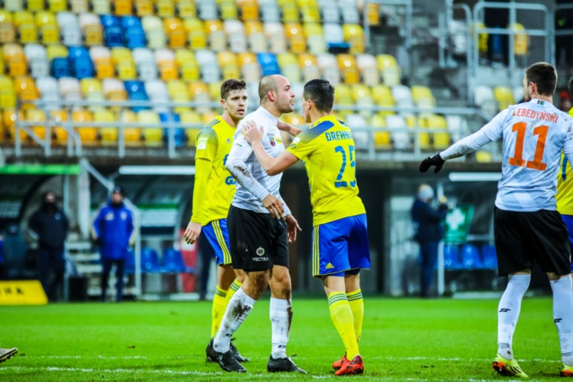 Przed meczem z Arką. Jaka stawka? Niedzielnym meczem z Arką Gdynia zespół Chrobrego Głogów zakończy sezon w Fortuna 1 Lidze. Wtedy rozstrzygnie się, na jakim dokładnie miejscu, bo zwycięstwo może być konieczne, aby pozostać przynajmniej na dziesiątym. Na kilka… 10-06-2021 10:31 autor: ŁJ Niedzielnym meczem z Arką Gdynia zespół Chrobrego Głogów zakończy sezon w Fortuna 1 Lidze. Wtedy rozstrzygnie się, na jakim dokładnie miejscu, bo zwycięstwo może być konieczne, aby pozostać przynajmniej na dziesiątym. Na kilka dni przed spotkaniem piszemy więcej o rywalu i samym pojedynku.Stawka nie jest już duża, ale wciąż jestJeszcze kilka dni temu można było przypuszczać, że Arka będzie w Głogowie wypruwać żyły w walce o bezpośredni awans. Nie wygrała jednak w żadnej z trzech ostatnich kolejek i tym wykluczyła się z tej gry. Jest za to pewna udziału w barażach, których pierwsze spotkania zaplanowano już na środę, więc wyjazd do Głogowa niekoniecznie jej na rękę. Nie jest przy tym tak, że to dla niej gra o nic. W Gdyni już wiedzą, że w pierwszym meczu barażowym zmierzą się z ŁKS-em Łódź, ale ostatnia kolejka zadecyduje czy do rywalizacji dojdzie w Gdyni czy w Łodzi. Jeśli Arka wygra w Głogowie, bez oglądania się na innych będzie pewna występu na swoim stadionie.Ze znaczeniem tego meczu podobnie jest w przypadku Chrobrego. Zespół trenera Ivana Djurdjevicia może jeszcze awansować na dziewiąte miejsce i tylko wygrana może dać obronę aktualnie zajmowanej dziesiątej pozycji. Jasne, nie jest to gra o największą stawkę, ale lepiej sezon zakończyć w górnej połówce lub przynajmniej blisko tej granicy, niż na 12 lokacie.21 lat czekaniaChrobry zagra z Arką po raz szesnasty. Do tej pory 13 meczów odbyło się w lidze, a dwa kolejne w Pucharze Polski. Sześć razy wygrywali Arkowcy, czterokrotnie Pomarańczowo-Czarni, a pięć spotkań zakończyło się remisem. Podział punktów miał miejsce w ostatnim pojedynku z grudnia ubiegłego roku. Chrobry po golu w końcówce Pawła Oleksego - byłego zawodnika Arki - zremisował 1:1. Długo jednak pozostaje bez wygranej z tym przeciwnikiem. Ostatni taki występ miał miejsce 5 listopada 1994 roku, kiedy to głogowianie po bramkach Emila Nowakowskiego i Dariusza Błaszczyka zwyciężyli 2:1. Od tamtego momentu padały albo remisy albo komplet punktów inkasowali gdynianie.Dwie pauzy za 8 żółtych kartekW jednym i drugim zespole z powodu żółtych kartek zabraknie po jednym piłkarzy. W Arce nie wystąpi Arkadiusz Kasperkiewicz, w Chrobry Jaka Kolenc. Obu łączy to, że w ostatniej kolejce otrzymali po ósmej żółtej kartce, a taka liczba oznacza mecz przerwy.