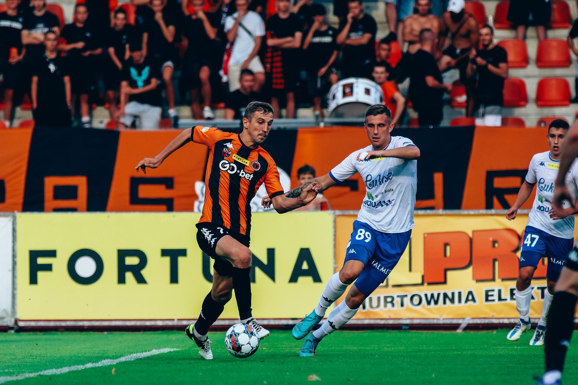Nasz rywal: Podbeskidzie Bielsko-Biała Chrobry pozostaje w grze z zespołami górnej części tabeli. W piątek o godz. 18.00 wyjazdowy pojedynek z dziewiątym Podbeskidziem Bielsko-Biała. 09-03-2023 08:10 autor: ŁJ Podobieństwa ostatnich występów Dla Chrobrego to drugi z rzędu mecz na styku punktowym. Głogowianie po ostatniej kolejce są na siódmej pozycji, a nad dziewiątym Podbeskidziem mają dwa punkty przewagi. Piątkowy mecz zadecyduje o tym, kto będzie wyżej. Bardzo podobne są też występy obu drużyn w ostatniej kolejce. Przegrał Chrobry, ale przegrało też Podbeskidzie. Zupełnie nieoczekiwane 0:1 z zamykającą pierwszoligową stawkę Skrą Częstochowa było pierwszą porażką Górali po serii dwunastu spotkań z minimum punktem. Potwierdziło się, że długie serie są często przerywane w bolesny sposób. Innym podobieństwem jest kończenie występu w dziesięciu. W Chrobrym czerwoną kartką za drugą żółtą ukarano Sebastiana Stebleckiego, w Podbeskidziu bezpośrednio czerwoną Michała Janotę i obaj nie zagrają w piątek. Pokonany dopiero po ponad sześciu miesiącach Tak długa seria bez porażek w wykonaniu Podbeskidzia przynajmniej częściowo mogła być efektem zmiany dokonanej w klubie we wrześniu. Wówczas zdecydowano się zatrudnić nowego trenera, którym został Dariusz Żuraw i to właśnie pod jego wodzą zespół przez kolejne miesiące przechodził bez klęski. Ubiegłotygodniowe 0:1 ze Skrą było więc jego pierwszą porażką w roli szkoleniowca Podbeskidzia, z którym ma obecnie bilans 4 – 8 – 1. Tu zagramy Fot. tspodbeskidzie.pl Pauzują w tej kolejce W Podbeskidziu za czerwoną kartkę pauzował będzie Michał Janota (17 / 0 w tym sezonie). W kadrze Chrobrego zabraknie za czwartą żółtą kartkę Sebastiana Stebleckiego, ale do składu Pomarańczowo-Czarnych wróci za to Patryk Mucha. Gdzie obejrzeć? Z rozpoczynającego się o godz. 18.00 meczu transmisję będzie można obejrzeć w Polsat Box Go. Możesz też aktywować jednorazowy dostęp do meczu - PRZEJDŹ DO STRONY TRANSMISJI. Pamiętaj, że korzystając z tego dedykowanego linku, wspierasz klub. Po raz szesnasty Przed Chrobrym kolejny po Termalica przeciwnik, z którym do tej pory wygrał tylko raz. W lipcu 2020 roku Pomarańczowo-Czarni wygrali w Bielsku-Białej 1:0 po bramce Michała Ilkowa-Gołąba i było to jedyne zwycięstwo Chrobrego w dotychczasowych 15 rozegranych potkaniach. W rundzie jesiennej Podbeskidzie zwyciężyło 1:0 po golu Kamila Bilińskiego, więc czas na rewanż i poprawienie statystyk. Liczba meczów Chrobry-Podbeskidzie: 15 Zwycięstw Chrobrego: 1 Remisów: 4 Zwycięstw Podbeskidzia: 10 Bramki Chrobry-Podbeskidzie: 9:24 Ostatni mecz pomiędzy Chrobrym i Podbeskidziem z sierpnia ubiegłego roku