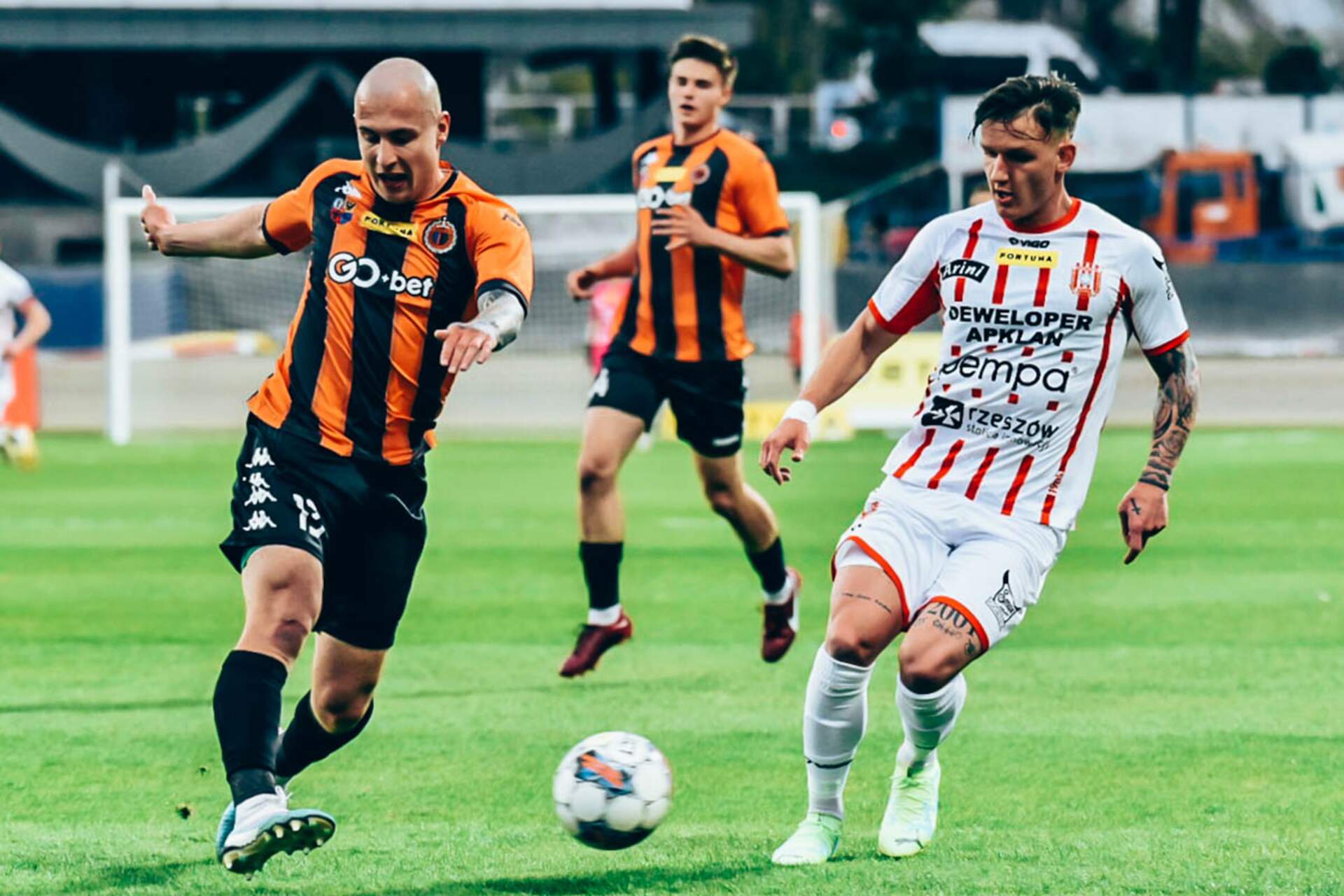 Punkt z Rzeszowa. Drugi remis z rzędu Pomarańczowo-Czarnych Dwa gole w ciągu 180 sekund i błyskawiczna odpowiedź za sprawą Patryka Muchy. Chrobry zremisował z Resovią Rzeszów 1:1. 14-04-2023 07:53 autor: ŁJ Trener Marek Gołębiewski już wcześniej zapowiadał, że na Resovię sytuacja kadrowa ulegnie poprawie i było to widać po jej zestawieniu. Do jedenastki po raz pierwszy w tym roku trafił kończący rehabilitację po zabiegu Robert Mandrysz, a na ławkę Michał Ilków-Gołab. Jak inne było to zestawienie w porównaniu do wcześniejszych tegorocznych występów pokazuje też obecność w podstawie Mateusza Ozimka – również pierwsza dla tego zawodnika. Mamy punkt. Dwa remisy z rzędu to dobra podstawa do tego, żeby za tydzień wygrać bardzo ważny mecz z Arką Gdynia.#RESCHRFot. Paweł Golonka (Resovia) pic.twitter.com/wwlvSJh3ZV— Chrobry Głogów (@ChrobryGlogowSA) April 14, 2023 Chrobry dobrze zaczął ten mecz i już w ciągu pierwszych 10 minut dwukrotnie zagroził bramce gospodarzy. W 5 minucie po podaniu Patryka Muchy na raty uderzał Sebastian Steblecki, za tym drugim razem posyłając futbolówkę na poprzeczkę. Po chwili z rzutu rożnego dośrodkował Mateusz Machaj, po czym niecelnie główkował Albert Zarówny. Chociaż żadna z sytuacji nie została zamieniona na gola, był to jeden z lepszych i odważniejszych początków głogowian w ostatnich tygodniach. Tym bardziej szkoda, że po kolejnych 10 minutach było 1:0. Jeszcze w 18 minucie piłkę obok słupka posłał Aleksander Komor. 120 sekund później Pomarańczowo-Czarni trochę pogubili się bliżej własnej bramki, futbolówka – mimo wcześniejszego jej wybicia z szesnastki - trochę szczęśliwie trafiła do Macieja Górskiego, który z kilku metrów umieścił ją w środku. Na szczęście zawodnicy Chrobrego nie rozmyślali o tej sytuacji i błyskawicznie, już w 23 minucie doprowadzili do wyrównania. Po długim wyrzucie piłki z autu główkował ponownie Albert Zarówny, lecz na linii bardzo dobrze interweniował Paweł Łakota. W tym momencie świetnie ustawiony Patryk Mucha odbitą piłkę skierował do bramki rzeszowian. To trzecie trafienie Muchy w tym sezonie, a lekki niedosyt może czuć tylko Zarówny, który w drugim pojedynku z rzędu był bardzo blisko premierowego gola. Fot. Paweł Golonka (Resovia) Druga część, przynajmniej w pierwszych 20, 25 minutach, utrzymała odpowiedni poziom emocji. Bardzo dobrze mogła zacząć Resovia, ale Łukasz Seweryn przymierzył w poprzeczkę. W 52 minucie mogło być za to 1:2. Mateusz Machaj uderzył zza pola karnego, piłkę odbił Paweł Łakota, próbować poprawić z bliska Patryk Mucha i znów… Łakota. Wtedy jeszcze starał się to zamknąć Patryk Mucha, lecz po jego strzale piłka już nie zmierzała w światło bramki. Dalsze emocje przyniosła analiza sytuacji, w której w polu karnym po kontakcie z rywalem przewrócił się Mateusz Ozimek. Sędzia Grzegorz Kawałko długo analizował to przy udziale systemu VAR i ostatecznie nie zdecydował się na przyznanie Chrobremu jedenastki. W 67 minucie po raz drugi na listę strzelców mógł wpisać się były gracz Chrobrego Maciej Górski, ale po jego główce futbolówkę pewnie chwycił Damian Węglarz. W dalszych fragmentach spotkanie jakby wyhamowało. Wobec mniejszej liczby dobrych okazji - choć niewiele zabrakło, aby w doliczonym czasie Jakub Sylvestr trącił piłkę i… kto wie - żadna ze stron nie przechyliła tego pojedynku na swoją korzyść. Podobnie jak w rundzie jesiennej zakończył się on remisem 1:1. Po dwóch remisach z rzędu można przyjąć, że dla Chrobrego to dobra podstawa, aby w kolejnym, bardzo ważnym meczu z Arką Gdynia zagrać o pełną pulę. To spotkanie w piątek 21 kwietnia o godz. 18.00 na stadionie w Głogowie.