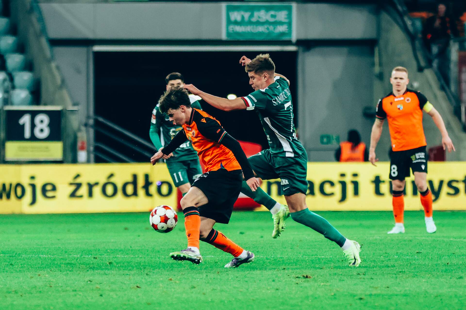 Chrobry nie zapunktował, ale postraszył Trzy rzuty karne, ale dwa anulowane. Trzy bramki, ale dwie z nich dla Śląska. WKS wygrywa z Chrobrym 2:1. 28-02-2026 09:17 autor: ŁJ Mocne otwarcie Śląska Od pierwszych minut inicjatywę przejęli gospodarze. Bramkę strzeżoną przez Dawida Arndta próbowali sforsować Matsenko, Ba oraz Llinares. Choć początkowo brakowało skuteczności, z każdą minutą robiło się coraz groźniej. Przełom nastąpił w 30. minucie. Po analizie VAR sędzia Tomasz Marciniak podyktował rzut karny dla Śląska i ukarał żółtą kartką Kacpra Tabisia. Do piłki ustawionej na jedenastym metrze podszedł kapitan WKS-u Piotr Samiec-Talar i otworzył wynik spotkania. Zaledwie trzy minuty później było już 2:0. W 33. minucie Yehor Matsenko wykorzystał dobrą akcję gospodarzy i podwyższył prowadzenie Śląska. Reakcja Chrobrego po przerwie Trener Łukasz Becella nie mógł być zadowolony z postawy swojej drużyny w pierwszej połowie. Już w przerwie zdecydował się na podwójną zmianę - na boisku pojawili się Paweł Tupaj i Sebastian Bonecki. Po zmianie stron Chrobry zaczął prezentować się lepiej. Michał Szromnik nie musiał wprawdzie popisywać się spektakularnymi interwencjami, ale presja głogowian była wyraźnie większa i tym w 65. minucie wywalczyli rzut karny. Przynajmniej tak przez moment się wydawało. Sędzia ponownie skorzystał jednak z systemu VAR i po analizie cofnął swoją decyzję. Emocjonująca końcówka Chrobry nie zrezygnował z walki i w 81. minucie złapał kontakt. W zamieszaniu podbramkowym najprzytomniej zachował się Myroslav Mazur, zdobywając bramkę na 2:1. Końcówka meczu trzymała w napięciu do ostatnich sekund. W doliczonym czasie gry arbiter po raz trzeci wskazał na jedenasty metr i po raz drugi z korzyścią dla Chrobrego. Po kolejnej analizie VAR rzut karny został jednak anulowany. Od gwizdka do ostatecznej decyzji minęło kilka długich minut, w których kibice Śląska wstrzymali oddech. I to dobre podsumowanie tego pojedynku. Ostatecznie trzy punkty zostały we Wrocławiu, ale Chrobry po słabszej pierwszej części meczu w drugiej wyraźnie się ożywił i postraszył rywali. Bilans wyjazdów i co dalej? Meczem we Wrocławiu Chrobry zakończył serię trzech spotkań wyjazdowych z bilansem 1-1-1. Teraz przed Pomarańczowo-Czarnymi rywalizacja u siebie. Najbliższe spotkanie już w sobotę, 7 marca o godz. 19:30 - rywalem MZKS-u będzie Pogoń Grodzisk Mazowiecki.