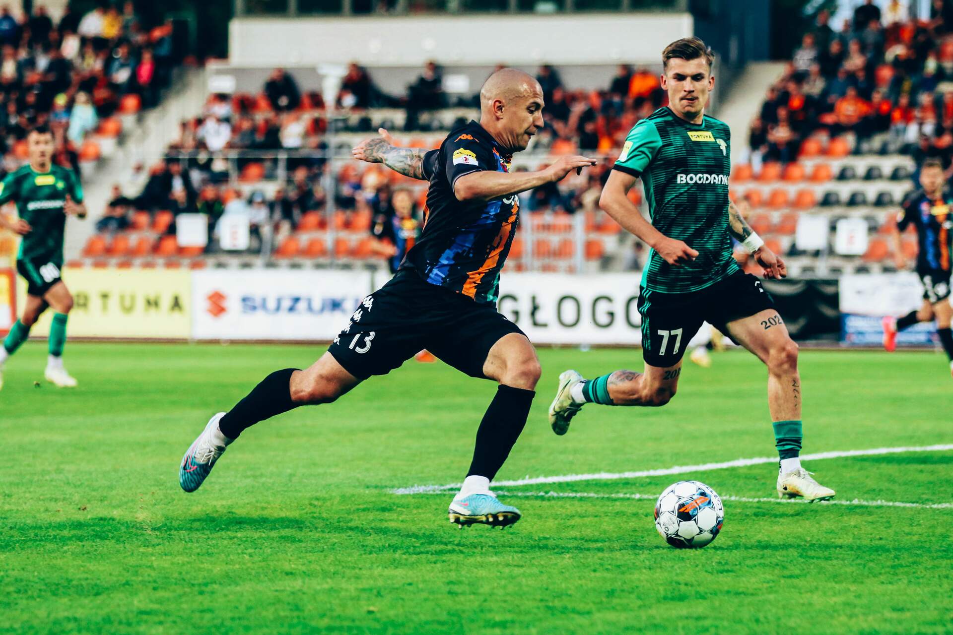 Bramki, asysty i występy. Podsumowanie sezonu Statystyczne podsumowanie sezonu 2022/23 w wykonaniu Pomarańczowo-Czarnych. 13-06-2023 09:37 autor: ŁJ Występy (od najwięcej): 35 - Sebastian Steblecki 34 - Jakub Kuzdra 33 - Rafał Wolsztyński Występy (od najmniej): 1 - Szymon Bartlewicz, Jakub Cieślicki 3 - Michał Ilków-Gołąb 4 - Dmytro Bilonoh Najwięcej występów w "11": 34 - Jakub Kuzdra 32 - Sebastian Steblecki 28 - Patryk Mucha, Jaka Kolenc Najwięcej pełnych występów: 28 - Jakub Kuzdra 24 - Robert Mandrysz 22 - Karol Dybowski, Patryk Mucha Minuty na boisku (od najwięcej): 2849 - Jakub Kuzdra 2498 - Patryk Mucha 2484 - Sebastian Steblecki Minuty na boisku (od najmniej): 3 - Michał Ilków-Gołąb 13 - Szymon Bartlewicz 31 - Jakub Cieślicki Najczęściej zmieniany: 23 - Sebastian Steblecki 14 - Rafał Wolsztyński 12 - Jaka Kolenc Najczęściej wchodzący: 17 - Jakub Górski 15 - Miłosz Jóźwiak 13 - Kamil Wojtyra Najwięcej bramek: 8 - Sebastian Steblecki, Mateusz Bochnak 7 - Mateusz Machaj, Kamil Wojtyra 5 - Rafał Wolsztyński Najwięcej asyst: 5 - Rafał Wolsztyński 4 - Mateusz Bochnak 3 - Jakub Kuzdra, Artur Bogusz, Sebastian Steblecki Klasyfikacja kanadyjska: 12 (8+4) - Mateusz Bochnak 11 (8+3) - Sebastian Steblecki 10 (5+5) - Rafał Wolsztyński Bramki samobójcze: - Żółte kartki (od najwięcej): 11 - Jakub Kuzdra 8 - Robert Mandrysz 7 - Mavroudis Bougaidis, Sebastian Steblecki Czerwone kartki (bezpośrednio pokazane): 1 - Dawid Hanc, Mavroudis Bougaidis Czerwone kartki (wszystkie): 1 - Dawid Hanc, Mavroudis Bougaidis, Sebastian Steblecki Najstarszy: 38 lat - Michał Michalec Najmłodszy: 17 - Szymon Bartlewicz Najbardziej popularna jedenastka (w nawiasie liczba występów w "11"): Dybowski (22) - Jakub Kuzdra (34), Michał Michalec (21), Mavroudis Bougaidis (22), Artur Bogusz (23), Patryk Mucha (28), Jaka Kolenc (28), Sebastian Steblecki (32), Mateusz Machaj (14), Robert Mandrysz (25), Rafał Wolsztyński (23).