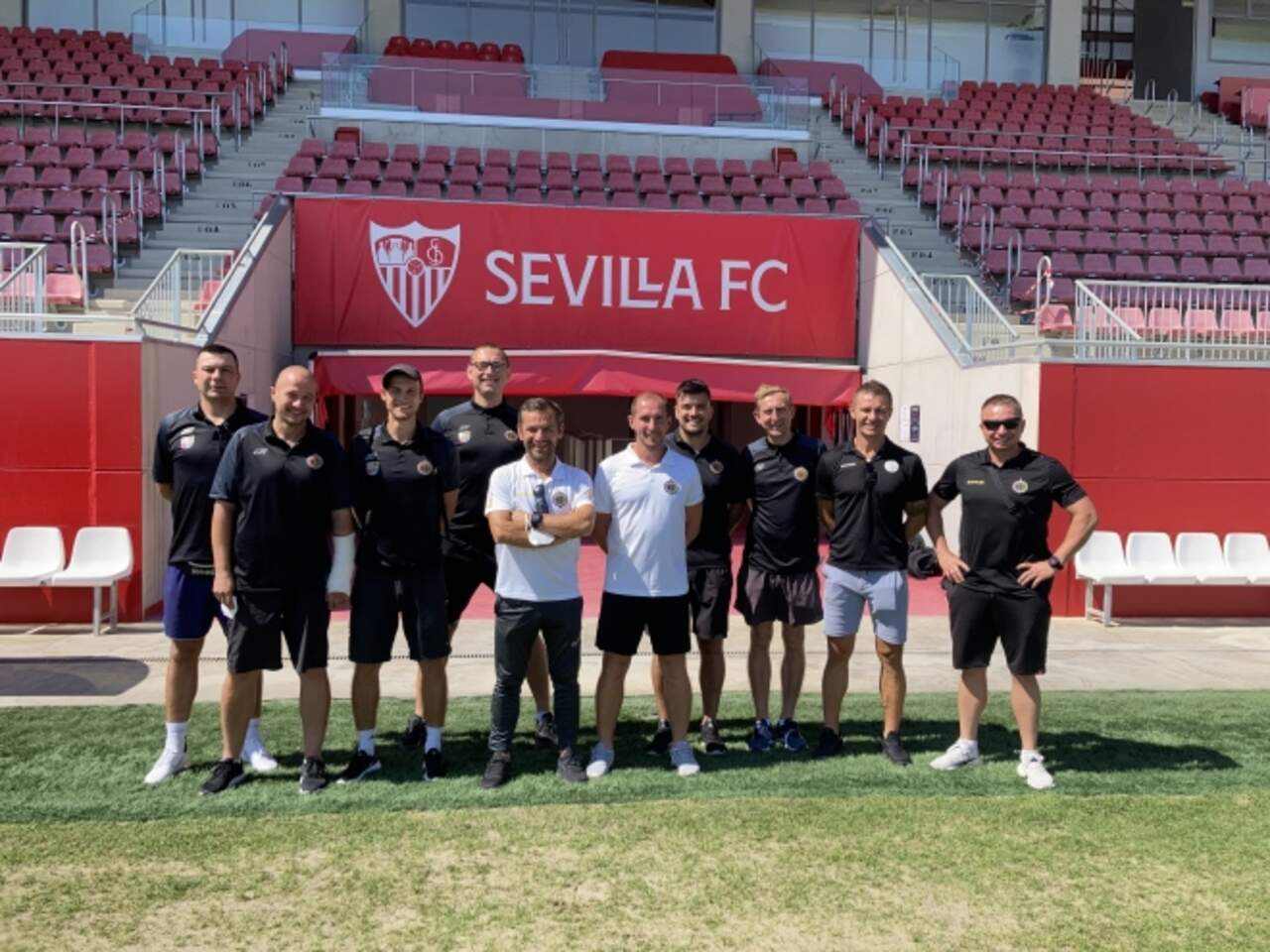 Trenerzy SMS Chrobry są w Sevilla FC na stażu Dziesięciu trenerów SMS Chrobry Głogów jest po pierwszym dniu stażu w klubie Sevilla FC, w ramach projektu Erasmus+ pod nazwą „Kreatywnie ucząc się razem. Rozwój kompetencji trenerów i nauczycieli w Szkole Mistrzostwa… 21-09-2021 10:11 autor: ŁJ Dziesięciu trenerów SMS Chrobry Głogów jest po pierwszym dniu stażu w klubie Sevilla FC, w ramach projektu Erasmus+ pod nazwą „Kreatywnie ucząc się razem. Rozwój kompetencji trenerów i nauczycieli w Szkole Mistrzostwa Sportowego w Głogowie”.Nasi trenerzy przez 5 dni będą poznawać filozofię, strukturę szkolenia, a także metodologię szkolenia klubu Sevilla FC. W pierwszym dniu szkolenia spotkali się z dyrektorem klubu, dyrektorem akademii, szefem skautingu i koordynatorem ds. rozwoju akademii. Poznali także filozofię szkolenia całej akademii oraz wzięli udział w dwóch sesjach treningowych drużyn U-19 i U-11. Przed nimi kolejne dni obfitych zajęć, które są zaplanowane w godzinach od 9.30 do 19.00.- Cieszymy się, że możemy wziąć udział w tym stażu, o który zabiegaliśmy od dwóch lat. W jednym z najbardziej utytułowanych klubów w Europie, sześciokrotnym zdobywcy Ligii Europy. W SMS Chrobry Głogów jednym z priorytetów oprócz szkolenia zawodników jest rozwój trenerów. Jesteśmy pod wrażeniem serdeczności i otwartości ze strony zarządzających, trenerów i pracowników klubu. Mamy dopasowany do naszych potrzeb plan stażu, który dotyczy każdego etapu i obszaru rozwoju zawodnika. Oprócz zajęć teoretycznych, weźmiemy udział w 10 sesjach treningowych, będziemy mogli też zobaczyć mecze mistrzowskie drużyn Sevilla FC. Poznamy również strukturę organizacyjną klubu, dotyczącą infrastruktury, zarządzania trenerami, współpracy między pionami szkoleniowymi i sprawami logistycznymi - przybliża nam zakres stażu dyrektor ds. sportowych w SMS Chrobry Głogów Jarosław Wielgus.