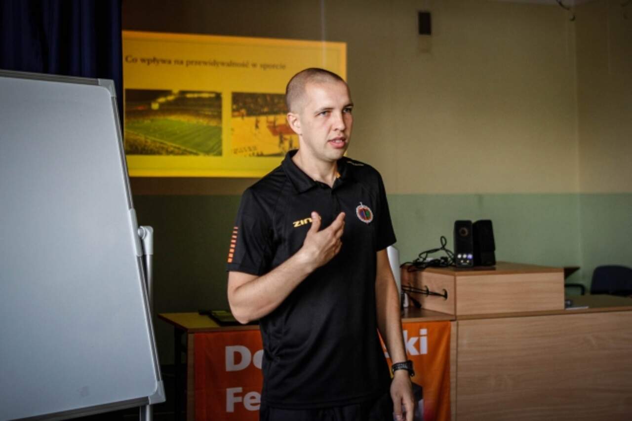 Trenerzy o liczbach w piłce Chrobry Głogów po raz kolejny włączył się w Dolnośląski Festiwal Nauki. Głogowska edycja projektu trwa w dniach 8-10 października i właśnie ostatniego dnia ze swoją częścią wystąpił klub. Trenerzy pierwszej drużyny Ivan… 10-10-2019 02:59 autor: AM / ŁJ Chrobry Głogów po raz kolejny włączył się w Dolnośląski Festiwal Nauki. Głogowska edycja projektu trwa w dniach 8-10 października i właśnie ostatniego dnia ze swoją częścią wystąpił klub. Trenerzy pierwszej drużyny Ivan Djurdjević i Maciej Stachowiak zaprezentowali młodzieży wykład na temat liczb w piłce nożnej i ogólnie w sporcie, bo tegoroczna edycja DFN odbywa się pod hasłem „Między duchem a materią pośredniczy matematyka”.Wykład został przeprowadzony w Szkole Mistrzostwa Sportowego Chrobry dla trzech zgłoszonych klas. Trener asystent w pierwszym zespole Maciej Stachowiak wspominał o tym, że liczby w piłce mogą być istotne, warto umiejętnie się nimi posługiwać, ale nie one dominują i nie one decydują.- W Ekstraklasie są piłkarze, którzy mają prywatne konta w serwisie Instat i przed meczami sprawdzają, przykładowo, rywala, naprzeciwko którego będą na boisku. Przeglądają wynikające z jego gry statystyki, które mogą podpowiedzieć preferowaną przez niego nogę, sposób poruszania się po murawie. Trzeba jednak pamiętać, że mając do wyboru podanie do partnera z trzema rywalami obok niego, a podanie do partnera bez przeciwnika, i wybierając ten pierwszy wariant, zostanie to odczytane jako jedno celne podanie, ale czy to rzeczywiście właściwy wybór? Piłka to przede wszystkim emocje i jest po tej stronie dyscyplin, w których o wyniku decyduje najmniejsza liczba czynników zależnych od nas samych - mówił M. Stachowiak.Na koniec uczestnicy zostali poproszeni o wykonanie analitycznego, liczbowego zadania związanego z Chrobrym. Mogą na przykład zanalizować fragment meczu drużyny młodzieżowej Chrobrego, w której sami występują, lub mecz pierwszego zespołu, rozkładając go na czynniki pierwsze. Jeśli zdecydują się na wykonanie tego zadania, zostaną nagrodzeni przez klub.