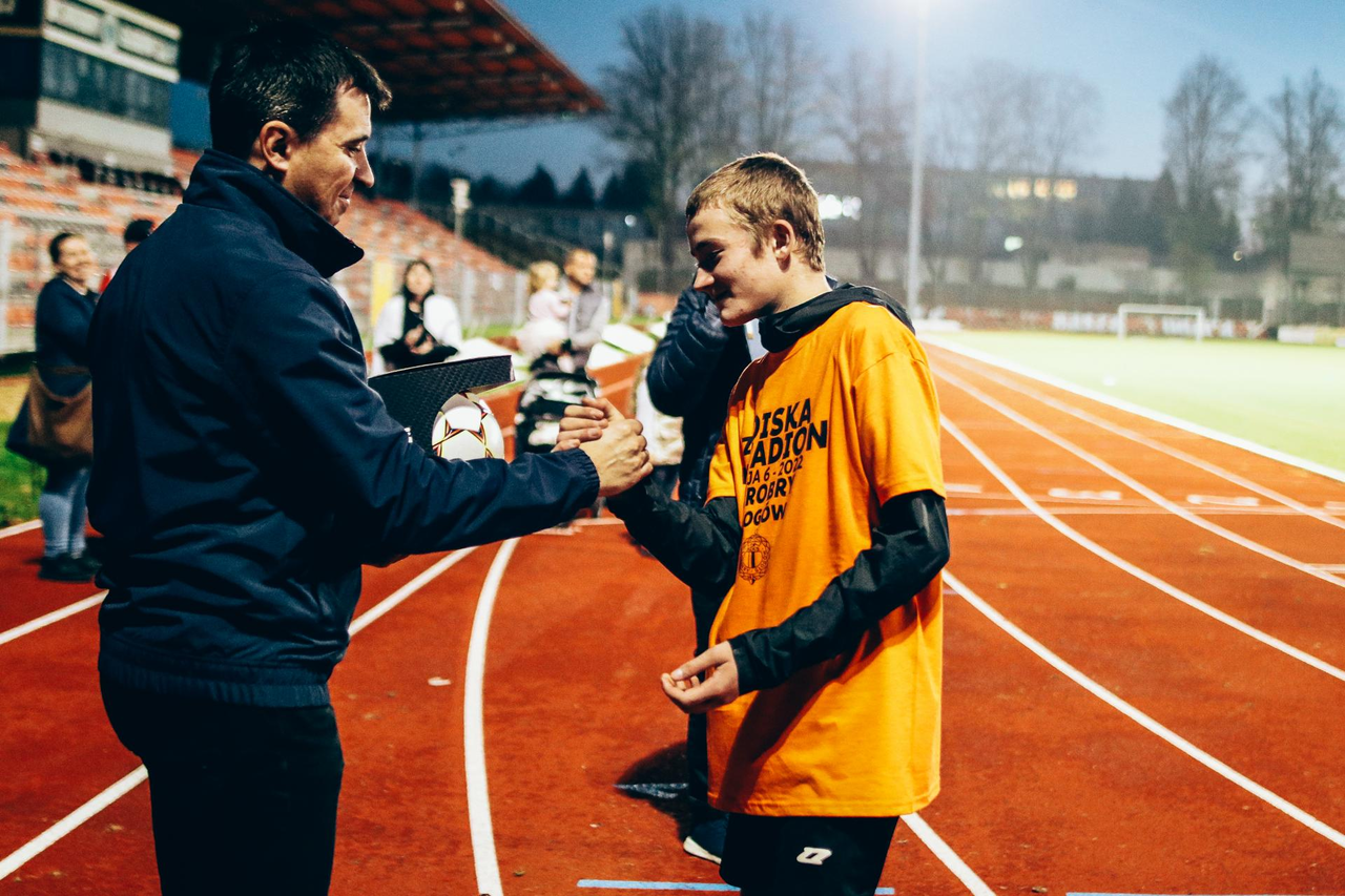 Po raz 6. z osiedlowego boiska przenieśli się na stadion Szóstą edycją turnieju Z Boiska Na Stadion podsumowaliśmy kończące się zajęcia Trenera Osiedlowego. Setka dzieci i młodzieży zagrała tam, gdzie pierwszoligowy Chrobry. 27-10-2022 08:35 autor: ŁJ Tylko do końca października na ośmiu przyszkolnych boiskach potrwają bezpłatne zajęcia sportowe w ramach projektu Trener Osiedlowy. Na kilka dni przed ostatnim w tym roku gwizdkiem uczestników zaprosiliśmy na stadion Chrobrego, na którym odbyła się szósta edycja piłkarskiego turnieju Z Boiska Na Stadion. W obu kategoriach triumfowali zawodnicy z boiska przy SP 7 trener Joanny Marszałek. Nagradzaliśmy jednak nie tylko zwycięzców, bo tradycyjnie wszyscy z rąk prezydenta Głogowa Rafaela Rokaszewicza i dyrektora Chrobrego Zbigniewa Prejsa otrzymali klubowe upominki. Mamy nadzieję, że w najbliższych miesiącach będą w nich widoczni na ulicach miasta. W tegorocznej edycji nasi trenerzy prowadzą zajęcia o charakterze sportowo-rekreacyjnym przez siedem miesięcy. W ramach projektu nie zabrakło wyjść na ligowe mecze Chrobrego Głogów czy na baseny. Przez trzy miesiące organizowaliśmy rozgrywki piłkarskiej Ligi Osiedlowej dla – jak sama nazwa wskazuje – osiedlowych zespołów, a zwycięzców w nagrodę zabraliśmy do Warszawy na mecz reprezentacji Polski. Turniej Z Boiska Na Stadion był zwieńczeniem wszelkich dotychczasowych aktywności Trenera Osiedlowego 2022. Prowadzony przez Chrobrego projekt Trener Osiedlowy jest finansowany ze środków Gminy Miejskiej Głogów.