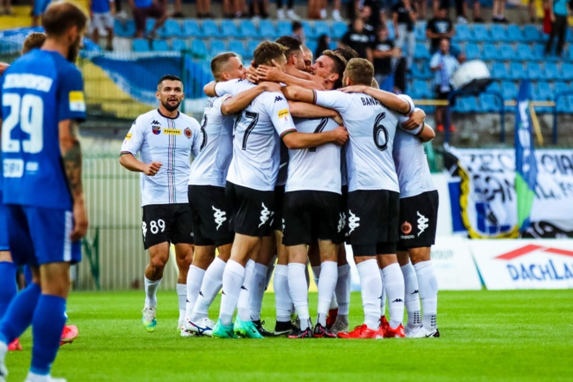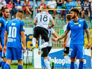 W nowy sezon z kompletem Chrobry wchodzi w nowy sezon z wyjazdowym zwycięstwem. Po bramkach Olivera Praznovskyego i Mateusza Bochnaka głogowianie wygrali ze Stomilem Olsztynem 2:1 i już na starcie dopisują do swojego konta komplet punktów.Mecz zaczął się… 01-08-2021 10:10 autor: ŁJ Chrobry wchodzi w nowy sezon z wyjazdowym zwycięstwem. Po bramkach Olivera Praznovskyego i Mateusza Bochnaka głogowianie wygrali ze Stomilem Olsztynem 2:1 i już na starcie dopisują do swojego konta komplet punktów.Mecz zaczął się od niebezpiecznego ataku gospodarzy. W 6 minucie na strzał zza pola karnego zdecydował się Łukasz Moneta, a Chrobrego uratował słupek. Na szczęście z każdą minutą głogowianie nabierali coraz większej pewności i dwukrotnie to udokumentowali. W 20 minucie po raz drugi w tym spotkaniu wykonywali rzut rożny. Po wrzutce Adama Banasiaka celnie główkował Oliver Praznovsky i tym samym kapitan Pomarańczowo-Czarnych stał się pierwszym strzelcem zespołu w nowym sezonie.W 34 minucie Chrobry podwyższył prowadzenie. Za szesnastką przy piłce znaleźli się Dominik Piła z Mateuszem Bochnakiem. Ten drugi zauważył wychodzącego z bramki golkipera Stomilu i podjął błyskawiczną decyzję o lobie, po którym futbolówka powoli, ale pewnie zmierzała do środka. Świetnie przywitał się więc z klubem, już w debiucie efektownie wpisując się na listę strzelców.Po 45 minutach Chrobry był na dwubramkowym prowadzeniu i z optymizmem można było oczekiwać kolejnej części.Po przerwie Chrobry oddał inicjatywę i zagrożenie stwarzali głównie olsztynianie. W 55 minucie sam na sam z Rafałem Leszczyńskim wyszedł Łukasz Moneta, ale po minięciu głogowskiego golkipera trafił w boczną siatkę. W 63 minucie strzał tego samego zawodnika obronił Leszczyński, a po 180 sekundach przewrotką, tyle że niecelną popisał się Merveille Fundambu. Fundambu wniósł ożywianie w szeregi miejscowych i w 70 minucie z kilkunastu metrów zdobył kontaktowego gola. Poprzedzające to uderzenie Łukasza Monety zostało przyblokowane, a futbolówka wypluta, ale szybko wróciła pod nogi zawodnika Stomilu i na 20 minut przed końcem zrobiło się 1:2.Pomarańczowo-Czarni byli w dużych opałach, ale wyszli z nich obronną ręką. Stomilowcy nie potrafili pójść zdecydowanie za ciosem, Chrobry trochę uspokoił grę i w efekcie do końca spotkania już nic dużego się nie wydarzyło. Głogowianie wywożą z Olsztyna komplet punktów.W drugiej kolejce przed Chrobrym daleki wyjazd do Gdyni. Mecz z Arką zaplanowano na sobotę 7 sierpnia na godz. 20.30.