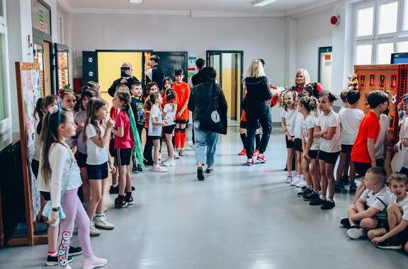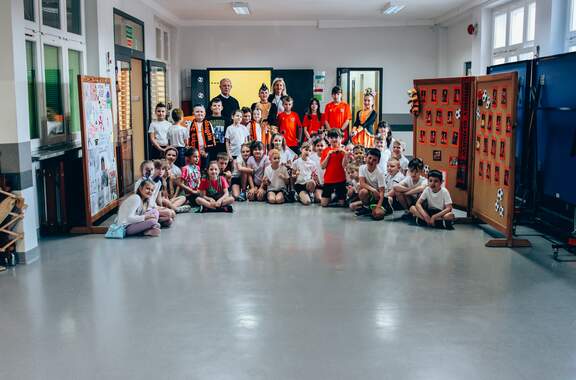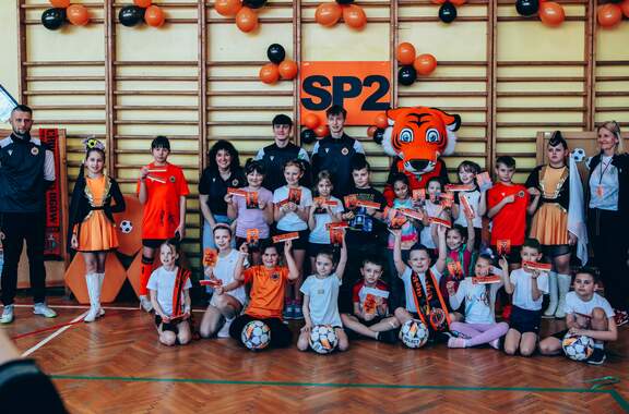 Świetne przyjęcie Chrobrego w "dwójce" Szkoła Podstawowa nr 2 w Głogowie przygotowała wyjątkowo ciepłe i pełne entuzjazmu powitanie dla Chrobrego. Pomarańczowo-czarne barwy w szkole reprezentowali trener Paweł Marszałek, klubowa maskotka oraz dwóch młodych piłkarzy – Wiktor Łaszyński i Fabian Wojtal. Zobaczcie zdjęcia z tego wydarzenia! 18-03-2026 11:54 autor: ŁJ