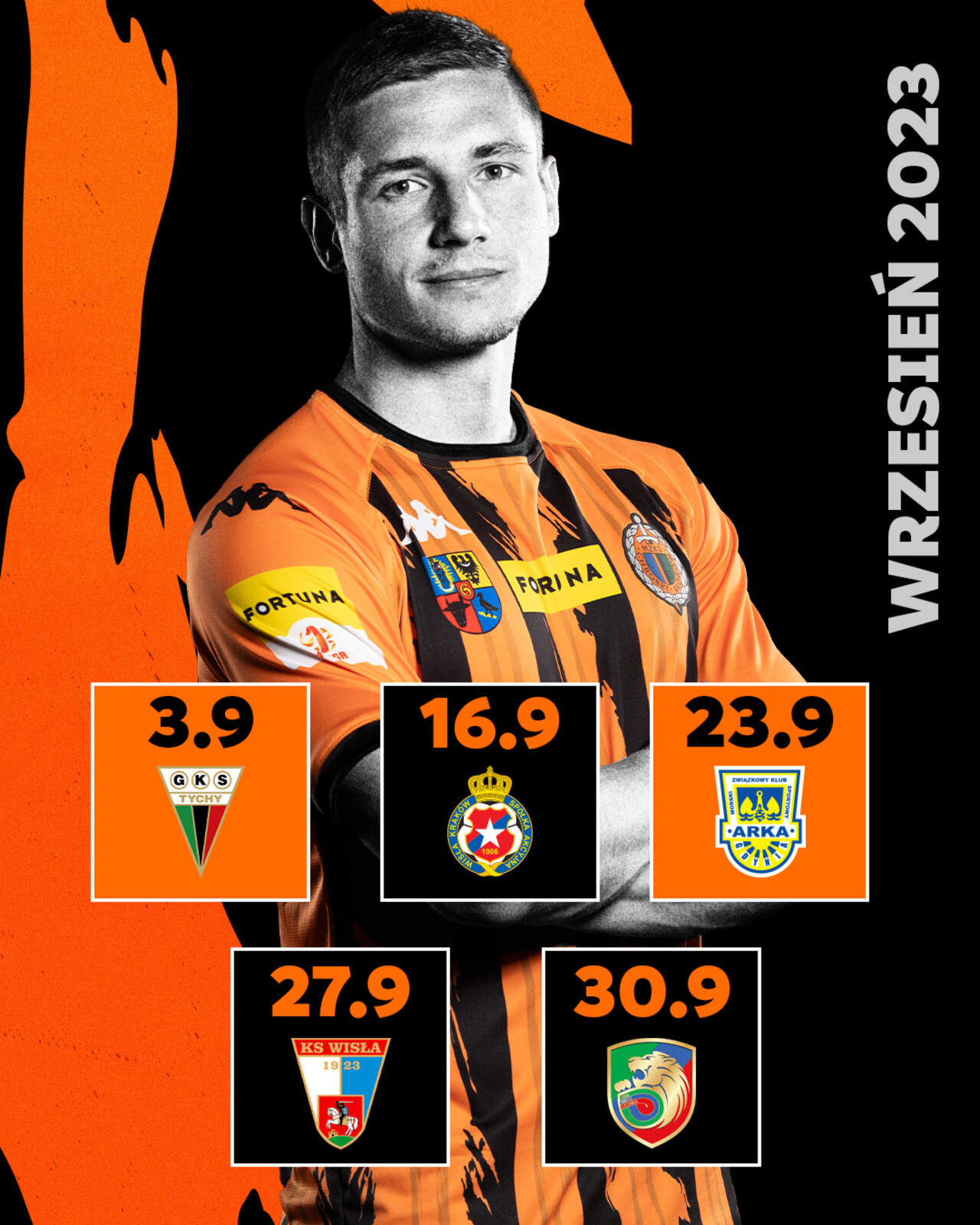 Wrzesień w Chrobrym Wyjazd do Krakowa oraz derby, ale też mecz Fortuna Pucharu Polski - wrzesień dla kibica Chrobrego zapowiada się bardzo ciekawie. 01-09-2023 08:30 autor: ŁJ Ten miesiąc zaczynamy w niedzielę przy Wita Stwosza. Tego dnia Chrobry o godz. 18.00 podejmie GKS Tychy, po czym nastąpi dwutygodniowa przerwa reprezentacyjna. Przypomnijmy, że w zgrupowaniu kadry U-19 weźmie udział Szymon Bartlewicz. Po jego powrocie i zakończeniu wszystkich spotkań narodowych, głogowian czeka wyjazdowy mecz z Wisłą Kraków, następnie domowy z Arką Gdynia i na sam koniec września dwa wyjazdy - do Puław na mecz I rundy Fortuna Pucharu Polski oraz do Legnicy na powracające po ponad rocznej przerwie derby z Miedzią. WRZESIEŃ W CHROBRYM: Fortuna 1 Liga - kolejka 7 03.09.2023 (ND), GODZ. 18.00: Chrobry Głogów - GKS Tychy (Głogów) Fortuna 1 Liga - kolejka 8 16.09.2023 (SB): GODZ. 17.30: Wisła Kraków - Chrobry Głogów (Kraków) Fortuna 1 Liga - kolejka 9 23.09.2023: Chrobry Głogów - Arka Gdynia (Głogów)* Fortuna Puchar Polski - I runda 27.09.2023: Wisła Puławy - Chrobry Głogów (Puławy)* Fortuna 1 Liga - kolejka 10 30.09.2023: Miedź Legnica - Chrobry Głogów (Legnica)* * szczegółowe terminy zostaną dopiero wyznaczone