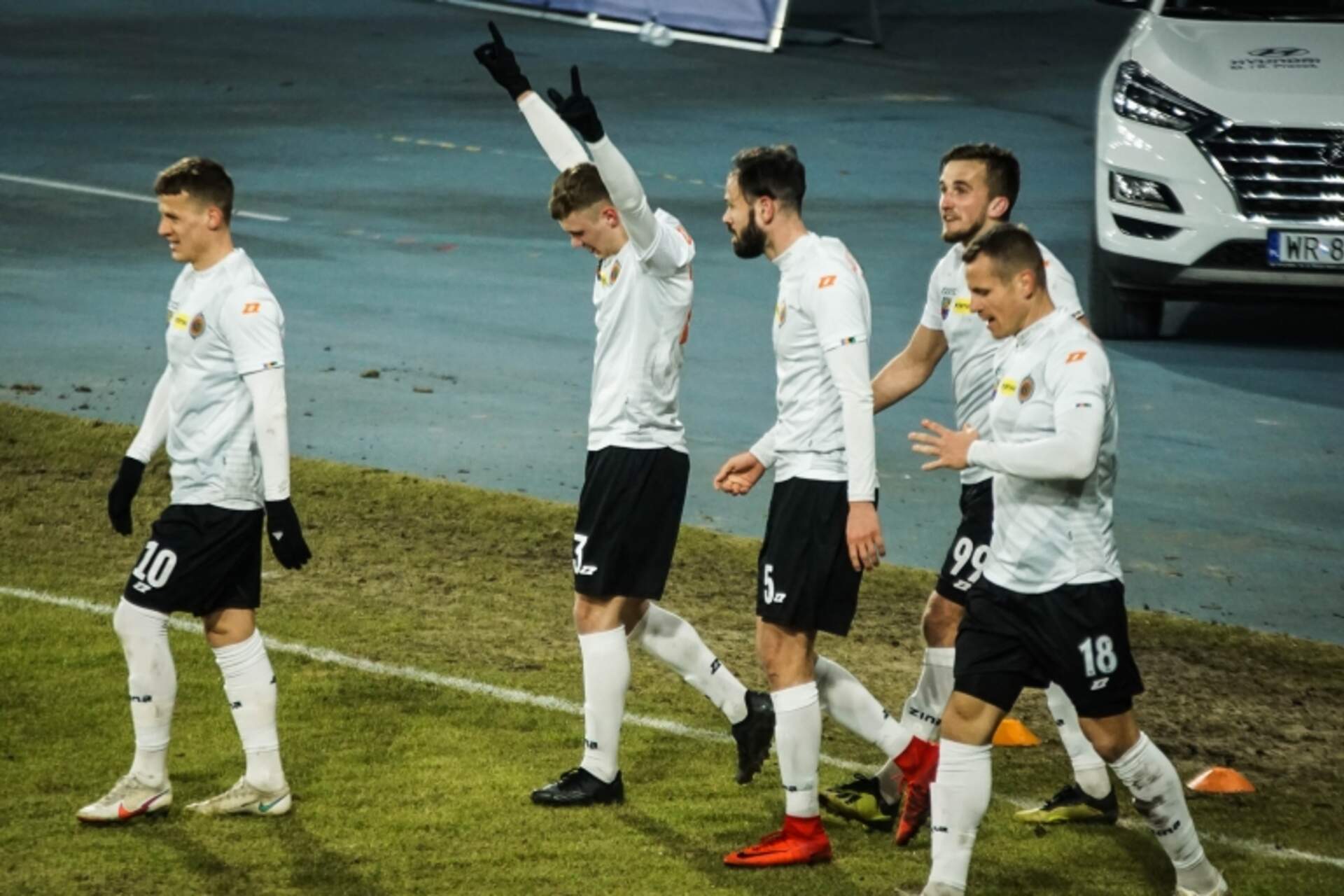 Z punktami nawet w dziesięciu. Chrobry wygrywa w Radomiu! Chrobry punktuje w piątym meczu z rzędu, tym razem przywożąc pełną pulę z Radomia, wygrywając z Radomiakiem 2:1. Nawet pomimo tego, że po raz drugi w tym roku kończy w dziesięciu.Chrobry zaczął z dwiema zmianami. W bramce… 06-03-2021 07:55 autor: ŁJ Chrobry punktuje w piątym meczu z rzędu, tym razem przywożąc pełną pulę z Radomia, wygrywając z Radomiakiem 2:1. Nawet pomimo tego, że po raz drugi w tym roku kończy w dziesięciu.Chrobry zaczął z dwiema zmianami. W bramce zadebiutował Rafał Leszczyński, a z przodu pauzującego za kartki Mikołaja Lebedyńskiego zastąpił Damian Kowalczyk. Trener Ivan Djurdjević nadal nie może skorzystać z Pawła Oleksego i Mateusza Machaja, ale za to do szerokiej kadry powrócił Oliver Praznovsky, który uporał się z kontuzją.Mecz zaczął się dla Chrobrego świetnie. W 5 minucie w akcję w obrębie pola karnego zamieszanych było kilku zawodników: Robert Mandrysz, Damian Piotrowski i Maks Banaszewski. Kończył ją strzałem zza szesnastki Robert Mandrysz i efektownie pokonał bramkarza Radomiaka.W 18 minucie Chrobry miał szansę na drugiego gola, ale po rzucie rożnym i wrzutce Maksymiliana Banaszewskiego, Tomasz Cywka posłał piłkę ponad bramką. W tej samej minucie po drugiej stronie boiska futbolówkę po główce Damiana Gąski pewnie chwycił Rafał Leszczyński. Po tym Pomarańczowo-Czarni grali bardziej cofnięci i skutecznie tonowali ofensywne zapędy gospodarzy. Nieliczne groźniejsze wyjścia do przodu miały miejsce w końcówce i zakończyły się 50/50. Pierwsze z urazem zakończył niestety Tomasz Cywka i w 43 minucie zmienił go Jaka Kolenc, za to z drugiego w 45 minucie wziął się gol na 0:2. Damian Piotrowski wypuścił na czystą pozycję Dominika Dziąbka, po czym 19-latek w swoim drugim występie zdobył bramkę i chyba sam nie dowierzał w tak piszącą się życiową historię, bo zakrył oczy. Po tym trafieniu Chrobry udał się na przerwę z przekonującym dwubramkowym prowadzeniem.W drugiej części miejscowi przycisnęli i próbowali odrobić straty. W 53 minucie Leandro niecelnie przymierzył z dystansu, lecz kolejne uderzenia Radomiaka były groźniejsze. W 62 minucie tuż obok bramki piłkę posłał Karol Angielski, a 60 sekund później Rafał Leszczyński odbił futbolówkę po strzale Dawida Abramowicza. Głogowianie skoncentrowali się na obronie wyniku, stąd wejście Olivera Praznovskyego w miejsce Damiana Piotrowskiego. Radomiak posiadał wyraźną przewagę, ale długo nie był w stanie sforsować głogowskiej defensywy. Zrobił to dopiero wtedy, gdy Chrobry grał w dziesięciu. W 84 minucie, w dziewięć po swoim wejściu i zastąpieniu Dominika Dziąbka, z powodu drugiej żółtej kartki boisko opuścił Dominik Piła. Dosłownie chwilę później Rafał Leszczyński świetnie wykazał się w sytuacji, którą miał Rok Sirk, lecz po kolejnej skapitulował. Po strzale Sirka uratował drużynę wybiciem na rzut rożny, jednak po dośrodkowaniu z narożnika zdołał wstrzelić się inny gracz Radomiaka Karol Angielski. W 85 minucie było już tylko 1:2 i zrobiło się naprawdę gorąco. Na szczęście na tym odczuciu się skończyło i potrafiący obronić rezultat Pomarańczowo-Czarni z Radomia wracają szczęśliwi.Przed Chrobrym teraz tydzień pracy przed czwartym z rzędu wyjazdowym spotkaniem. W niedzielę 14 marca o godz. 12.40 głogowian czeka pojedynek z Widzewem Łódź.fot. 400mm.pl