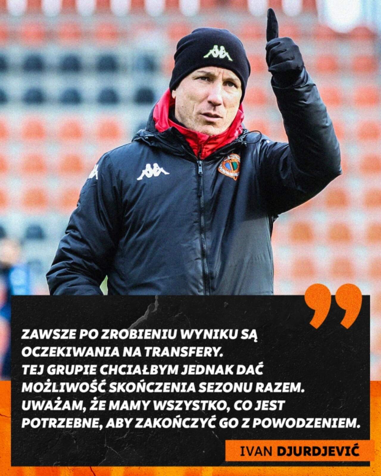 Zakończyć sezon razem. Trener o kadrze Wczoraj oficjalnie ogłaszaliśmy, że do zespołu na rundę wiosenną dołączy Toshiya Inoue. Jak mówi trener Ivan Djurdjević, pod względem zmian personalnych okres zimowy w Chrobrym będzie jednak bardzo spokojny i stawia się w nim… 19-01-2022 09:54 autor: ŁJ Wczoraj oficjalnie ogłaszaliśmy, że do zespołu na rundę wiosenną dołączy Toshiya Inoue. Jak mówi trener Ivan Djurdjević, pod względem zmian personalnych okres zimowy w Chrobrym będzie jednak bardzo spokojny i stawia się w nim na stabilizację. - Na ten moment uważam, że mamy wszystko, co jest potrzebne, aby zakończyć sezon z powodzeniem i dobrym wynikiem - powiedział szkoleniowiec Pomarańczowo-Czarnych.- Zawsze, gdy robi się wynik, są oczekiwania, aby się wzmacniać i dokonywać transfery. Tej grupie chciałbym jednak dać możliwość wspólnego trenowania i skończenia sezonu razem. Oby tylko nie spotkały nas jakieś przykre sytuacje wymuszające takie ruchy. Na ten moment uważam, że mamy wszystko, co jest potrzebne, aby zakończyć sezon z powodzeniem i dobrym wynikiem. Drużyna jest uformowana, a każdy jej członek zna nasze realia. Nowy zawodnik przychodziłby po jakichś przejściach, jakimś czasie bez grania i zanim doszedłby do formy, my ten sezon moglibyśmy skończyć. Obecnie 28 zawodników i bardziej chcemy zwrócić uwagę na naszą młodzież. Mamy Eryka, który pokazał się dobrze, Dominika z Maksymem, którzy zaistnieli i dalej chcielibyśmy iść w tym kierunku, aby znaleźć równowagę pomiędzy Akademią a naszą drużyną - mówi trener Djurdjević.W sobotę pierwszy sprawdzian kadry Chrobrego. O godz. 11.30 głogowianie zmierzą się sparingowo z Miedzią Legnica.