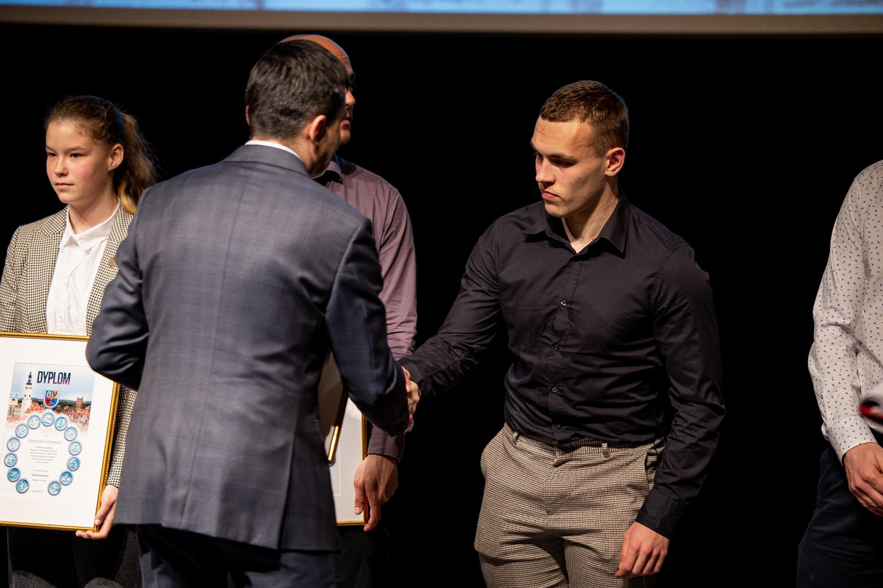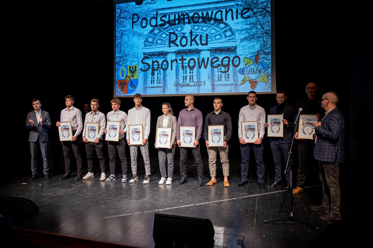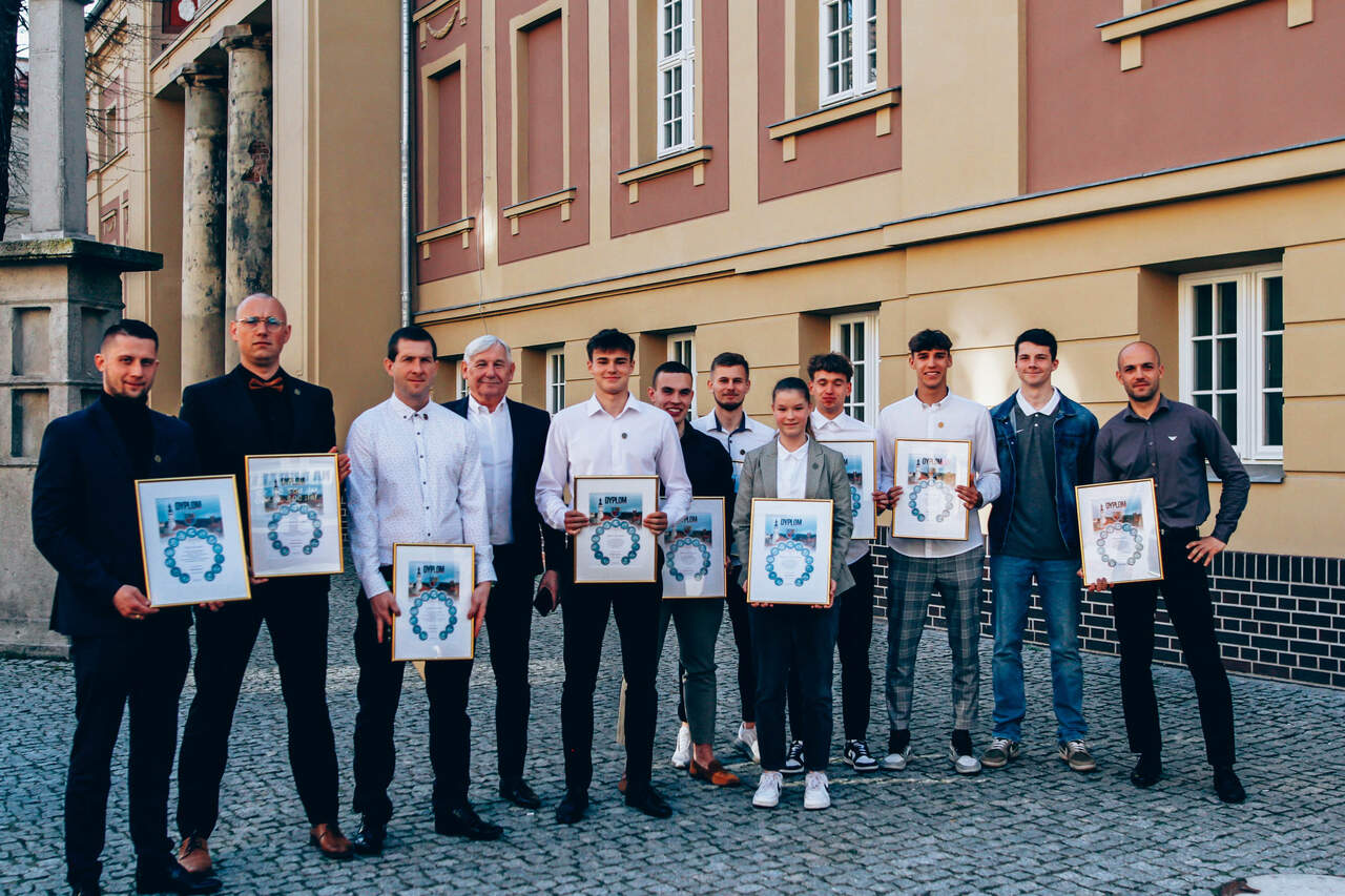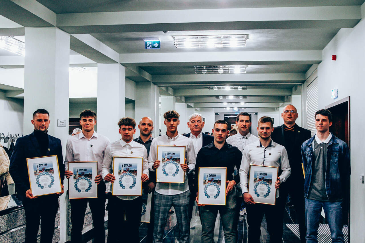 Zawodnicy i trenerzy Chrobrego nagrodzeni przez prezydenta Głogowa W czwartek w Teatrze im. Andreasa Gryphiusa w Głogowie odbyło się coroczne Podsumowanie Roku Sportowego. Prezydent Rafael Rokaszewicz uhonorował ponad 100 sportowców i trenerów, w tym przedstawicieli Chrobrego oraz klubowej Akademii Piłki Nożnej. 24-04-2023 01:25 autor: AM / ŁJ Chrobry Głogów - nagrodzeni zawodnicy 1. Albert Zarówny (2004) - środkowy obrońca. mistrzostwo 4 ligi, najwyższej ligi wojewódzkiej. Po raz pierwszy w historii awans z II zespołem Chrobrego Głogów do 3 ligi, poziom centralny. Obecnie w pierwszoligowej kadrze. Uczeń Szkoły Mistrzostwa Sportowego Chrobry Głogów. 2. Eryk Pieczarka (2004) - środkowy pomocnik, rozgrywający. mistrzostwo 4 ligi, najwyższej ligi wojewódzkiej. Po raz pierwszy w historii awans z II zespołem Chrobrego Głogów do 3 ligi, poziom centralny. Obecnie w pierwszoligowej kadrze. Uczeń Szkoły Mistrzostwa Sportowego Chrobry Głogów. 3. Miłosz Jóźwiak (2002) - skrzydłowy. mistrzostwo 4 ligi, najwyższej ligi wojewódzkiej. Po raz pierwszy w historii awans z II zespołem Chrobrego Głogów do 3 ligi, poziom centralny. Obecnie w pierwszoligowej kadrze. Ubiegłoroczny absolwent Szkoły Mistrzostwa Sportowego Chrobry Głogów. 4. Natan Malczuk (2003) - środkowy obrońca. mistrzostwo 4 ligi, najwyższej ligi wojewódzkiej. Po raz pierwszy w historii awans z II zespołem Chrobrego Głogów do 3 ligi, poziom centralny. Obecnie w pierwszoligowej kadrze. Ubiegłoroczny absolwent Szkoły Mistrzostwa Sportowego Chrobry Głogów. 5. Adrian Marciniak (2003) - środkowy napastnik. mistrzostwo 4 ligi, najwyższej ligi wojewódzkiej. Po raz pierwszy w historii awans z II zespołem Chrobrego Głogów do 3 ligi, poziom centralny. Ubiegłoroczny absolwent Szkoły Mistrzostwa Sportowego Chrobry Głogów. 6. Małgorzata Jankowiak (2009) - od 2020 roku bramkarka sekcji kobiet w drużynie młodziczek Chrobrego Głogów. W zeszłym roku 7-krotnie powoływana na konsultacje, obozy i zgrupowania kadry wojewódzkiej w kategorii wiekowej U15, uczennica Szkoły Podstawowej Nr 6 im. Tadeusza Kościuszki w Głogowie. 7. Michał Michalec (1987) - zawodnik Chrobrego Głogów nieprzerwanie od 2010 r. W tym czasie wraz z drużyną dokonał dwóch awansów z 3 do 1 Ligi a w poprzednim roku był kapitanem składu, który grał w barażach o Ekstraklasę, co jest obecnie historycznym osiągnięciem klubu. W zeszłym roku 24 października zagrał swój 300 mecz w pomarańczowo-czarnych barwach (na wyjeździe ze Skrą Częstochowa), cały czas występuje w podstawowym składzie i do dzisiaj zagrał już w 311 meczach co jest ewenementem w skali całej polskiej piłki nożnej. Chrobry Głogów – nagrodzeni trenerzy: 1. Sebastian Górski - od 8 lat trener Chrobrego wcześniej w grupach dziecięcych i młodzieżowych, a od lipca 2021 roku trener II Zespołu Chrobrego Głogów (rezerwy). W ubiegłym roku wraz ze swoją młodzieżową drużyną awansował z 4 do 3 Ligi, a niektórych zawodników prowadzi od początku swojej pracy trenerskiej w ChG. Obecnie II Zespoł ChG jest najmłodszą drużyna na swoim szczeblu rozgrywkowym a zawodnicy, którzy się w niej wyróżniają zasilają szeregi 1 Zespołu 2. Paweł Marszałek - trener dziecięcych grup Akademii Piłki Nożnej Chrobrego Głogów z rocznika 2016 (kat. skarzaty); zaangażowany w akcje społeczne i promujące Chrobrego i APN, jeden z inicjatorów zeszłorocznego Minimundialu - pierwszego ogólnomiejskiego turnieju dla głogowskich przedszkolaków. Co najmniej raz w miesiącu wraz z działem marketingu i tygryskiem odwiedza dzieci w ich przedszkolach promując sportowy styl życia i lokalny patriotyzm. 3. Grzegorz Nowak - trener drużyny z rocznika 2004/2005 (U18) w zeszłym roku zajął 1 miejsce i awansował ze swoją drużyną z Ligi Wojewódzkiej do Ligi Makroregionalnej obejmującej 4 województwa (dolnośląskie, opolskie, śląskie, lubuskie). Ponadto pełni funkcję trenera koordynatora programu rozwoju młodzieży i odpowiada za codzienne prowadzenie działalności i techniczne aspekty funkcjonowania zespołów młodzieżowych, a także jest współodpowiedzialny za utrzymanie certyfikatu jakości PZPN - tzw. złotej gwiazdki, czyli najwyższych standardów piłkarskiego szkolenia dzieci i młodzieży w Akademii Piłki Nożnej, które Chrobry spełnia odkąd PZPN realizuje projekt certyfikacji, czyli od 2 lat.