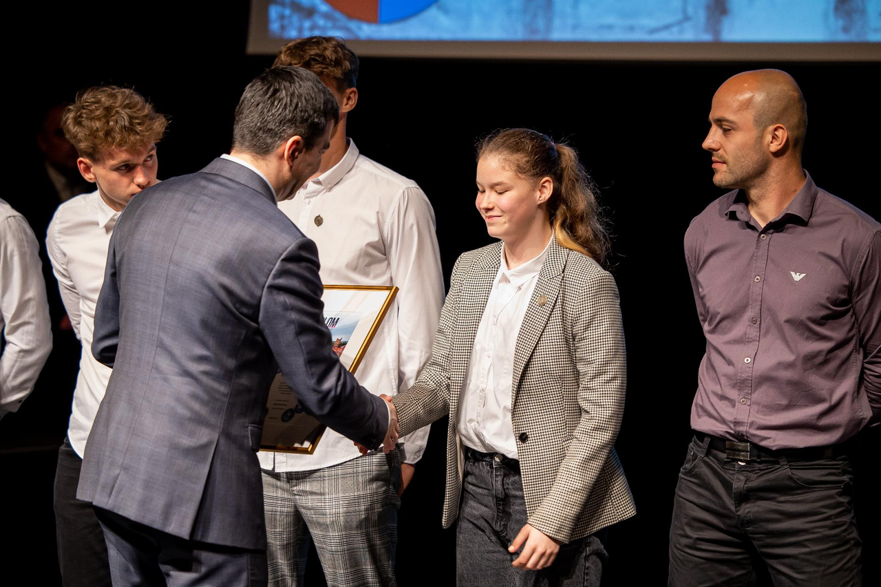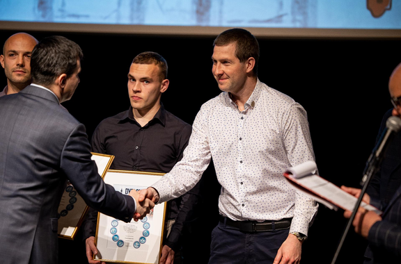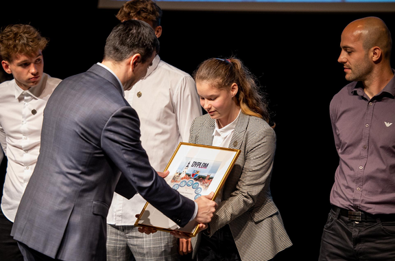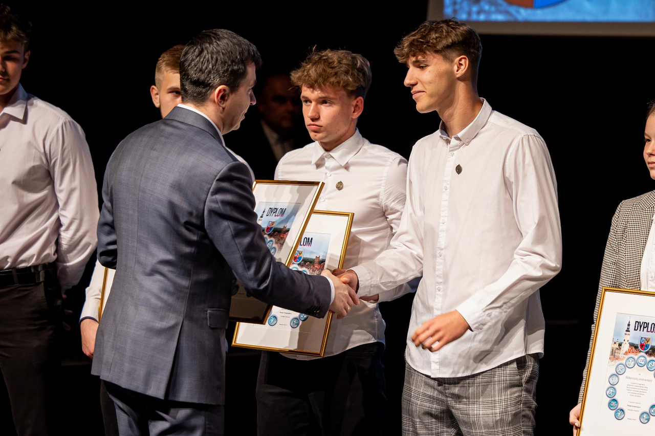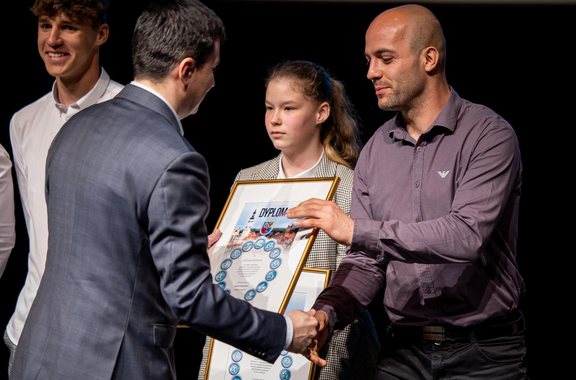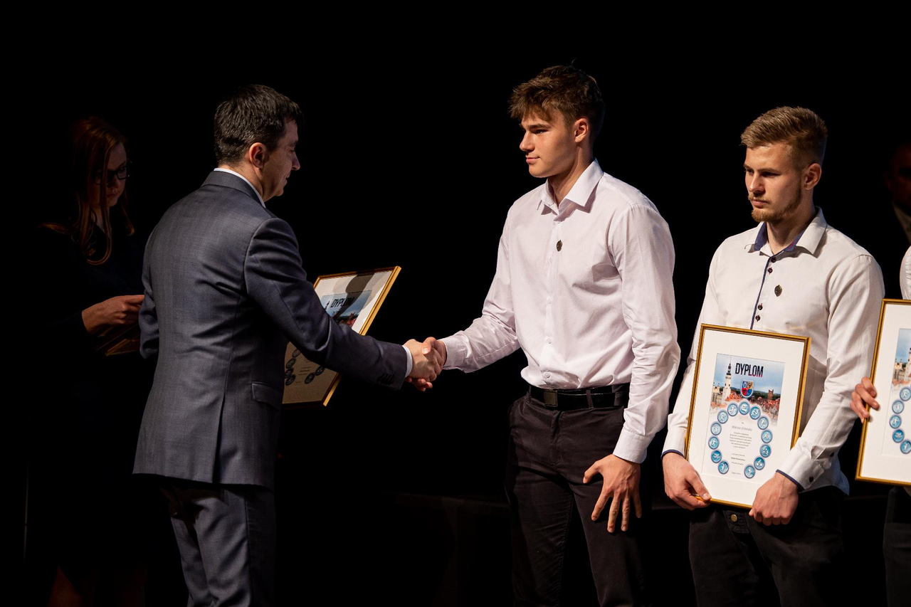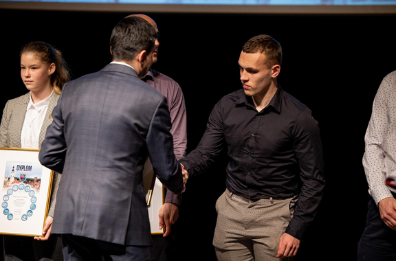 Zawodnicy i trenerzy Chrobrego nagrodzeni przez prezydenta Głogowa W czwartek w Teatrze im. Andreasa Gryphiusa w Głogowie odbyło się coroczne Podsumowanie Roku Sportowego. Prezydent Rafael Rokaszewicz uhonorował ponad 100 sportowców i trenerów, w tym przedstawicieli Chrobrego oraz klubowej Akademii Piłki Nożnej. 24-04-2023 01:25 autor: AM / ŁJ Chrobry Głogów - nagrodzeni zawodnicy 1. Albert Zarówny (2004) - środkowy obrońca. mistrzostwo 4 ligi, najwyższej ligi wojewódzkiej. Po raz pierwszy w historii awans z II zespołem Chrobrego Głogów do 3 ligi, poziom centralny. Obecnie w pierwszoligowej kadrze. Uczeń Szkoły Mistrzostwa Sportowego Chrobry Głogów. 2. Eryk Pieczarka (2004) - środkowy pomocnik, rozgrywający. mistrzostwo 4 ligi, najwyższej ligi wojewódzkiej. Po raz pierwszy w historii awans z II zespołem Chrobrego Głogów do 3 ligi, poziom centralny. Obecnie w pierwszoligowej kadrze. Uczeń Szkoły Mistrzostwa Sportowego Chrobry Głogów. 3. Miłosz Jóźwiak (2002) - skrzydłowy. mistrzostwo 4 ligi, najwyższej ligi wojewódzkiej. Po raz pierwszy w historii awans z II zespołem Chrobrego Głogów do 3 ligi, poziom centralny. Obecnie w pierwszoligowej kadrze. Ubiegłoroczny absolwent Szkoły Mistrzostwa Sportowego Chrobry Głogów. 4. Natan Malczuk (2003) - środkowy obrońca. mistrzostwo 4 ligi, najwyższej ligi wojewódzkiej. Po raz pierwszy w historii awans z II zespołem Chrobrego Głogów do 3 ligi, poziom centralny. Obecnie w pierwszoligowej kadrze. Ubiegłoroczny absolwent Szkoły Mistrzostwa Sportowego Chrobry Głogów. 5. Adrian Marciniak (2003) - środkowy napastnik. mistrzostwo 4 ligi, najwyższej ligi wojewódzkiej. Po raz pierwszy w historii awans z II zespołem Chrobrego Głogów do 3 ligi, poziom centralny. Ubiegłoroczny absolwent Szkoły Mistrzostwa Sportowego Chrobry Głogów. 6. Małgorzata Jankowiak (2009) - od 2020 roku bramkarka sekcji kobiet w drużynie młodziczek Chrobrego Głogów. W zeszłym roku 7-krotnie powoływana na konsultacje, obozy i zgrupowania kadry wojewódzkiej w kategorii wiekowej U15, uczennica Szkoły Podstawowej Nr 6 im. Tadeusza Kościuszki w Głogowie. 7. Michał Michalec (1987) - zawodnik Chrobrego Głogów nieprzerwanie od 2010 r. W tym czasie wraz z drużyną dokonał dwóch awansów z 3 do 1 Ligi a w poprzednim roku był kapitanem składu, który grał w barażach o Ekstraklasę, co jest obecnie historycznym osiągnięciem klubu. W zeszłym roku 24 października zagrał swój 300 mecz w pomarańczowo-czarnych barwach (na wyjeździe ze Skrą Częstochowa), cały czas występuje w podstawowym składzie i do dzisiaj zagrał już w 311 meczach co jest ewenementem w skali całej polskiej piłki nożnej. Chrobry Głogów – nagrodzeni trenerzy: 1. Sebastian Górski - od 8 lat trener Chrobrego wcześniej w grupach dziecięcych i młodzieżowych, a od lipca 2021 roku trener II Zespołu Chrobrego Głogów (rezerwy). W ubiegłym roku wraz ze swoją młodzieżową drużyną awansował z 4 do 3 Ligi, a niektórych zawodników prowadzi od początku swojej pracy trenerskiej w ChG. Obecnie II Zespoł ChG jest najmłodszą drużyna na swoim szczeblu rozgrywkowym a zawodnicy, którzy się w niej wyróżniają zasilają szeregi 1 Zespołu 2. Paweł Marszałek - trener dziecięcych grup Akademii Piłki Nożnej Chrobrego Głogów z rocznika 2016 (kat. skarzaty); zaangażowany w akcje społeczne i promujące Chrobrego i APN, jeden z inicjatorów zeszłorocznego Minimundialu - pierwszego ogólnomiejskiego turnieju dla głogowskich przedszkolaków. Co najmniej raz w miesiącu wraz z działem marketingu i tygryskiem odwiedza dzieci w ich przedszkolach promując sportowy styl życia i lokalny patriotyzm. 3. Grzegorz Nowak - trener drużyny z rocznika 2004/2005 (U18) w zeszłym roku zajął 1 miejsce i awansował ze swoją drużyną z Ligi Wojewódzkiej do Ligi Makroregionalnej obejmującej 4 województwa (dolnośląskie, opolskie, śląskie, lubuskie). Ponadto pełni funkcję trenera koordynatora programu rozwoju młodzieży i odpowiada za codzienne prowadzenie działalności i techniczne aspekty funkcjonowania zespołów młodzieżowych, a także jest współodpowiedzialny za utrzymanie certyfikatu jakości PZPN - tzw. złotej gwiazdki, czyli najwyższych standardów piłkarskiego szkolenia dzieci i młodzieży w Akademii Piłki Nożnej, które Chrobry spełnia odkąd PZPN realizuje projekt certyfikacji, czyli od 2 lat.