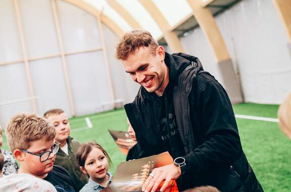 Miłych gości mieliśmy we wtorek na stadionie. Spotkaliśmy się z uczniami szkół podstawowych w Sławie i Buczynie, a wszystkie grupy przywitali klubowa maskotka, trener Akademii Adrian Marciniak oraz piłkarze Chrobrego: Robert Mandrysz, Paweł Tupaj i Myroslav Mazur.