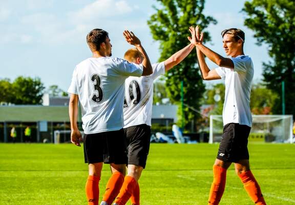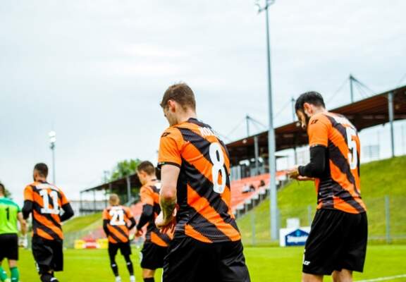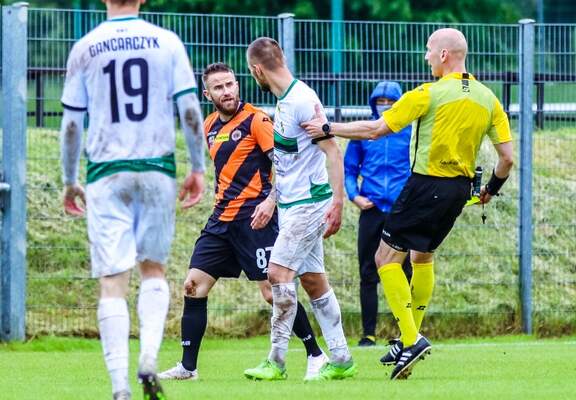 Druga drużyna Chrobrego Głogów gromi w 30 kolejce Koleje Dolnośląskie 4 Ligi. Pomarańczowo-C...