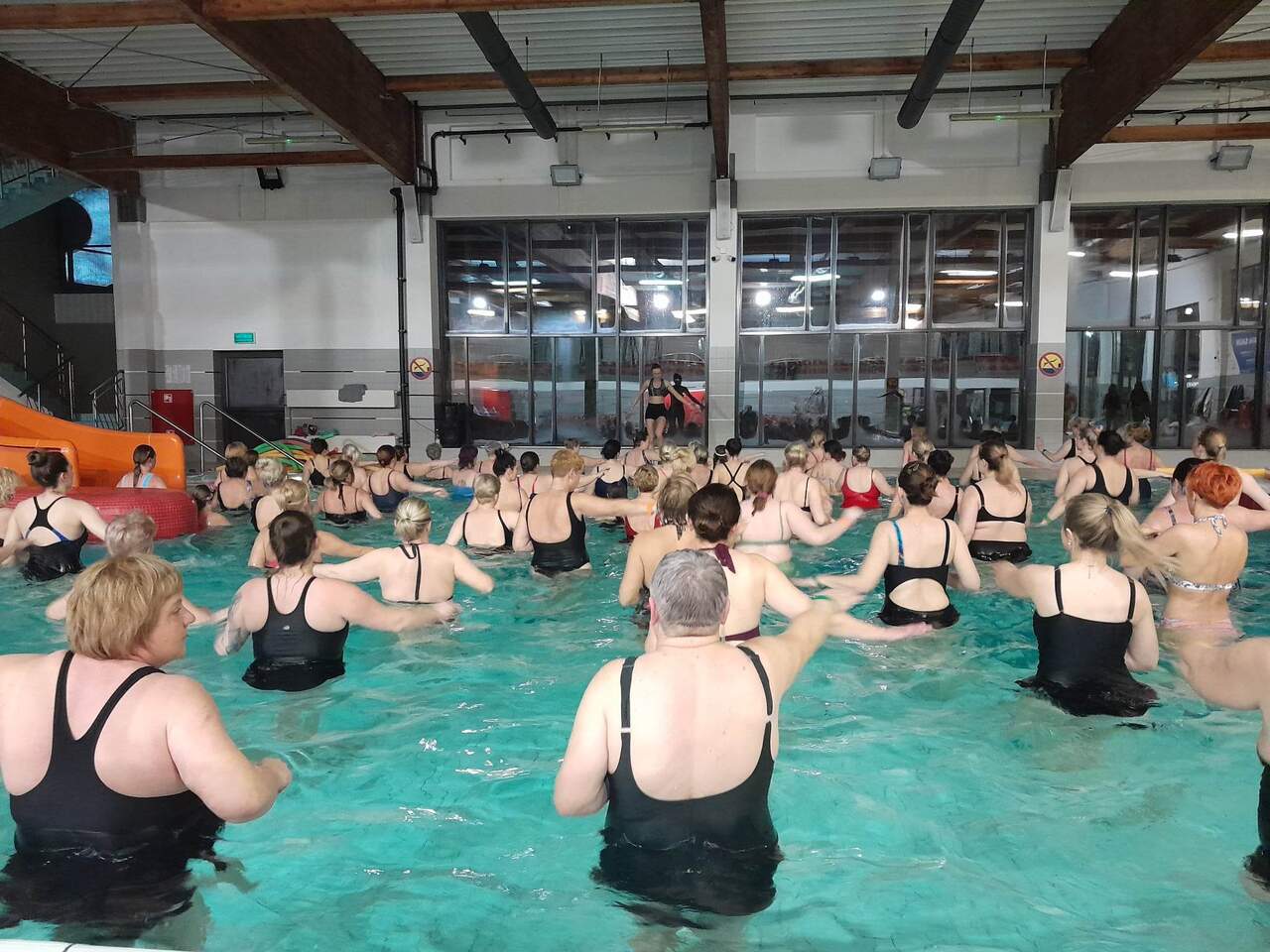 Mimo ścisku ćwiczące osoby były zadowolone z powrotu na zajęcia aqua aerobiku.