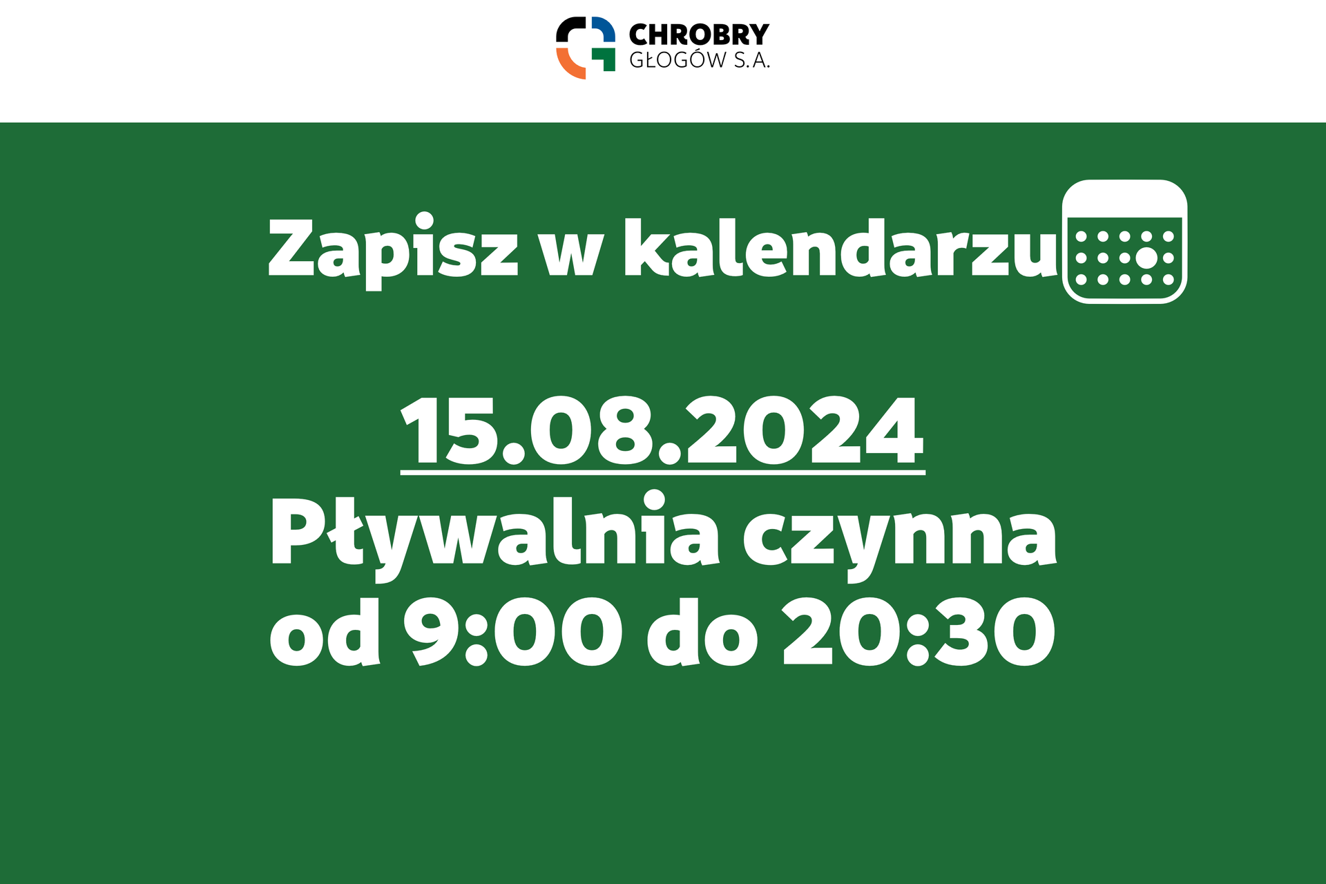 Godziny otwarcia Pływalni Chrobry Głogów