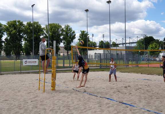 Na boisku do siatkówki plażowej w kompleksie Basenów Zewnętrznych SPS Chrobry Głogów ze wspa...