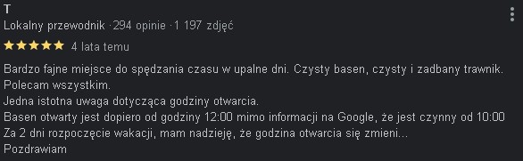 Na początku sezonu, w czerwcu, gdy noce są jeszcze zimne, system podgrzewania wody czasami nie daje rady i pływaniu jest bliżej do morsowania.