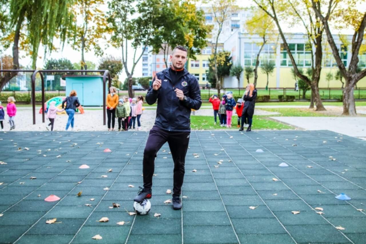 Aktywny poranek. Trening z przedszkolakami W środę z rana na zaproszenie pani wicedyrektor Agnieszki Masny i dzieci odwiedziliśmy Przedszkole Publiczne nr 9 na osiedlu Kopernik. Do aktywności sportowej zachęcali trener jednej z najmłodszych grup Akademii Piłki Nożnej Paweł… 20-10-2021 12:19 autor: ŁJ W środę z rana na zaproszenie pani wicedyrektor Agnieszki Masny i dzieci odwiedziliśmy Przedszkole Publiczne nr 9 na osiedlu Kopernik. Do aktywności sportowej zachęcali trener jednej z najmłodszych grup Akademii Piłki Nożnej Paweł Marszałek wraz z piłkarzami pierwszej drużyny: Tomaszem Cywką, Bartkiem Szaferem i Jakubem Michalczykiem. Zobaczcie zdjęcia z tej udanej wizyty.