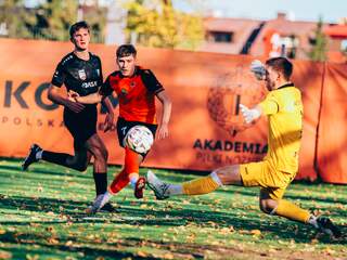ChG II: dotrzymują kroku Drugi zespół dotrzymuje kroku pierwszemu, wygrywa z AKS-em Strzegom 3:0 i odnosi trzecie zwycięstwo z rzędu. 19-10-2025 05:12 autor: ŁJ Prowadzenie dał swojej drużynie Fabian Wojtal, który wygrał w 19. minucie pojedynek z bramkarzem. Taki wynik utrzymał się do przerwy, ale po niej głogowianie dokumentowali swoją przewagę kolejnymi trafieniami. Tuż po wyjściu z szatni, w 47. minucie, do bramki przeciwnika piłkę skierował Sebastian Francus. Wynik ustalił w 87. minucie Albert Zarówny. CHROBRY II GŁOGÓW - AKS STRZEGOM 3:0 (1:0) 1:0 Wojtal 19 2:0 Francus 47 3:0 Zarówny 87 CHROBRY II: Lenarcik - Janik, Zarówny, Tworzydło K., Wojtal (46 Manijak), Francus, Szulc (71 Szczęsny), Antkowiak (85 Simkov), Szarek (88 Rosa), Malczuk, Machaj (71 Cichy). ŻÓŁTE KARTKI (CHROBRY II): Zarówny, Szulc.