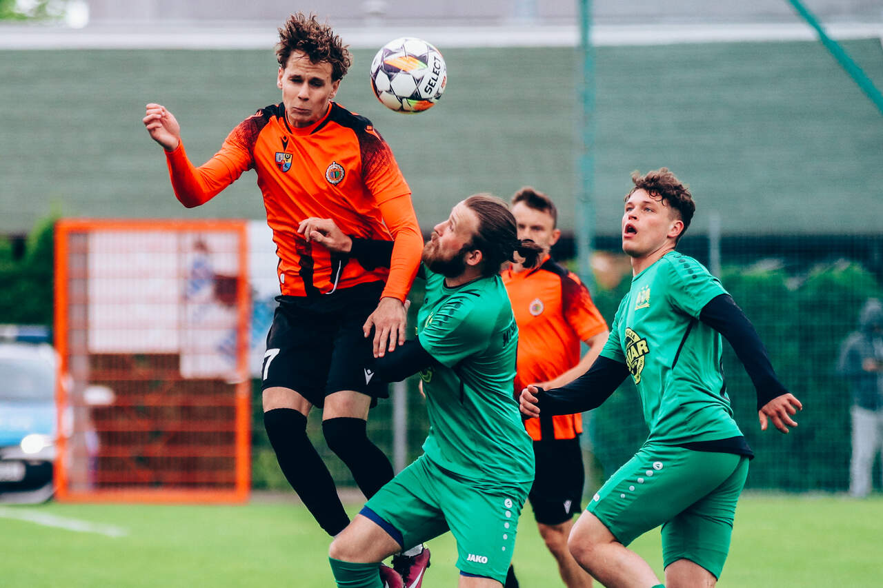 Chrobry II Głogów - Orzeł Mysłakowice 1:1 Bramka Piotra Bilińskiego i remis Chrobrego II Głogów z Orłem Mysłakowice w 28 kolejce Kolei Dolnośląskich 4 Ligi. 04-05-2025 01:25 autor: ŁJ W tym meczu na bramki należało poczekać do drugiej połowy. W pierwszej szanse były po obu stronach, ale do przerwy wynik nie uległ zmianie. Po niej jako pierwsi swoją sytuację wykorzystali przyjezdni, a w 60 minucie na listę strzelców wpisał się Igor Rajca. Odpowiedź głogowian była jednak szybka. W 64 minucie do wyrównania doprowadził Piotr Biliński, który chwilę wcześniej dopiero zameldował się na boisku. Jak się okazało, gol Bilińskiego zapewnił Chrobremu punkt, bo do ostatniego gwizdka żadna z drużyn nie zdołała przechylić szali na swoją korzyść. O to mocno starali się Pomarańczowo-Czarni, wyraźnie przyciskając w końcówce. Po jednej z najlepszych okazji i strzale Ziemowita Witczaka piłka odbiła się od słupka. Remis z Orłem to dla Chrobrego czwarty mecz z rzędu bez porażki. CHROBRY II GŁOGÓW - ORZEŁ MYSŁAKOWICE 1:1 (0:0) 0:1 Rajca 60 1:1 Biliński 64 CHROBRY II: Gawłowski – Janik, Buszewski (70 Kistowski), Gaweł (70 Rosa), Tworzydło A. (83 Żmudziński), Francus, Tworzydło K., Bartecki, Hajłasz (61 Biliński), Witczak, Machaj.