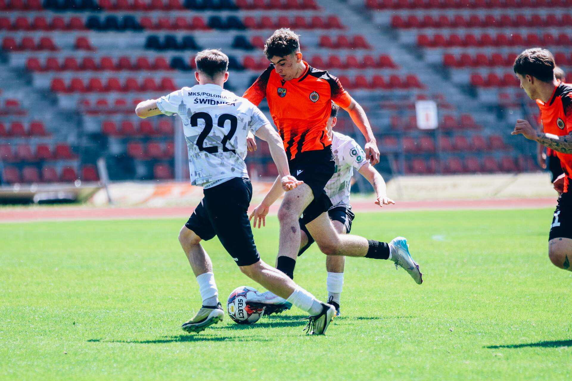 ChG II: punkt po golu w doliczonym czasie Remisem 3:3 kończy się mecz drugiej drużyny z Polonią-Stalą Świdnica w Koleje Dolnośląskie 4 Lidze. Punkt zapewnił bramką w 90 minucie Adrian Tworzydło. 25-05-2025 12:45 autor: ŁJ Po pierwszej połowie wynik był niespodziewany, bo goście zeszli do szatni z dwubramkową przewagą. Chrobry jednak sprawnie odrobił straty po zmianie stron. Bramkami zdobytymi w 56 i 74 minucie do remisu doprowadził najskuteczniejszy w Chrobrym Tomasz Wojciechowski. Dużo działo się w końcówce. W 88 minucie świdniczanie wykorzystali podyktowany za faul rzut karny, a Marcela Gawłowskiego pokonał Wojciech Sowa. Głogowianie mimo takiego obrotu sprawy powalczyli do końca i już w 90 minucie punkt zapewnił Adrian Tworzydło. CHROBRY II GŁOGÓW – POLONIA-STAL ŚWIDNICA 3:3 (0:2) 0:1 Sowa 35 0:2 Wojciechowski A. 45 1:2 Wojciechowski T. 56 2:2 Wojciechowski T. 74 2:3 Sowa 88 (k) 3:3 Tworzydło A. 90 CHROBRY II: Gawłowski – Janik, Gaweł (46 Kistowski (87 Fogt)), Tworzydło K. (69 Hajłasz), Wojciechowski, Francus (86 Dajnowski), Antkowiak (73 Avtandil), Bartecki (54 Biliński), Cichy (46 Tworzydło A.), Rosa (74 Ignasiak), Witczak. ŻÓŁTE KARTKI (CHROBRY II): Bartecki, Biliński, Avtandil.