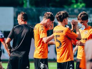 Chrobry II Głogów odrabia i wygrywa Chrobry II odrobił straty i w meczu 33 kolejki Koleje Dolnośląskie 4 Ligi pokonał Iskrę Księginice 4:2. 08-06-2024 07:20 autor: ŁJ Pomarańczowo-Czarni w tym spotkaniu dwukrotnie przegrywali, najpierw 0:1, a później 1:2. Taki wynik był już po pierwszej połowie, a wszystkie gole zdobyli… goście. Trafienie dla Chrobrego było samobójczym ze strony rywala, choć po dobrej wrzutce z rzutu wolnego w wykonaniu Tomasza Wojciechowskiego. Po zmianie stron Chrobry wziął się za odrabianie strat na poważnie, w czym pomogły zmiany. W przerwie do gry wprowadzono Piotra Bilińskiego, który bramką w 58 minucie dał remis. W 74 minucie, 180 sekund po swoim wejściu, trafił Wiktor Bogdanów, a w doliczonym czasie gry rezultat ustalił bramką z dystansu wykorzystujący w ten sposób wyjście bramkarza Jakub Malec, który z kolei na murawie przebywał od 60 minuty. W tym sezonie jeszcze jeden mecz, ale już na wyjeździe. 15 czerwca spotkanie z KS-em Łomnica. CHROBRY II GŁOGÓW - ISKRA KSIĘGINICE 4:2 (1:2) 0:1 Konefał 21 min. 1:1 Czerwiński 32 min. (sam.) 1:2 Srebrniak 37 min. 2:2 Biliński 58 min. 3:2 Bogdanów 74 min. 4:2 Malec 90 min. CHROBRY II: Gawłowski - Bartecki (60 Malec), Maćkowiak, Antkowiak (46 Zygmunt), Wojciechowski, Grzelak, Janiszewski, Taira (46 Biliński), Wojtal (82 Krawiec), Antosik (71 Bogdanów), Witczak.