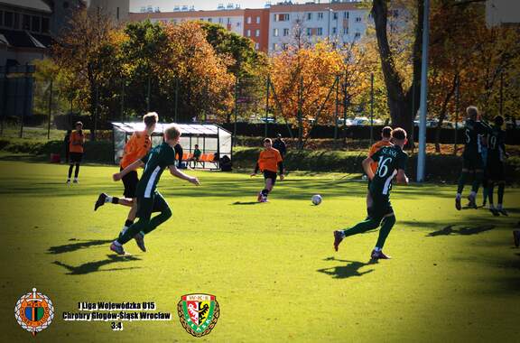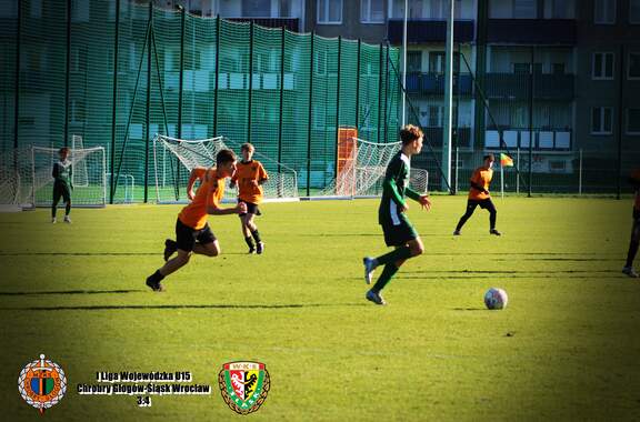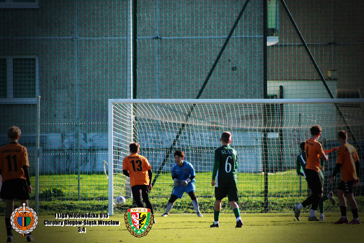Mecz w I Wojewódzkiej Lidze Trampkarzy Chrobry U-15 Głogów – Śląsk Wrocław na zdjęciach od Arkadiusza Rajczyka.