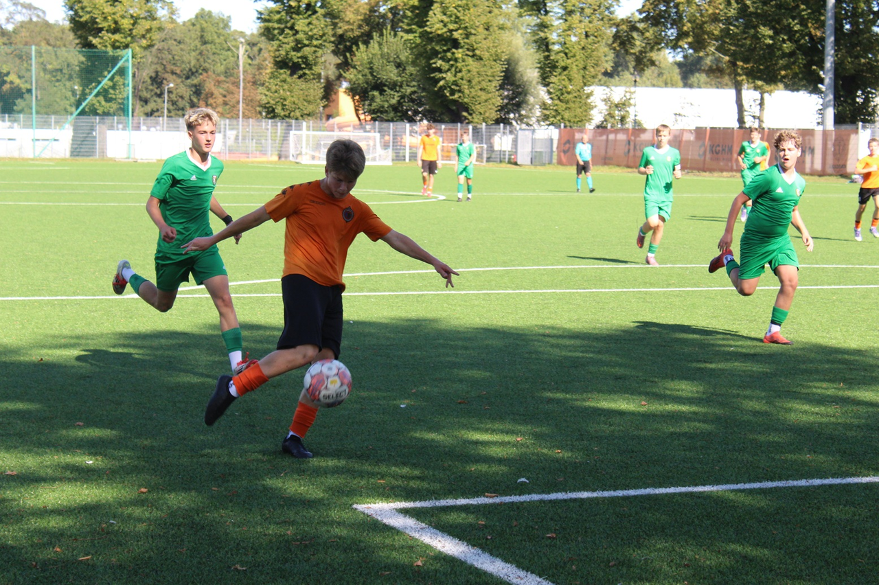 Chrobry U-15 wygrywa ze Śląskiem Piłkarze trenerów Łukasza Stepokury i Konrada Janczaka idą jak burza! W miniony weekend pokonali w Głogowie WKS Śląsk Wrocław w I Lidze Wojewódzkiej Trampkarzy. Strzelecki popis Szymona Rajczyka. 23-09-2025 08:45 autor: TO I Liga Wojewódzka C1 Trampkarz: Chrobry Głogów 10-2 WKS Śląsk Wrocław. Bramki dla Chrobrego: 5x Szymon Rajczyk, 2x Piotr Pawlicki, Adam Bis, Bartosz Jurcewicz, Kacper Szłapak. Foto: p. Arkadiusz Rajczyk