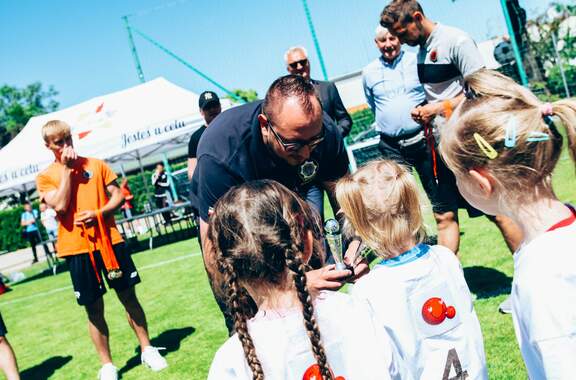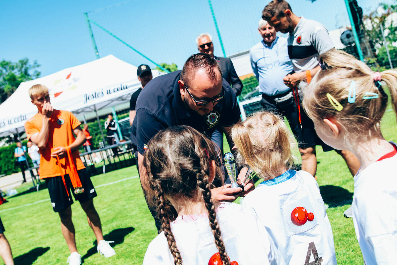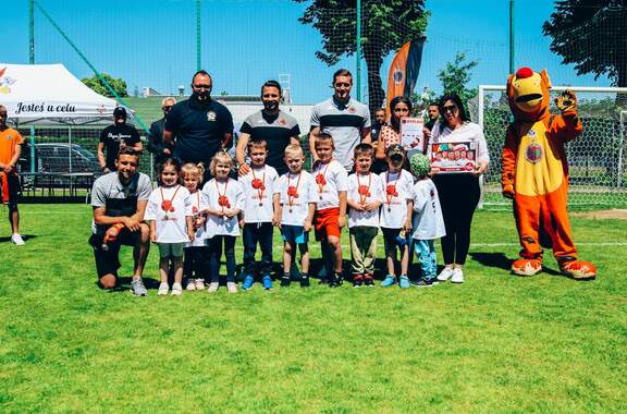 Prawie 200 przedszkolaków grało w naszym Głogowskim Minimundialu Niemal 200 przedszkolaków gościliśmy we wtorek na naszych obiektach. Za nami II Głogowski Minimundial, czyli turniej Chrobrego Głogów dla przedszkoli. 31-05-2023 04:03 autor: ŁJ Do rywalizacji, a może bardziej piłkarskiej zabawy – bo wygrali wszyscy i wszyscy zostali w taki sam sposób nagrodzeni - przystąpiło 16 przedszkoli z Głogowa i okolic. Wszystkim bardzo dziękujemy za udział: Przedszkole nr 10 Przedszkole nr 5 Przedszkole nr 1 Przedszkole nr 20 Przedszkole nr 5 Przedszkole nr 17 Przedszkole nr 21 Przedszkole nr 15 Przedszkole Poziomka Przedszkole Słoneczko Przedszkole Akademia Pana Kleksa Przedszkole Jarzębinki Przedszkole nr 19 Przedszkole Ocean Edukacji Rybka Przedszkole z Przedmościa Przedszkole Kubuś Puchatek Przedszkolaki za grę w Minimundialu otrzymały pamiątkowe medale, a placówki, które reprezentowały, puchary, dyplomy i sportowe akcesoria. Wręczali je m.in. fundatorzy, Marek Wolanin - właściciel firmy Elpro oraz Piotr Juskowiak z Międzynarodowego Stowarzyszenia Policjantów Sekcja Polska Region Głogów. Fundatorem nagród było też Stowarzyszenie Emerytów I Rencistów KGHM Polska Miedź S.A., a organizację turnieju wspomogła także Gmina Miejska Głogów, na której wsparcie zawsze możemy liczyć. Poza tym trenerzy Akademii w najmłodszych rocznikach obserwowali grające dzieci i te wyróżniające się pod względem sportowym zaprosili do podjęcia treningów w Chrobrym, wręczając voucher na miesiąc bezpłatnych zajęć.