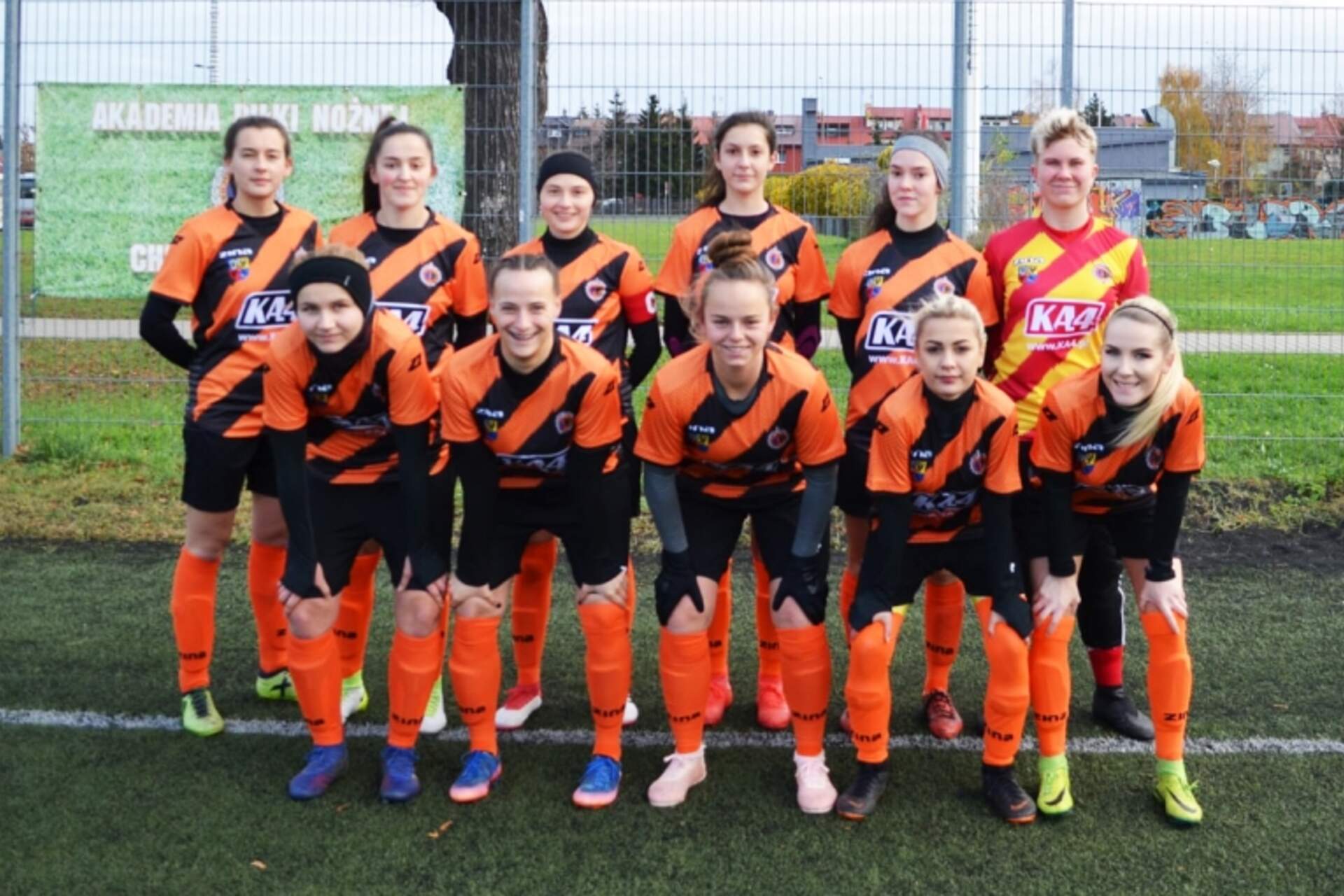 KOBIETY: zwycięski koniec rundy Kobiecy zespół Chrobrego zadebiutował w nowych strojach meczowych, dokładnie takich, w jakich oglądamy pierwszoligowców, i na zakończenie rundy jesiennej w 4 Lidze pokonał UKS Bierutów 1:0.Zwycięskiego gola w spotkaniu z UKS-em… 24-11-2020 09:38 autor: ŁJ Kobiecy zespół Chrobrego zadebiutował w nowych strojach meczowych, dokładnie takich, w jakich oglądamy pierwszoligowców, i na zakończenie rundy jesiennej w 4 Lidze pokonał UKS Bierutów 1:0.Zwycięskiego gola w spotkaniu z UKS-em zdobyła Małgorzata Momot. Dzięki temu Pomarańczowo-Czarne skończą rundę na przynajmniej drugim miejscu (obecnie są drugie, ale do rozegrania pozostał jeszcze inny mecz, którego wynik będzie miał wpływ na kształt tabeli na górze).Nowe stroje, w których głogowianki zainkasowały komplet punktów, zostały ufundowane przez firmę KA 4. Chrobry Głogów - UKS Bierutów 1:0Bramki (Chrobry): Małgorzata Momot.Chrobry: Surlas - Czapluk, Rymarowicz, Król, Rimke, Leszczyńska, Momot, Kudyba, Kaźmierska, Niedośpiał (Frankowska), Gniewosz.