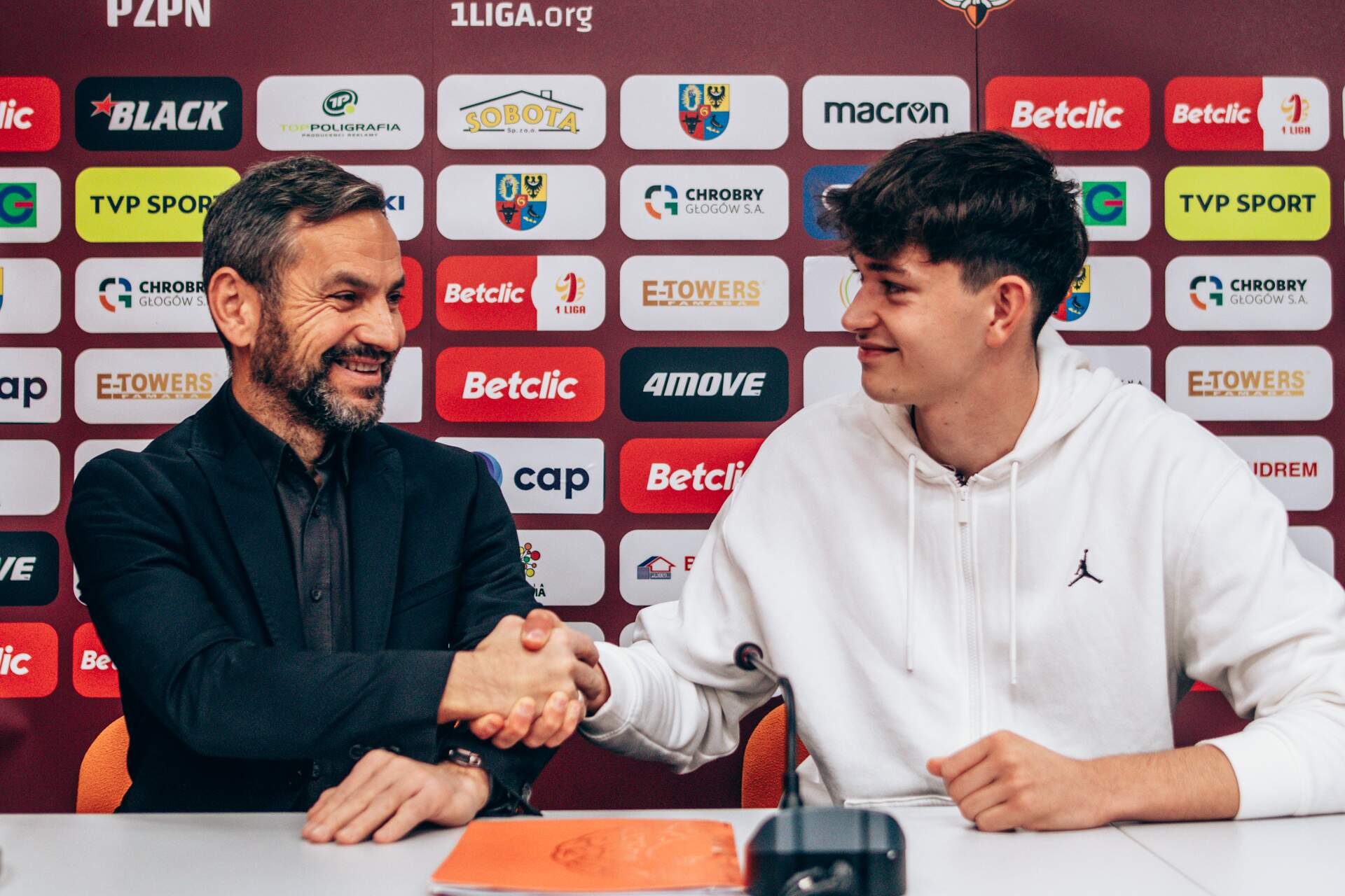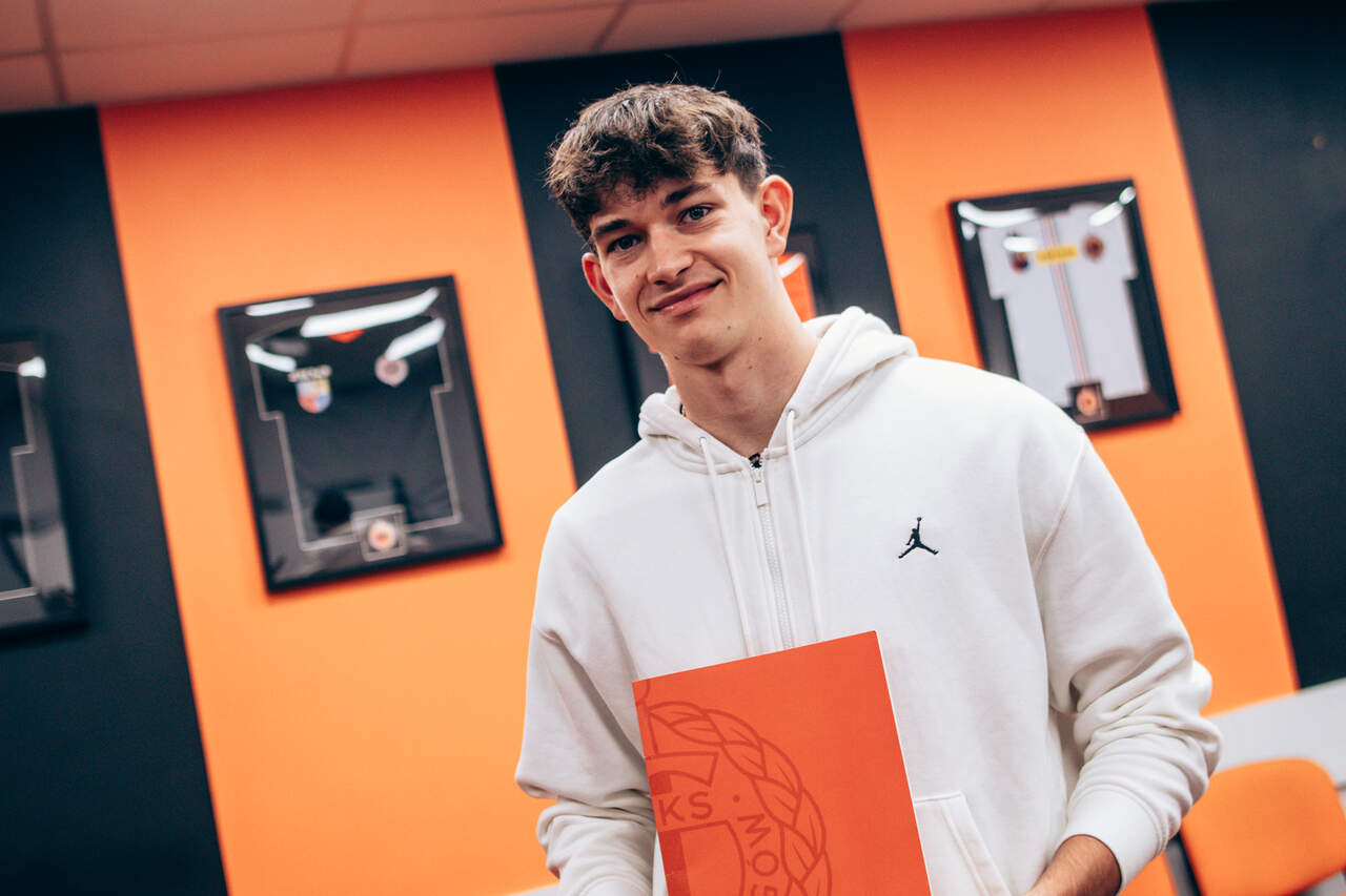 Bramkostrzelny Kuba Szabłowski dołącza do Akademii Chrobrego! 19-letni Kuba Szabłowski nowym zawodnikiem w Akademii Piłki Nożnej Chrobrego Głogów! Skuteczny napastnik związał się z klubem kontraktem obowiązującym do czerwca, z opcją przedłużenia. Od teraz oficjalnie zasila szeregi Chrobrego II – bezpośredniego zaplecza pierwszoligowego zespołu. 28-11-2025 01:20 autor: ŁJ Kuba Szabłowski urodził się w Bolesławcu, a jego dotychczasowa piłkarska droga prowadziła przez takie kluby jak Zagłębie Lubin, Iskra Kochlice, SMS Łódź oraz Miedź Legnica, z którą związany był od 2021 roku. W barwach legnickiego klubu występował początkowo w zespołach młodzieżowych, gdzie dał się poznać jako niezwykle bramkostrzelny napastnik – ponad 40 zdobytych goli w sezonie 2022/2023 otworzyło mu drogę do wyższych szczebli rozgrywkowych. W rundzie jesiennej był już zawodnikiem trzecioligowej Miedzi II oraz drużyny rywalizującej w Centralnej Lidze Juniorów. W rozgrywkach Betclic 3 Ligi wystąpił w 15 spotkaniach, zdobywając 5 bramek. – Akademia realizuje wiele zadań, a jednym z kluczowych jest skauting, czyli wyszukiwanie i pozyskiwanie zawodników o profilu przydatnym dla pierwszej drużyny – podkreśla dyrektor APN, Jarosław Wielgus. – Kuba idealnie wpisuje się w te założenia. Wierzymy, że poprzez proces szkoleniowy w Akademii oraz grę w Chrobrym II będzie mógł w przyszłości zasilić pierwszy zespół. To zawodnik obdarzony znakomitymi warunkami fizycznymi, mierzy ponad dwa metry wzrostu, a przy tym bardzo skuteczny. Mieliśmy okazję sami się w tym utwierdzić, obserwując go podczas rywalizacji, także bezpośredniej z naszymi drużynami. Kuba, życzymy powodzenia w pomarańczowo-czarnych barwach oraz nieustannego rozwoju na piłkarskiej drodze!