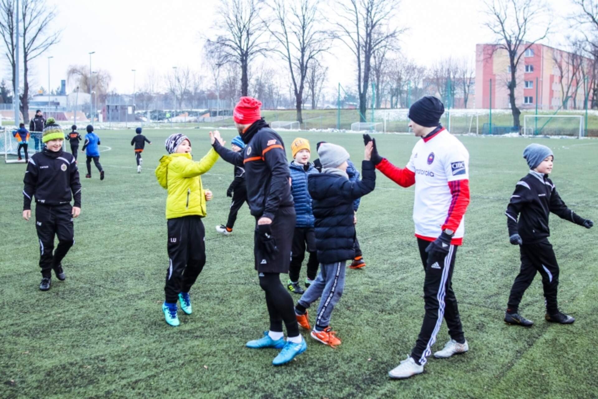 Niespodzianka na sam koniec Prawdziwie wyjątkowi goście specjalni! Przemysław Frankowski, reprezentant Polski i zawodnik Chicago Fire FC, oraz jeden z liderów pierwszoligowego Chrobrego Mateusz Machaj poprowadzili ostatni trening dzieciaków Piłkarskich Ferii… 08-01-2021 05:15 autor: ŁJ Prawdziwie wyjątkowi goście specjalni! Przemysław Frankowski, reprezentant Polski i zawodnik Chicago Fire FC, oraz jeden z liderów pierwszoligowego Chrobrego Mateusz Machaj poprowadzili ostatni trening dzieciaków Piłkarskich Ferii Zimowych.Od poniedziałku trwał pierwszy turnus zorganizowanych przez klub ferii dla dzieci, które w większości były zawodnikami Akademii Piłki Nożnej. Dwie grupy pod okiem trenerów Witolda Masnego i Pawła Kliszki wiele godzin spędziły na piłkarskiej aktywności, mając do swojej dyspozycji boisko, halę i małą salę. Codziennie relaksowały się w grocie solnej będącej częścią Centrum Rehabilitacji i Odnowy Biologicznej, wyszalały się w parku trampolin Jump Planet oraz odwiedziły z zebranymi karmą i kocami schronisko dla zwierząt Amicus.Niespodziankę dla nich mieliśmy na sam koniec. Ostatni trening na boisku zorganizowali Przemysław Frankowski z Mateuszem Machajem. Zajęcia trwały ponad godzinę, dzieciaki w tym czasie chętnie słuchały wskazówek obu piłkarzy i rozegrały z nimi gierki towarzyskie. Jedną z nich, szczególnie zaciętą, musiały zakończyć rzuty karne. Jeszcze chętniej zbierały autografy, na bluzach, koszulkach, bidonach, a nawet butach treningowych, które od teraz – ich zdaniem – mają przynosić szczęście.Wcześniej nasi podopieczni wzięli udział w konkursie plastycznym, w którym mieli za zadanie narysować to, co w tym tygodniu podobało im się najbardziej. Wszystkie prace opublikujemy niebawem w specjalnej galerii.Tym żegnamy się z pierwszymi grupami Piłkarskich Ferii Zimowych. Kolejne dwie powitamy na Chrobrym już w poniedziałek rano. Przypominamy, że na drugi turnus pozostało kilka wolnych miejsc: dowiedz się więcej.