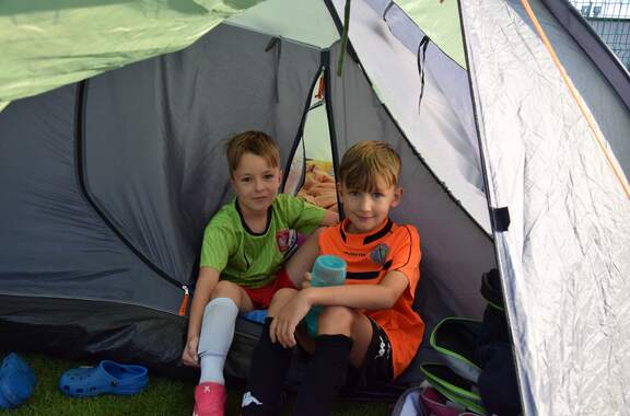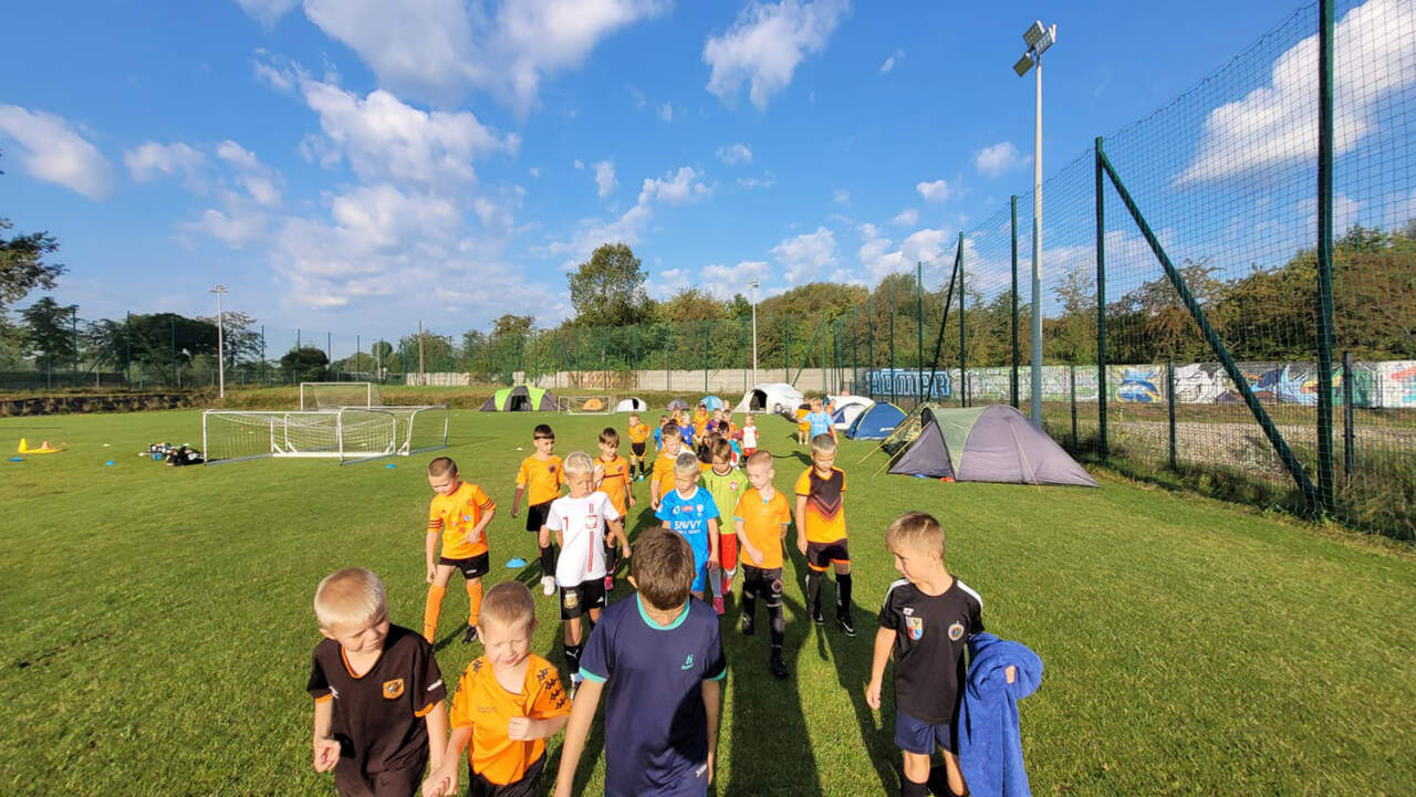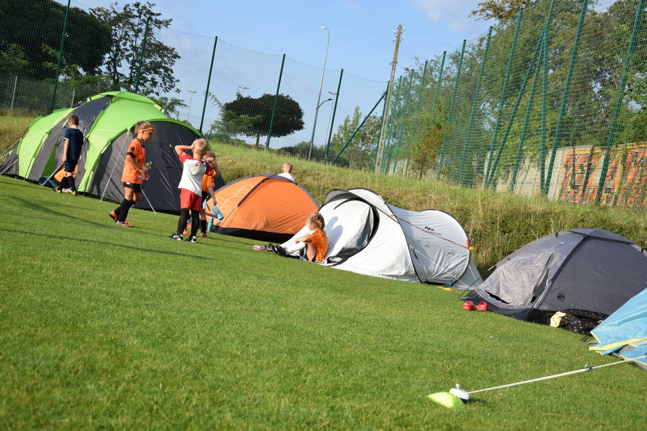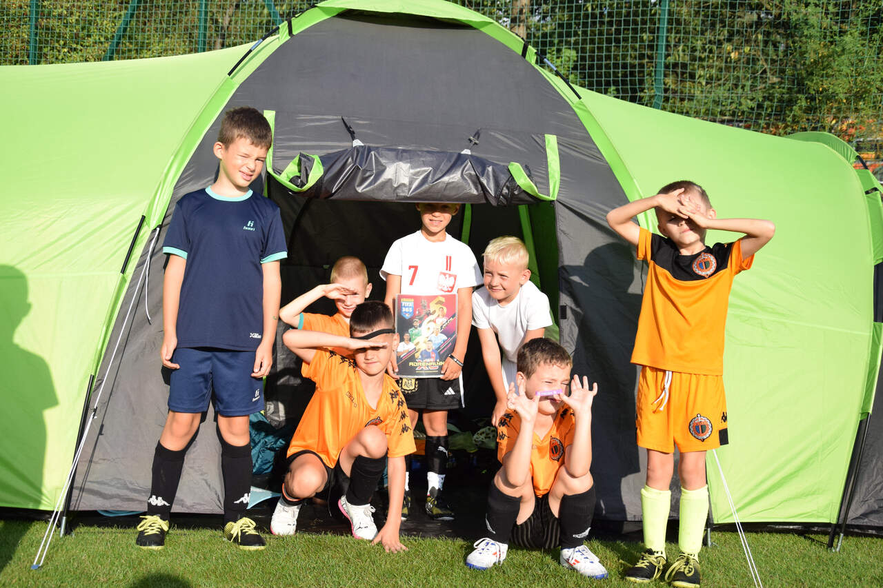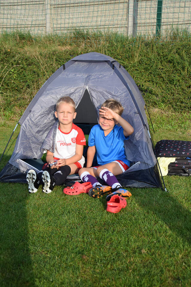 Pod namiotami na... murawie Tego jeszcze nie było! Najmłodsi zawodnicy Akademii Piłki Nożnej ciepłą, sierpniową noc spędzili pod namiotami rozłożonymi na boisku, na którym normalnie odbywają się treningi piłkarskie. 19-08-2024 05:16 autor: ŁJ - Młodzi adepci Akademii mieli okazję przeżyć niezapomniane wydarzenie, które na pewno długo zapamiętają. Dzieci wzmacniały swoją więź z drużyną oraz klubem, do tego nie sposób zapomnieć o budowaniu pewności siebie, odwagi i wychodzenia ze strefy komfortu - powiedział organizujący wyjątkową nocowankę na zakończenie wakacji trener najmłodszych grup Akademii Piotr Szymański. Działo się dużo, bo były: treningi piłkarskie, gry i zabawy ruchowe, wspólne posiłki pod gołym niebem, wieczorne oglądanie gwiazd oraz rakiety Falcon 9, wieczorne kino, poranna gimnastyka, a do tego nagrody i wyróżnienia. Sami zobaczcie to na zdjęciach.