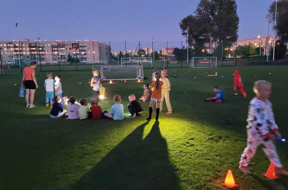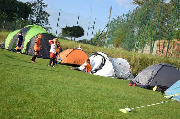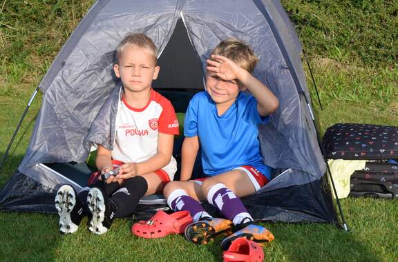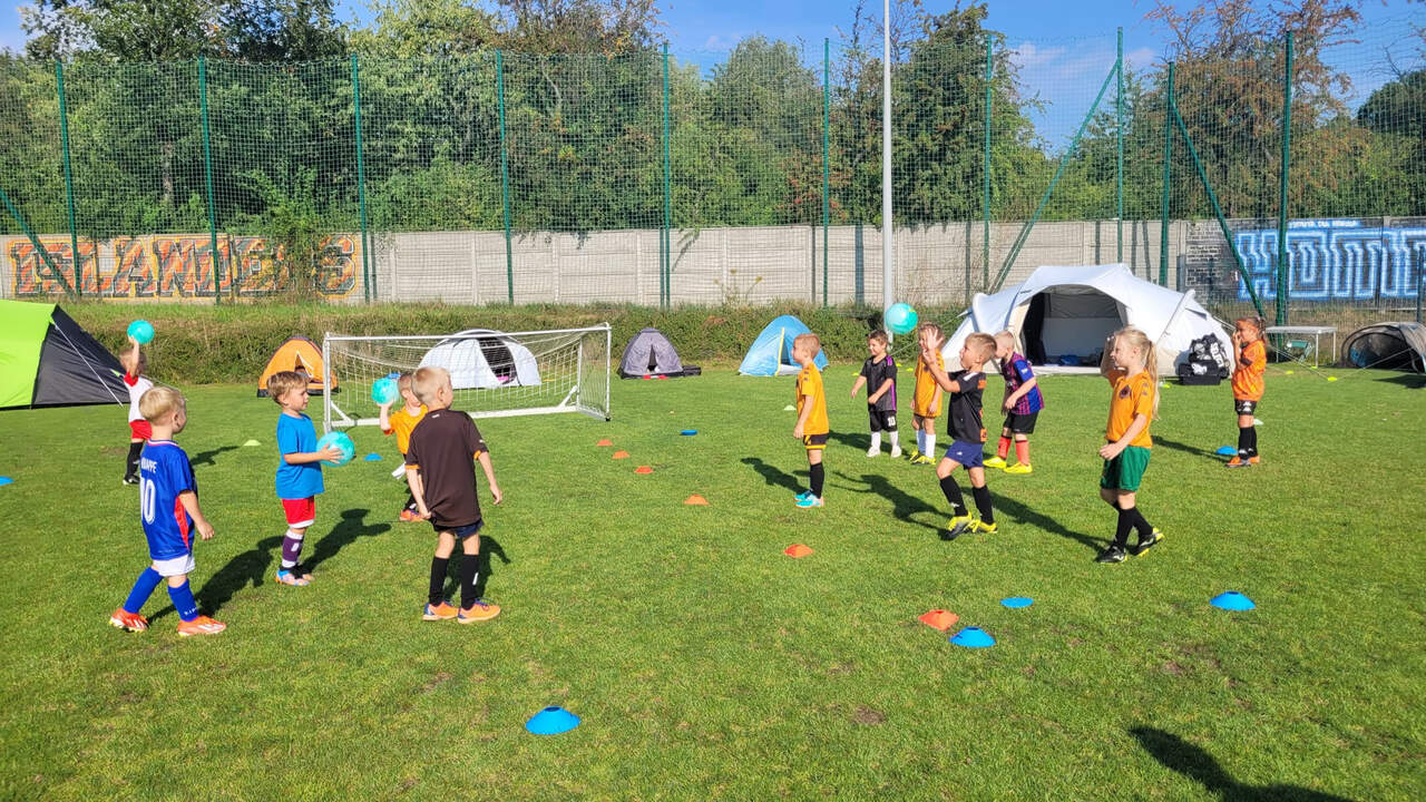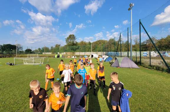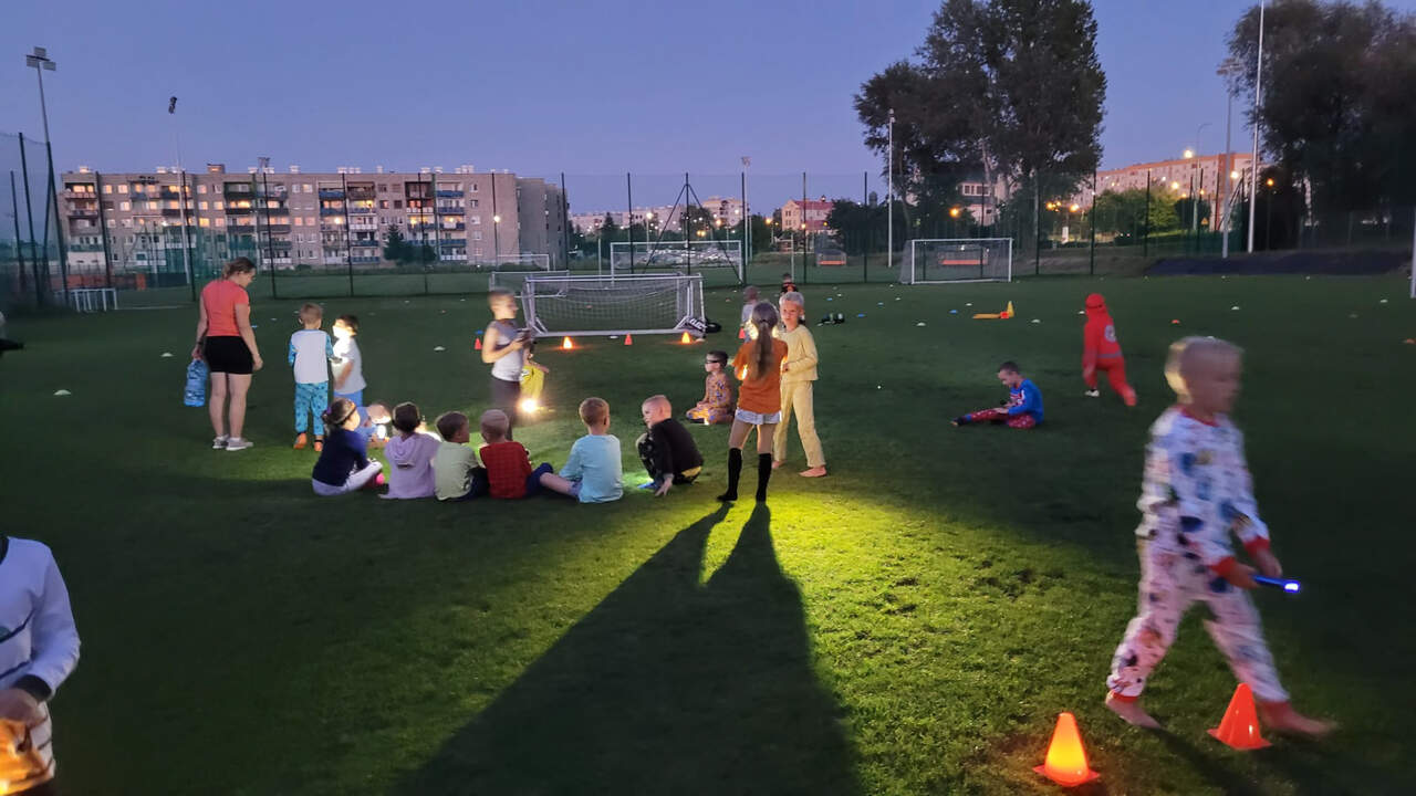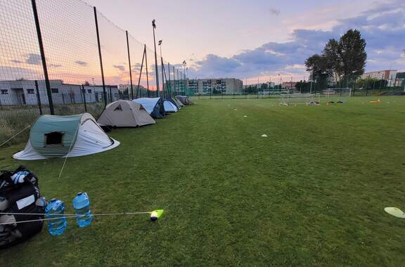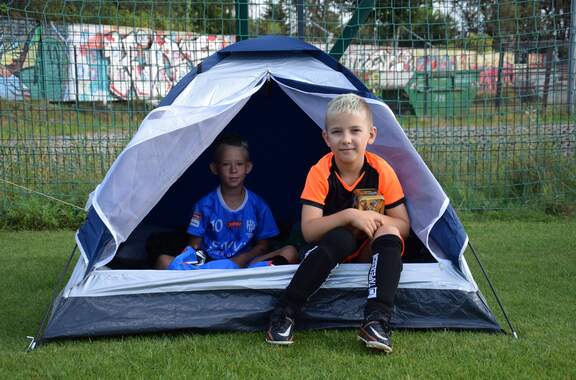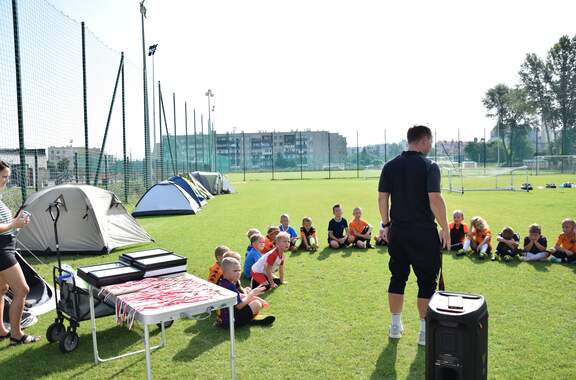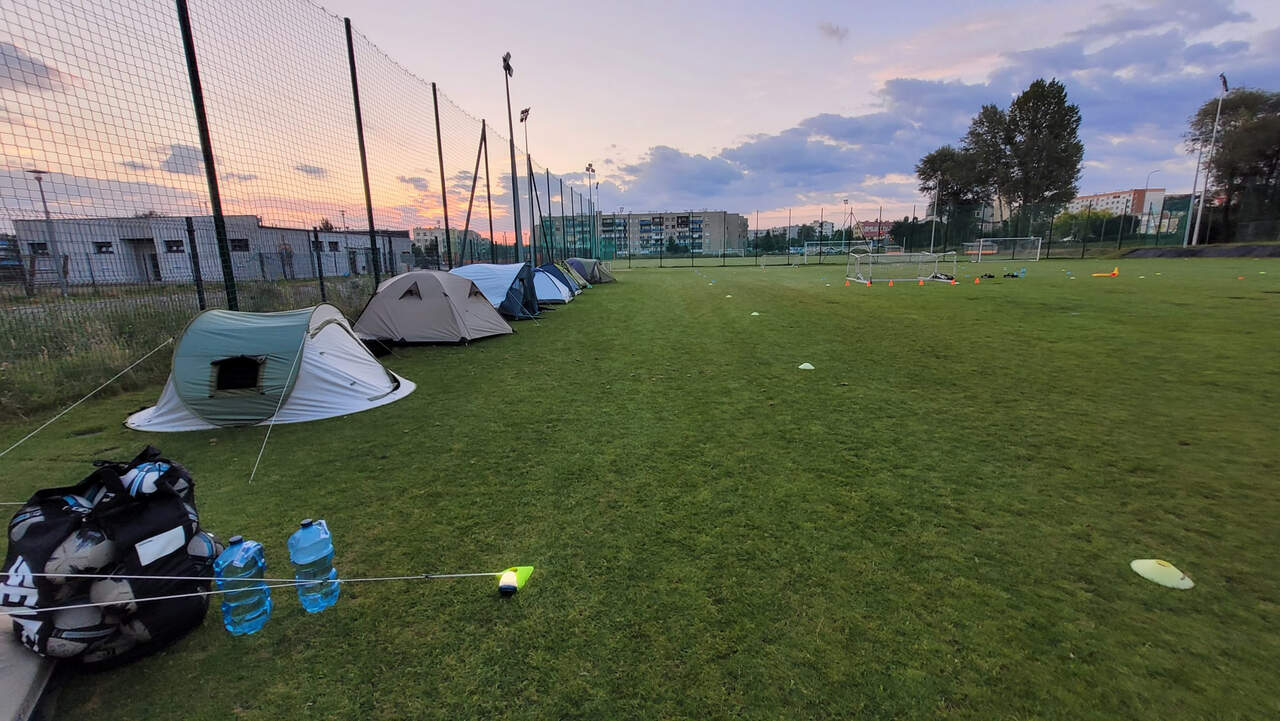 Pod namiotami na... murawie Tego jeszcze nie było! Najmłodsi zawodnicy Akademii Piłki Nożnej ciepłą, sierpniową noc spędzili pod namiotami rozłożonymi na boisku, na którym normalnie odbywają się treningi piłkarskie. 19-08-2024 05:16 autor: ŁJ - Młodzi adepci Akademii mieli okazję przeżyć niezapomniane wydarzenie, które na pewno długo zapamiętają. Dzieci wzmacniały swoją więź z drużyną oraz klubem, do tego nie sposób zapomnieć o budowaniu pewności siebie, odwagi i wychodzenia ze strefy komfortu - powiedział organizujący wyjątkową nocowankę na zakończenie wakacji trener najmłodszych grup Akademii Piotr Szymański. Działo się dużo, bo były: treningi piłkarskie, gry i zabawy ruchowe, wspólne posiłki pod gołym niebem, wieczorne oglądanie gwiazd oraz rakiety Falcon 9, wieczorne kino, poranna gimnastyka, a do tego nagrody i wyróżnienia. Sami zobaczcie to na zdjęciach.
