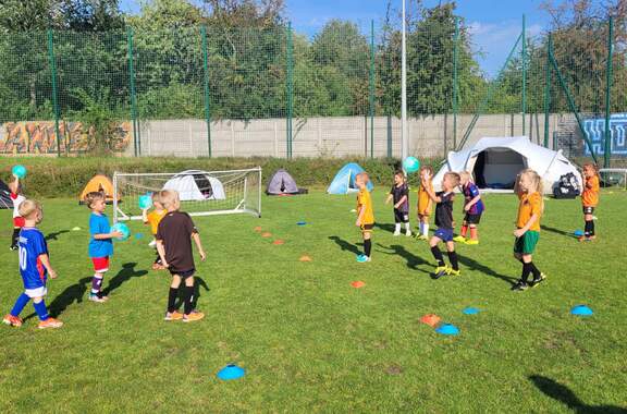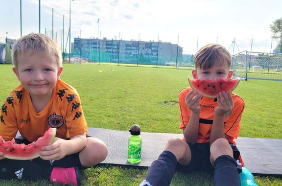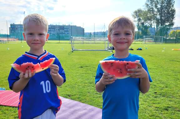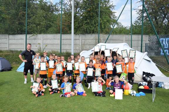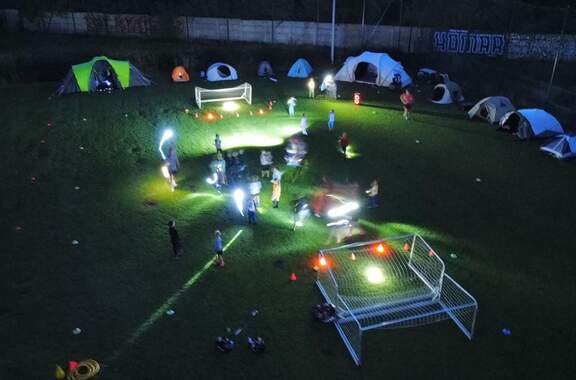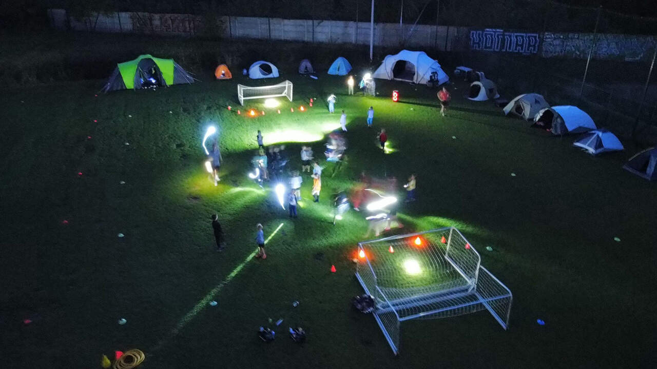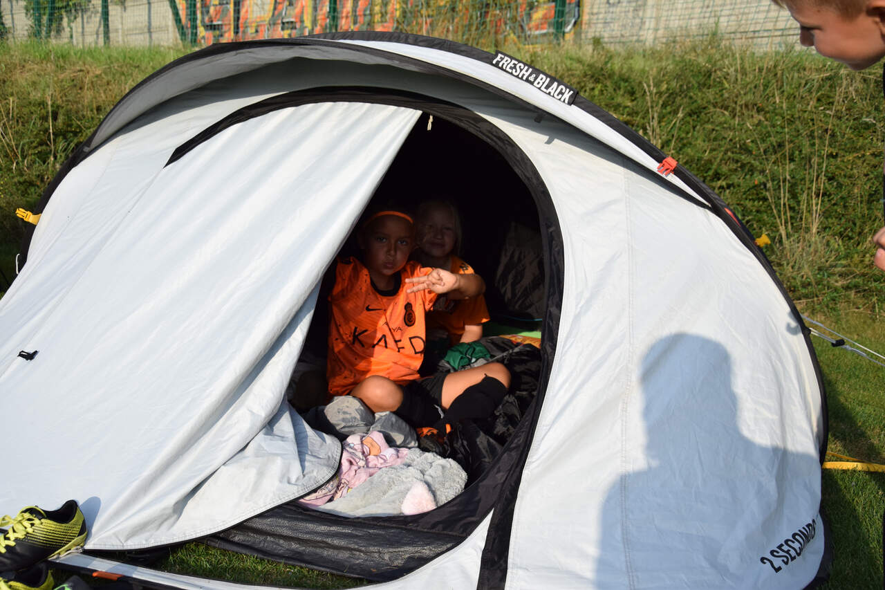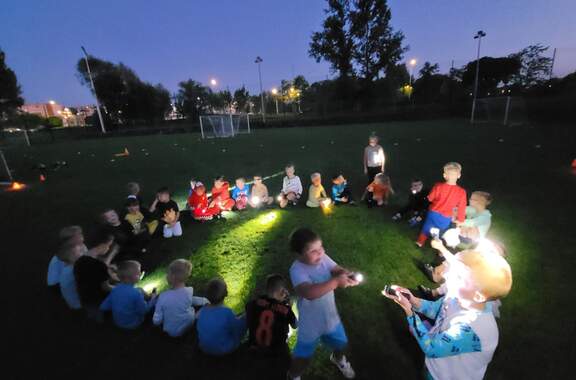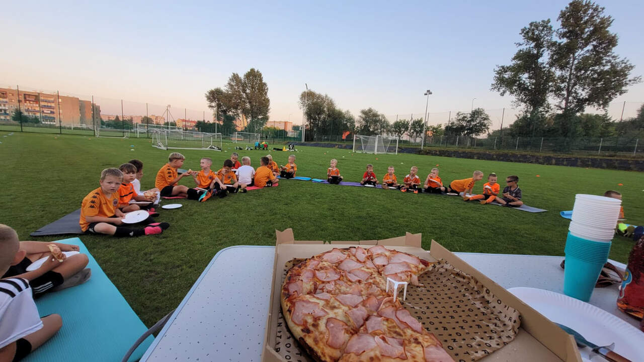 Pod namiotami na... murawie Tego jeszcze nie było! Najmłodsi zawodnicy Akademii Piłki Nożnej ciepłą, sierpniową noc spędzili pod namiotami rozłożonymi na boisku, na którym normalnie odbywają się treningi piłkarskie. 19-08-2024 05:16 autor: ŁJ - Młodzi adepci Akademii mieli okazję przeżyć niezapomniane wydarzenie, które na pewno długo zapamiętają. Dzieci wzmacniały swoją więź z drużyną oraz klubem, do tego nie sposób zapomnieć o budowaniu pewności siebie, odwagi i wychodzenia ze strefy komfortu - powiedział organizujący wyjątkową nocowankę na zakończenie wakacji trener najmłodszych grup Akademii Piotr Szymański. Działo się dużo, bo były: treningi piłkarskie, gry i zabawy ruchowe, wspólne posiłki pod gołym niebem, wieczorne oglądanie gwiazd oraz rakiety Falcon 9, wieczorne kino, poranna gimnastyka, a do tego nagrody i wyróżnienia. Sami zobaczcie to na zdjęciach.