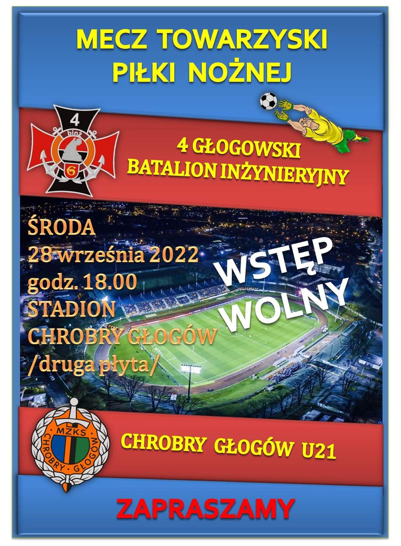 Pokazowy mecz z Głogowskim Batalionem Inżynieryjnym 27-09-2022 01:29 autor: ŁJ W ciągu miesiąca nasze drużyny rozgrywają wieledziesiąt meczów ligowych, sparingowych czy turniejowych, a teraz czas na zupełnie inny. W środę reprezentacja Chrobrego Głogów złożona z zawodników drugiej drużyny i U-19 rozegra mecz pokazowy z 4. Głogowskim Batalionem Inżynieryjnym. Piłkarskim wydarzeniem uświetnimy święto głogowskiego batalionu. Mecz rozegrany zostanie na drugiej płycie o godz. 18.00. Wstęp jest wolny.