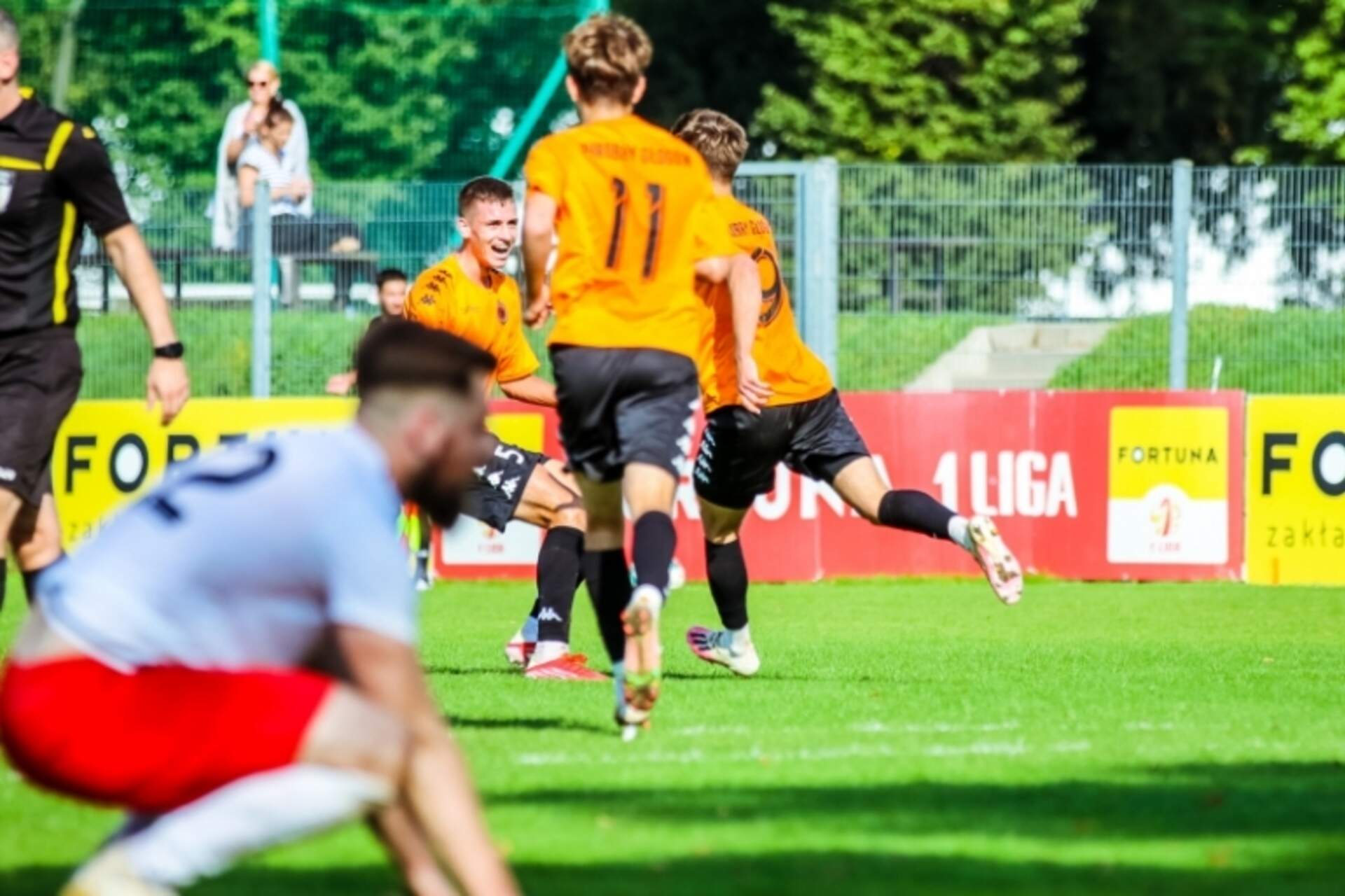 STAL - CHROBRY II 0:2 Rezerwy Chrobrego Głogów kontynuują bardzo dobrą serię i wygrały czwarty mecz z rzędu. W ósmej kolejce 4 Ligi zespół trenera Sebastiana Górskiego pokonał na wyjeździe Stal Chocianów 2:0.Prowadzenie Chrobremu dał w 41 minucie… 03-10-2021 03:03 autor: ŁJ Rezerwy Chrobrego Głogów kontynuują bardzo dobrą serię i wygrały czwarty mecz z rzędu. W ósmej kolejce 4 Ligi zespół trenera Sebastiana Górskiego pokonał na wyjeździe Stal Chocianów 2:0.Prowadzenie Chrobremu dał w 41 minucie Marcel Galas. Jednobramkowa różnica utrzymywała się do końcowych minut spotkania. Wtedy, w 88 minucie, rezultat podwyższył Miłosz Jóźwiak i tym przypieczętował piąte ogółem, a czwarte z rzędu zwycięstwo Pomarańczowo-Czarnych.Na tym nie koniec dobrych wiadomości. Jedną z nich jest powrót do gry po przebytej kontuzji Przemysława Siudaka. Zawodnik, który po bardzo dobrej jesieni ubiegłego sezonu został włączony do pierwszoligowej kadry, w Chocianowie zagrał po raz pierwszy w tym roku, zmieniając na boisku Olafa Zygmunta. Po tej wygranej drugi skład Chrobrego awansował na piąte miejsce w czwartoligowej tabeli. Po ośmiu kolejkach ma 16 punktów. Prowadzi z dorobkiem 18 punktów Apis Jędrzychowice. W środę głogowianie rozegrają zaległe spotkanie okręgowego Pucharu Polski z Mewą Kunice (godz. 16.30 w Kunicach), a w niedzielę 10 października w meczu ligowym podejmą Kaczawę Bieniowice (godz. 11.00, Głogów). STAL CHOCIANÓW - CHROBRY II GŁOGÓW 0:2 (0:1)0:1 Galas 410:2 Jóźwiak 88CHROBRY II: Michalak - Malczuk, Zarówny, Wawrzyniak, Jandziak, Pieczarka (89 Włodarczyk), Zygmunt (61 Siudak), Antkowiak (68 Bartecki), Krawiec, Michalczyk (8 Galas (77 Draczyński)), Jóźwiak. ŻÓŁTE KARTKI (CHROBRY II): Zygmunt, Krawiec.