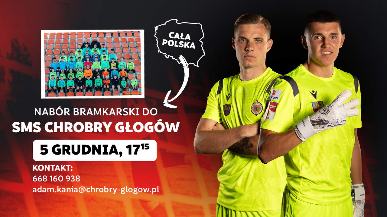 Testy dla bramkarzy z całej Polski! Chrobry Głogów zaprasza do siebie bramkarzy z całej Polski! 5 grudnia odbędą się testy do Szkoły Mistrzostwa Sportowego Chrobry Głogów. 20-11-2024 09:42 autor: ŁJ Testy odbędą się w siedzibie klubu przy ul. Wita Stwosza. Zapraszamy na nie bramkarzy z roczników 2008 - 2012. Jeśli występujesz na tej pozycji i chcesz rozwinąć swoją karierę w klubie, który stawia na swoich wychowanków, to czekamy właśnie na Ciebie. W pierwszej drużynie debiutowali już zawodnicy z pola szkolący się w klubowej Akademii i SMS-ie Chrobry, jak Dominik Piła, Albert Zarówny, Szymon Bartlewicz, Natan Malczuk czy ostatnio Kamil Grzelak. Czas na debiut bramkarski i… może właśnie na Ciebie? Szczegóły: Data: 5.12.2015 Zbiorka: godz. 17.15 (budynek klubowy) Testy: godz. 17.30 (boisko ze sztuczną nawierzchnią) Kontakt: Adam Kania - trener bramkarzy Chrobrego Głogów Tel. 668 160 938 Mail: adam.kania@chrobry-glogow.pl