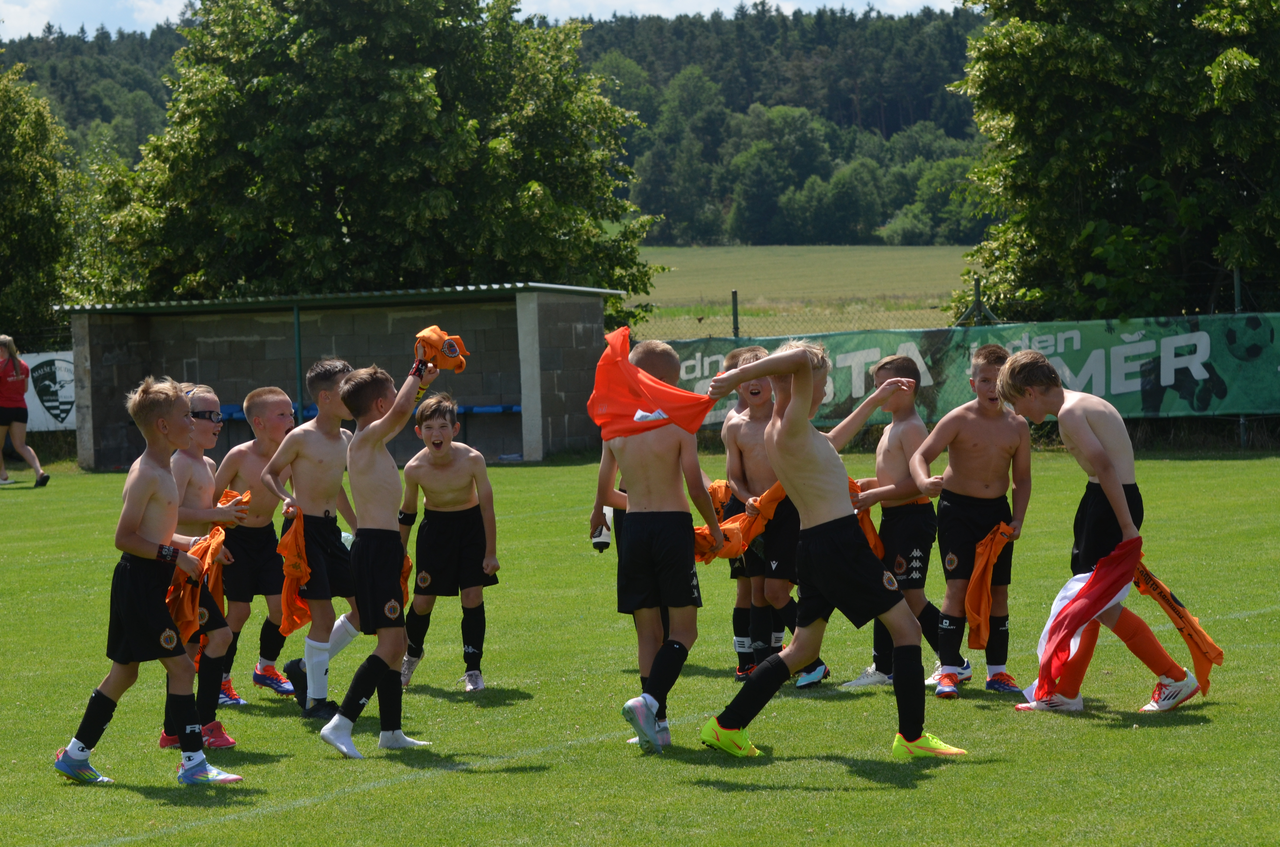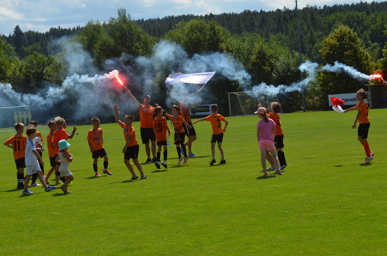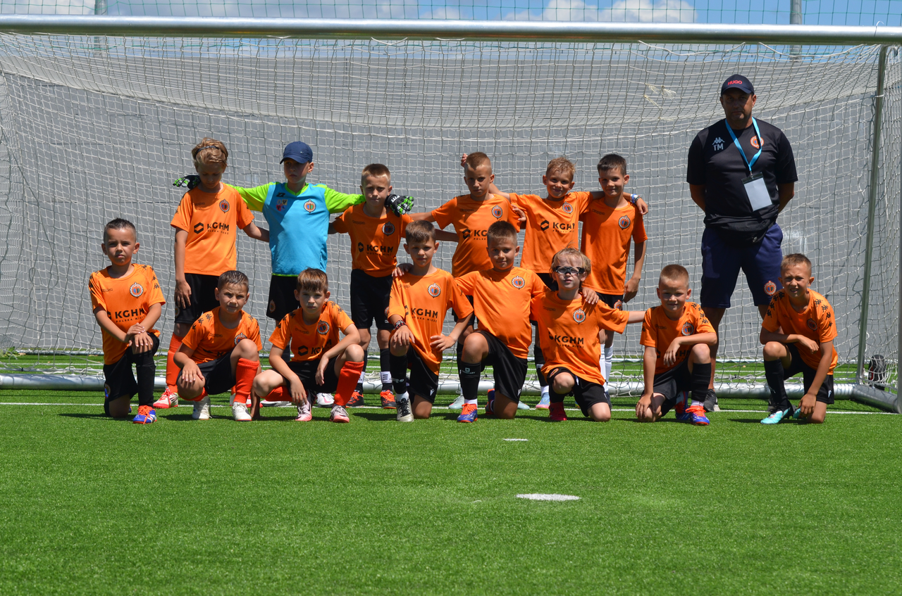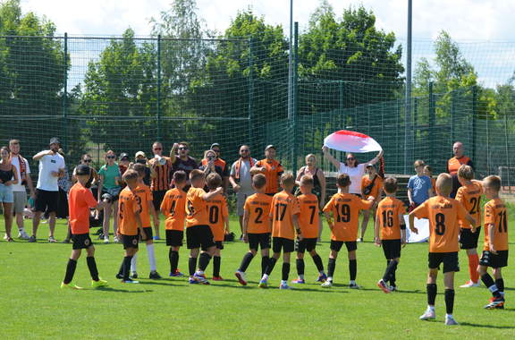 U-9: z pucharem zza granicy W niedzielę, 29 czerwca, chłopcy z rocznika 2016 zakończyli zmagania w międzynarodowym turnieju Budweis Cup w Czeskich Budziejowicach. 04-07-2025 08:24 autor: ŁJ Udział w zagranicznym turnieju relacjonuje nam trener Tomasz Mucha: Po sobotnich rozgrywkach grupowych, w których nasz zespół zajął 1. miejsce, wygrywając wszystkie mecze (10 strzelonych bramek, 0 straconych), w niedzielę rozpoczęliśmy fazę pucharową. W ćwierćfinale pokonaliśmy drużynę z Czech 3:0, a następnie w półfinale wygraliśmy 4:1 z kolejnym czeskim zespołem - była to jedyna bramka stracona przez nasz zespół w całym turnieju. Wielki finał rozegraliśmy z drużyną z Niemiec. Mimo wielu stworzonych sytuacji i wyraźnej przewagi, mecz zakończył się wynikiem 1:0 po skutecznie wykorzystanym rzucie karnym. Emocji nie brakowało do samego końca! 14-osobowy zespół spisał się znakomicie. Turniej ten był podsumowaniem całorocznej pracy i treningów - prawdziwą nagrodą dla chłopców. Mimo upalnej pogody, bardziej odpowiedniej do plażowania niż grania, chłopcy walczyli jak profesjonaliści. Mecze trwały po 25 minut i odbywały się na świetnie przygotowanych boiskach. W tych wymagających warunkach poradzili sobie doskonale - zasłużenie sięgając po złoty medal. Szczególne podziękowania kierujemy do rodziców - za wzorowe zachowanie i gorący, pozytywny doping, który dodawał chłopcom skrzydeł przez cały turniej. 👤 Skład drużyny: Antoni Szpilewicz (bramkarz), Antoni Sochacki, Iwo Bożek, Alan Kamiński, Mateusz Dobrychłop, Maksymilian Lebedyński, Tymoteusz Szymczak, Hubert Mordarski, Jan Kierkiewicz, Szymon Szarzec, Borys Sawicki, Wojciech Paczkowski, Makar Goruk, Adam Czyczyk. 👤 Trener: Tomasz Mucha. Fot. Łukasz Paczkowski