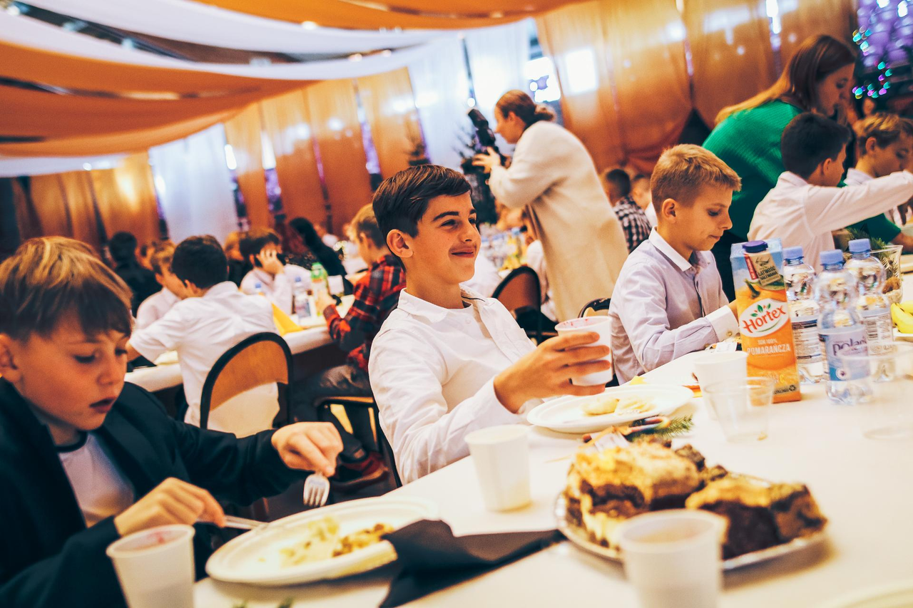 Wigilia SMS Chrobry Głogów Kończący rok uczniowie i nauczycieli Szkoły Mistrzostwa Sportowego Chrobry Głogów spotkali się podczas Wigilii. 12-12-2022 12:15 autor: ŁJ Spotkanie wigilijne odbyło się tym razem w hali, żeby móc pomieścić wszystkich kilkuset uczniów i nauczycieli Szkoły Mistrzostwa Sportowego Chrobry Głogów. Przebiegło zgodnie z tradycją, z przemowami, dzieleniem się opłatkiem, życzeniami, charakterystycznym dla świąt poczęstunkiem i nawet prezentami. Na spotkanie zostali zaproszeni piłkarze pierwszoligowego Chrobrego i mimo urlopów uczestniczyli w nim Mateusz Machaj, Michał Ilków-Gołąb oraz Michał Michalec.